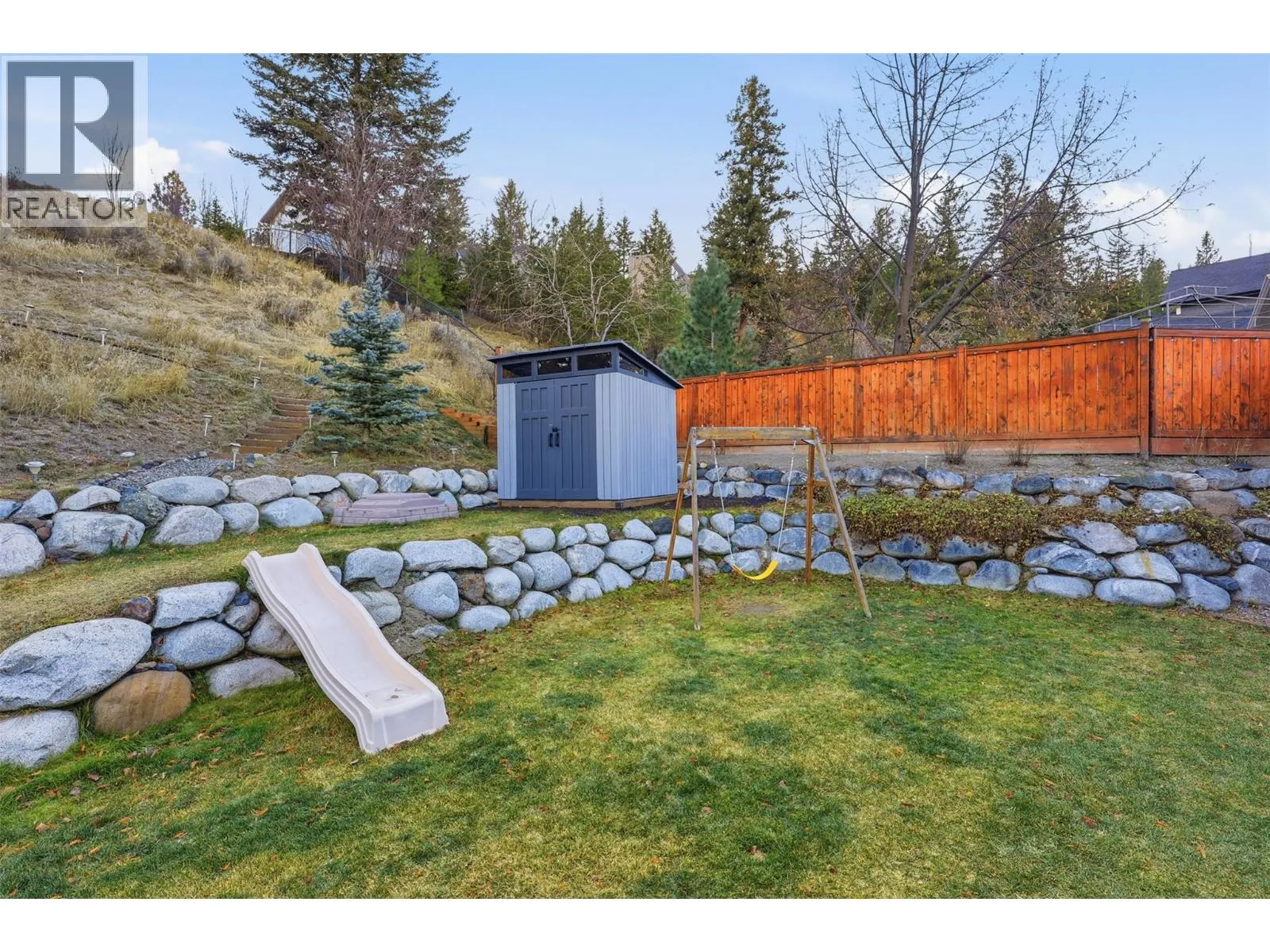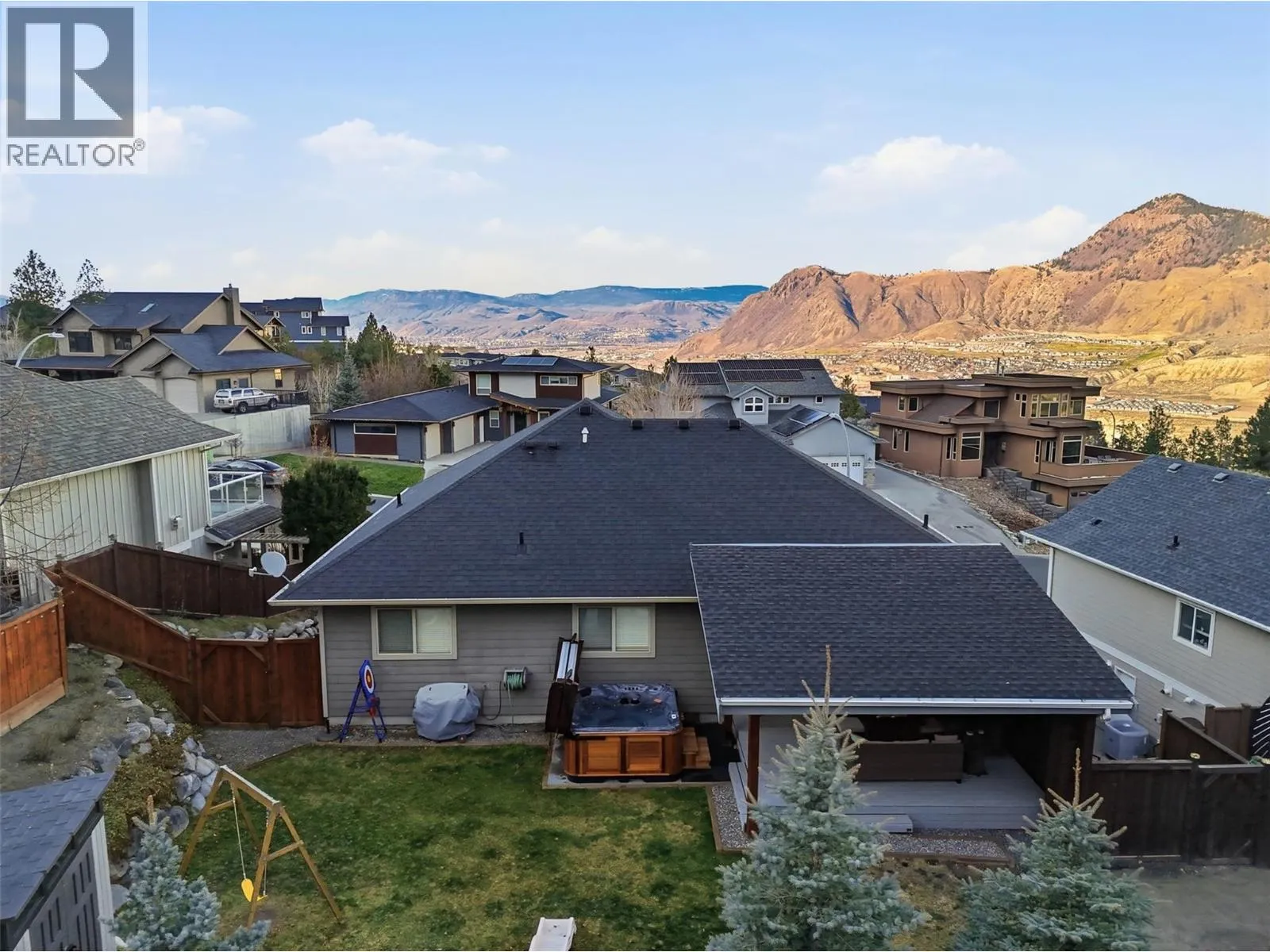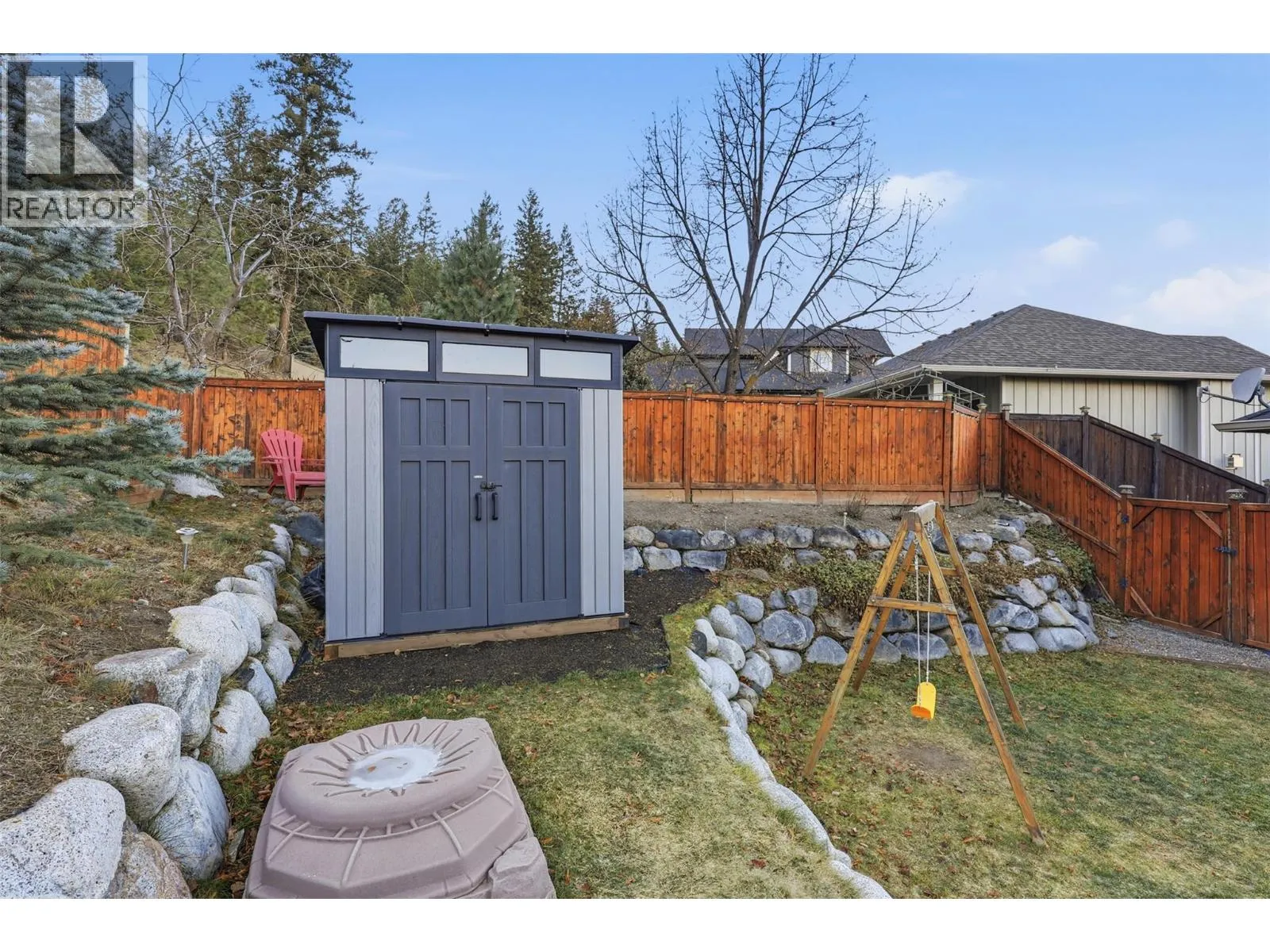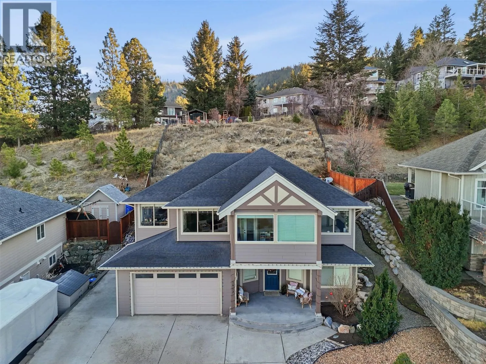 This exceptional home offers everything on your wish list â striking curb appeal, a private and usable yard with beautiful views, 200-amp service, RV parking, oversized garage, HE furnace, on-demand hot water, income suite and more. Step inside to an airy open-concept main living area filled with natural light, anchored by a true chefâs kitchen featuring warm shaker cabinetry, light countertops, tile backsplash, dual sinks and recently updated appliances with plenty of space for family and entertaining. Outside, your personal retreat awaits with a spacious tiered yard, covered patio, shed, a new 16â x 8â pool pad, and 220V power ready for a hot tub. The main home offers 3 bedrooms, den, plus a sun/playroom, providing ample room for a growing family. The primary suite impresses with a large ensuite complete with double vanity, tiled shower, walk-in closet and private access to the enclosed porch â perfect for quiet mornings or sunset views. Opportunities continue with the one-bedroom suite, featuring separate laundry, sound-bar insulation, and its own sub-panel, currently occupied by a wonderful tenant. (id:27476)