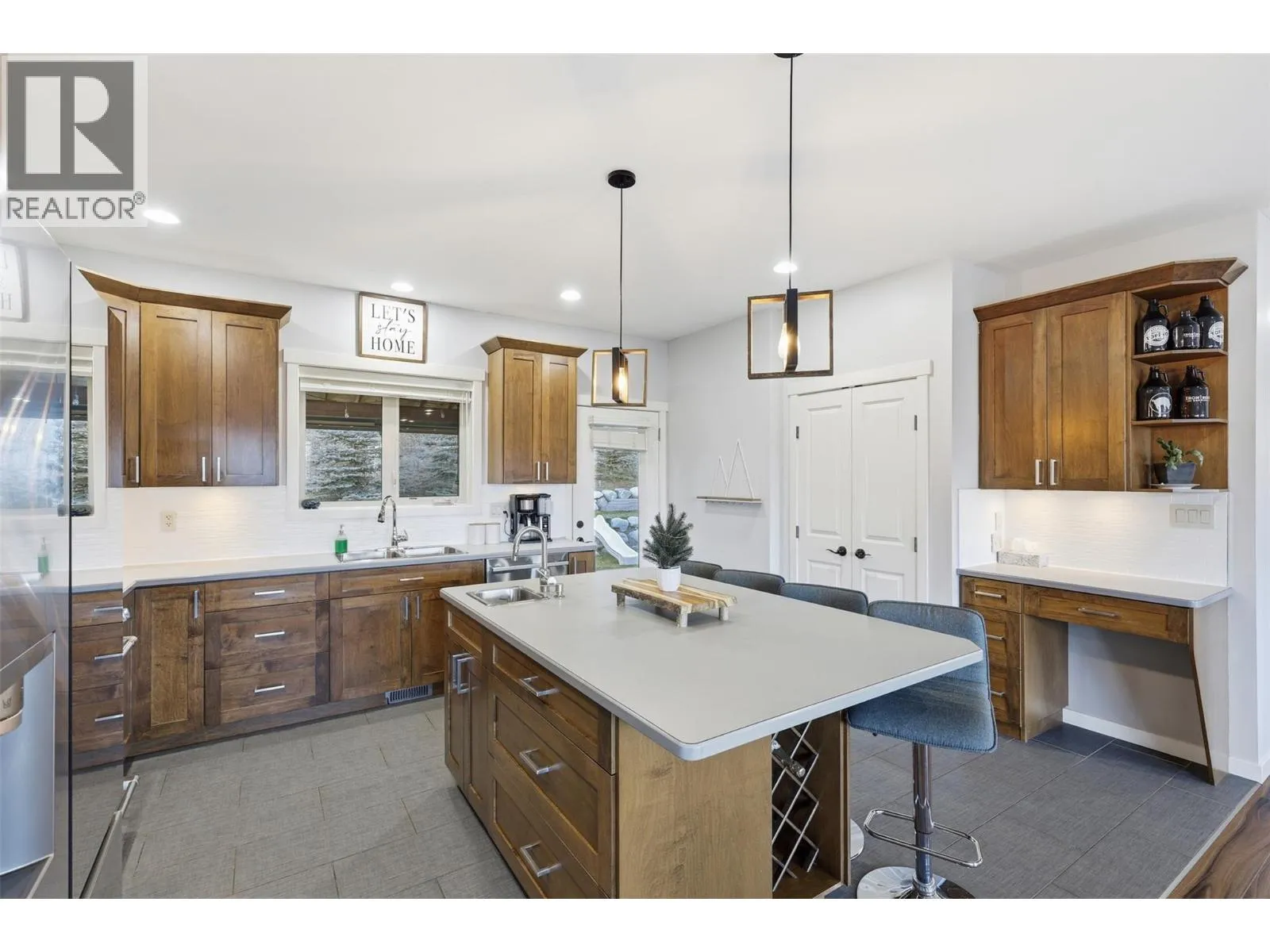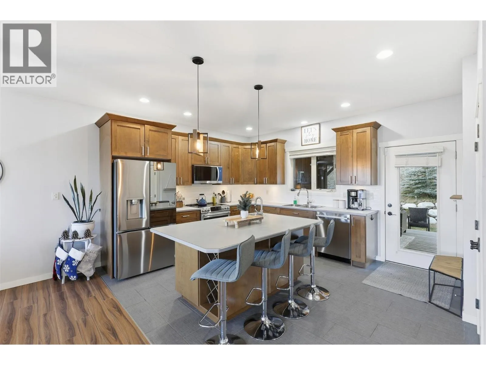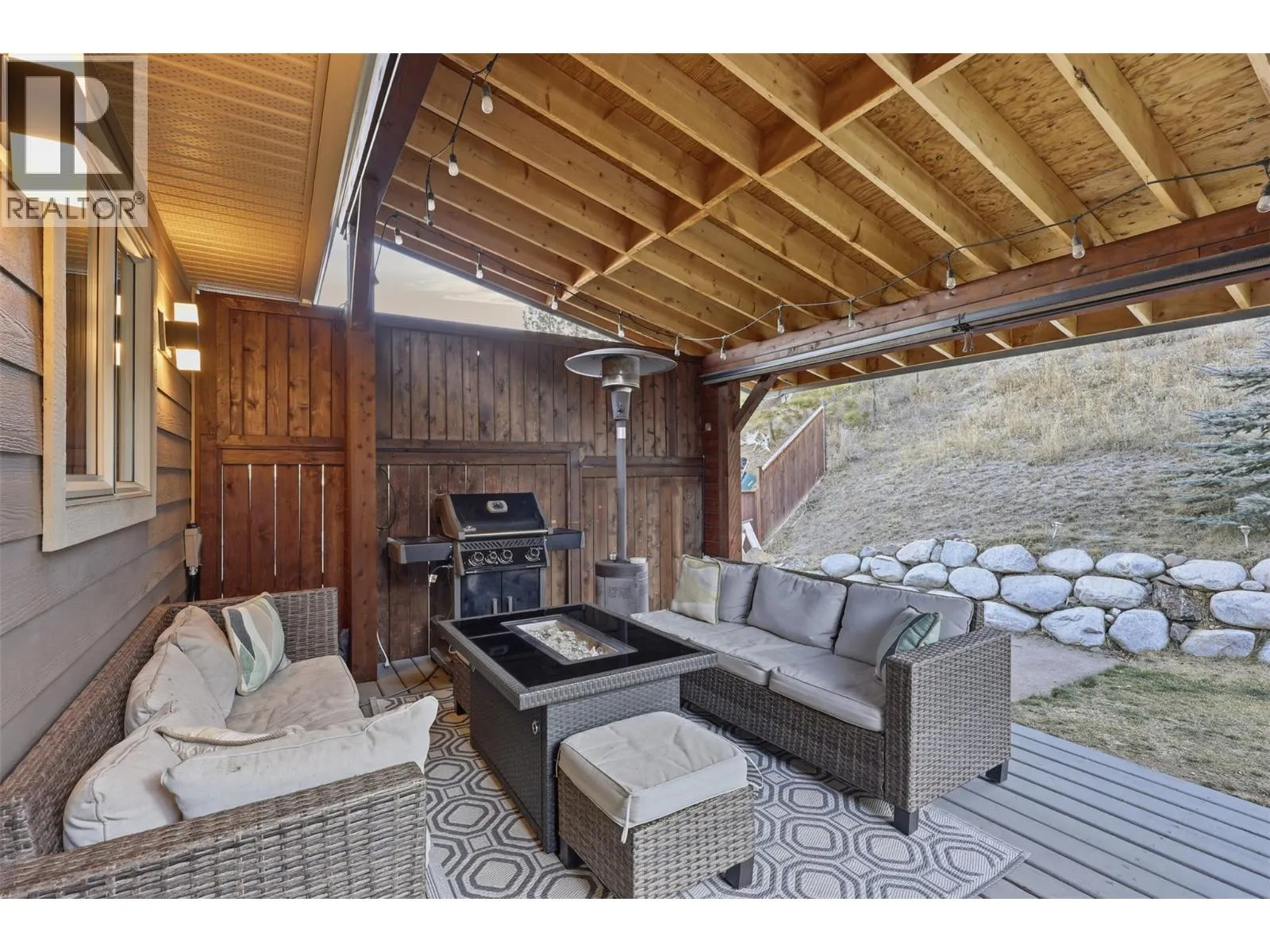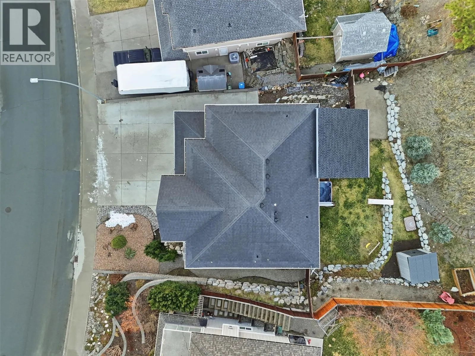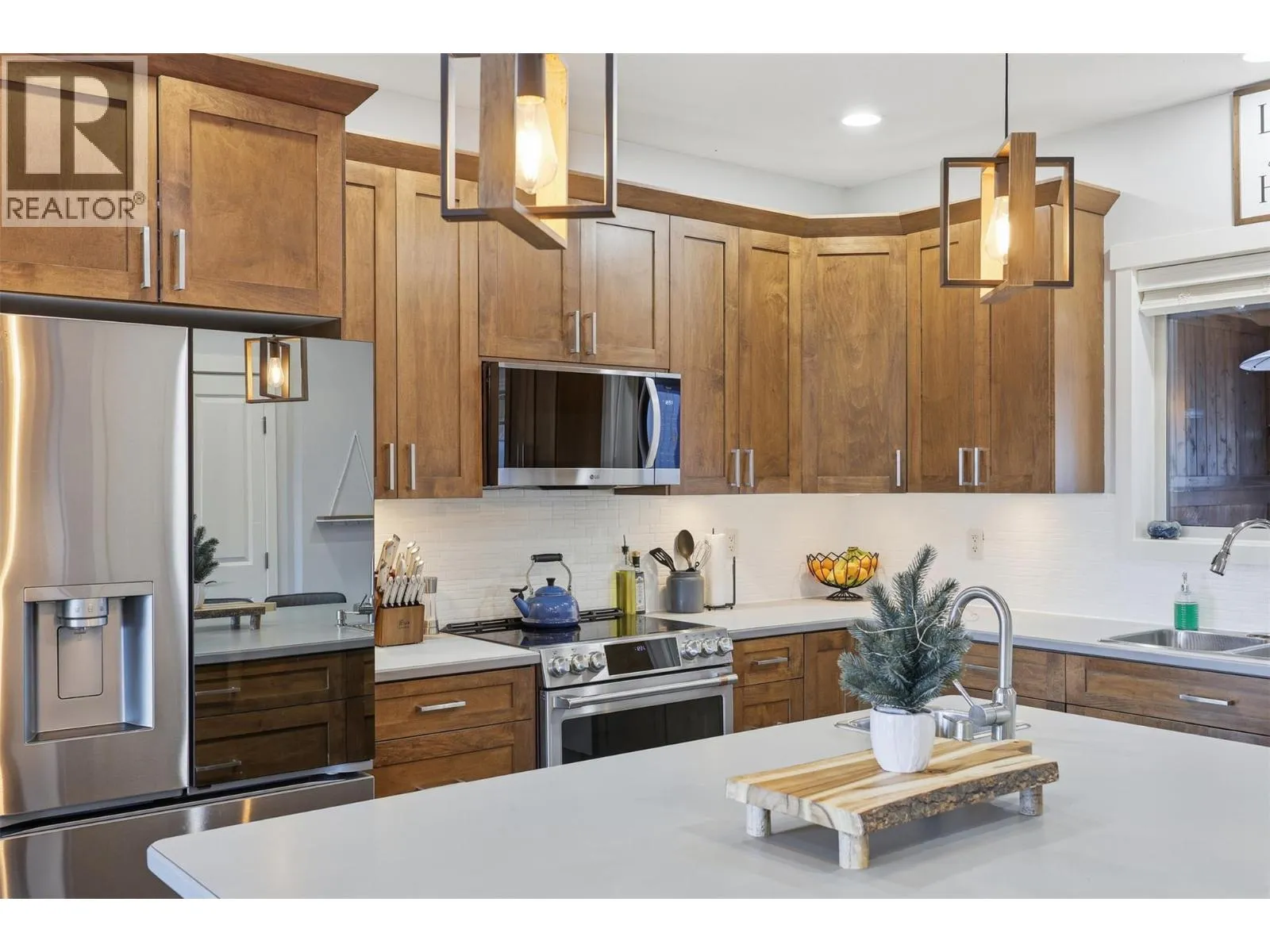 This exceptional home offers everything on your wish list â striking curb appeal, a private and usable yard with beautiful views, 200-amp service, RV parking, oversized garage, HE furnace, on-demand hot water, income suite and more. Step inside to an airy open-concept main living area filled with natural light, anchored by a true chefâs kitchen featuring warm shaker cabinetry, light countertops, tile backsplash, dual sinks and recently updated appliances with plenty of space for family and entertaining. Outside, your personal retreat awaits with a spacious tiered yard, covered patio, shed, a new 16â x 8â pool pad, and 220V power ready for a hot tub. The main home offers 3 bedrooms, den, plus a sun/playroom, providing ample room for a growing family. The primary suite impresses with a large ensuite complete with double vanity, tiled shower, walk-in closet and private access to the enclosed porch â perfect for quiet mornings or sunset views. Opportunities continue with the one-bedroom suite, featuring separate laundry, sound-bar insulation, and its own sub-panel, currently occupied by a wonderful tenant. (id:27476)