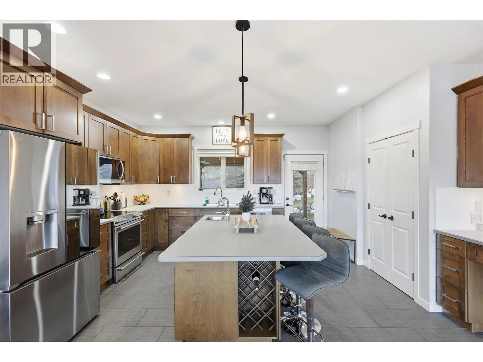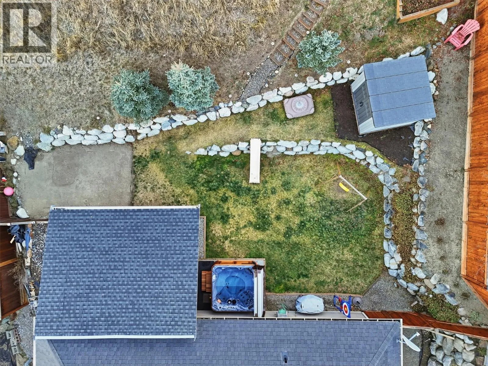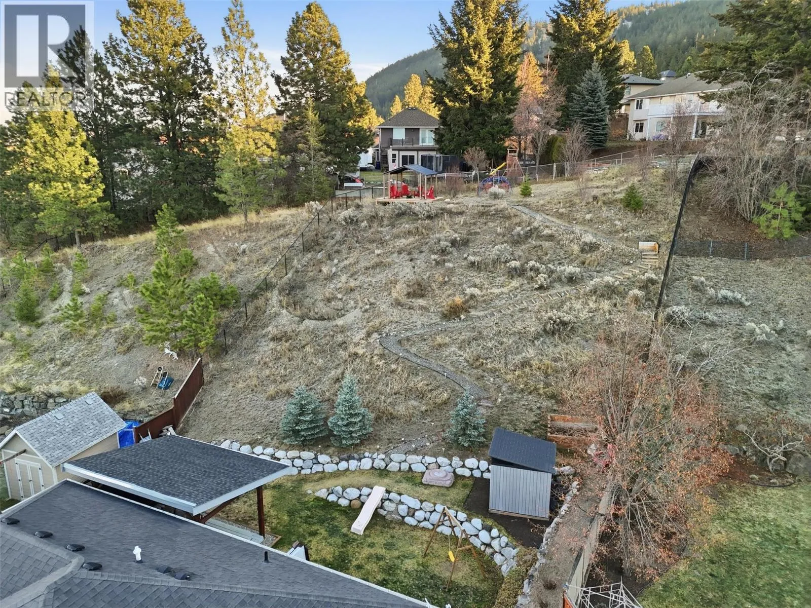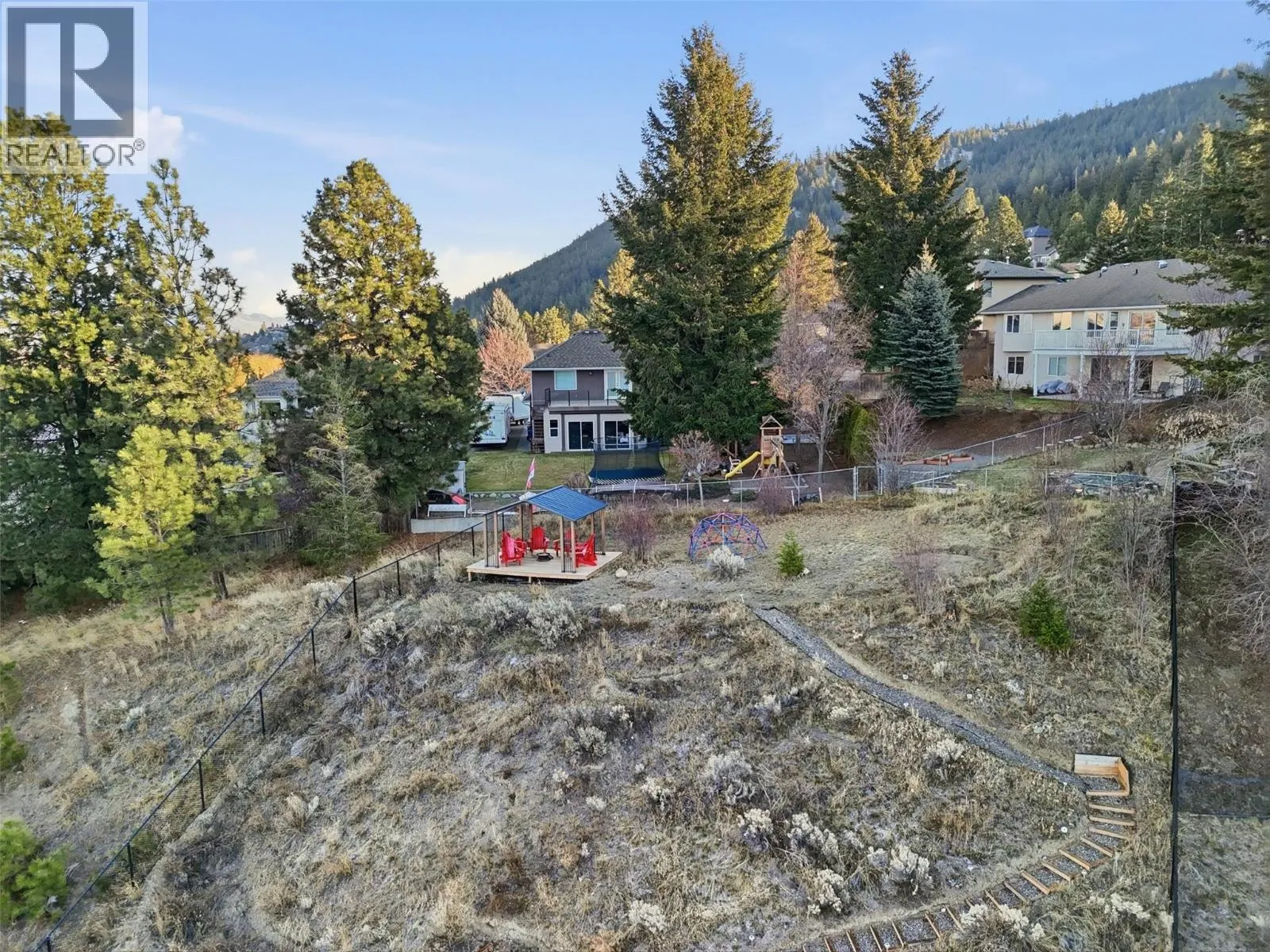 This exceptional home offers everything on your wish list â striking curb appeal, a private and usable yard with beautiful views, 200-amp service, RV parking, oversized garage, HE furnace, on-demand hot water, income suite and more. Step inside to an airy open-concept main living area filled with natural light, anchored by a true chefâs kitchen featuring warm shaker cabinetry, light countertops, tile backsplash, dual sinks and recently updated appliances with plenty of space for family and entertaining. Outside, your personal retreat awaits with a spacious tiered yard, covered patio, shed, a new 16â x 8â pool pad, and 220V power ready for a hot tub. The main home offers 3 bedrooms, den, plus a sun/playroom, providing ample room for a growing family. The primary suite impresses with a large ensuite complete with double vanity, tiled shower, walk-in closet and private access to the enclosed porch â perfect for quiet mornings or sunset views. Opportunities continue with the one-bedroom suite, featuring separate laundry, sound-bar insulation, and its own sub-panel, currently occupied by a wonderful tenant. (id:27476)