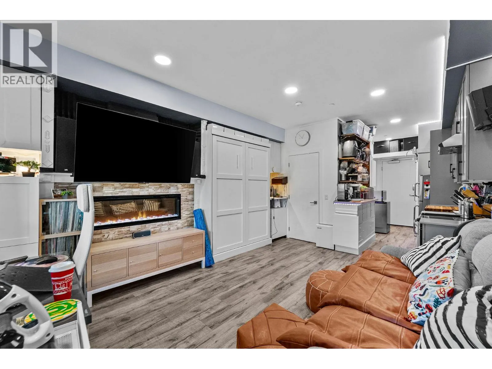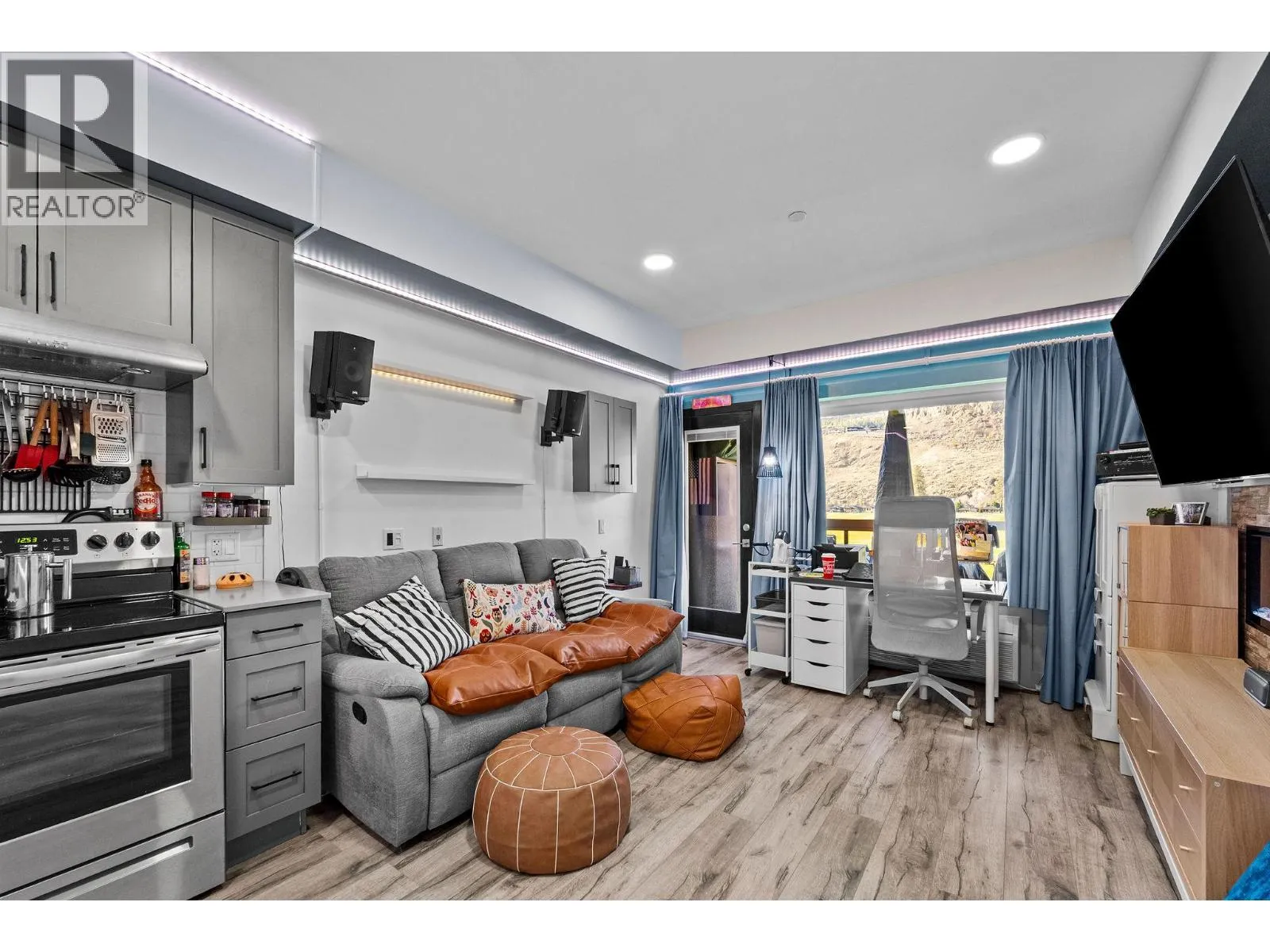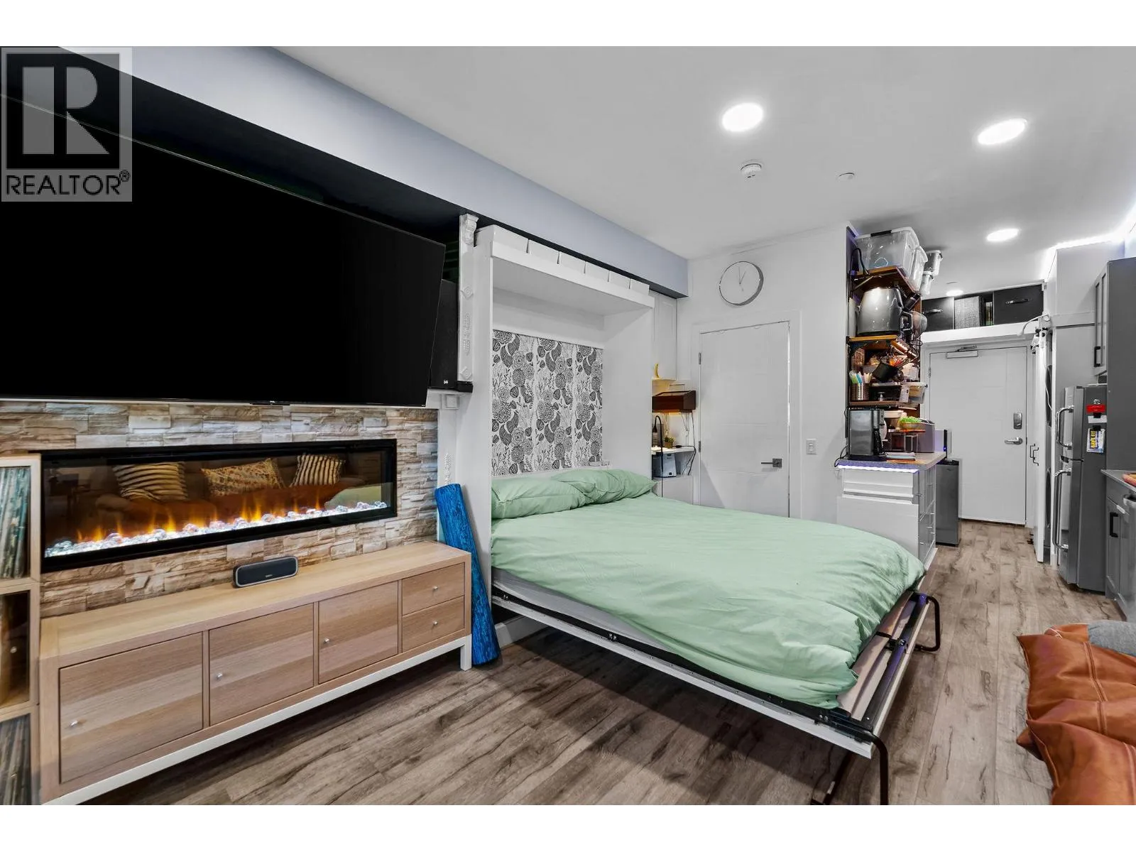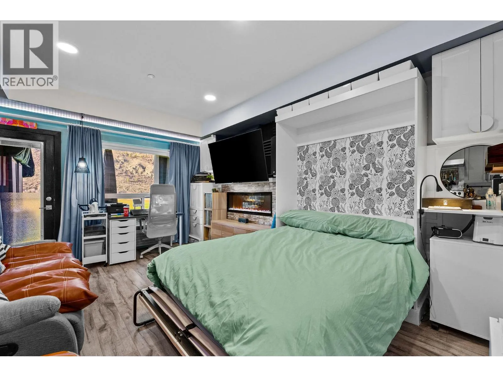 Freshly painted and featuring thousands of dollars in custom built-ins, including a top-of-the-line Murphy bed, this thoughtfully designed studio offers exceptional functionality and style. Welcome to Fairway10, the newest and most exciting condo development at The Dunes Golf Course, nestled in the tranquil community of Westsyde. This west-facing studio is the best-priced unit in the building, making it an outstanding opportunity for first-time buyers or a smart addition to an investment portfolio. Designed with both form and function in mind, the open floor plan maximizes every square foot without sacrificing comfort. A modern colour palette, stainless steel appliances, tiled backsplash, and a sleek fireplace creates a contemporary feel throughout the space. Step outside to the expansive covered deck, where youâll enjoy privacy and inspiring, unobstructed views of the golf course and surrounding mountainsâperfect for relaxing or entertaining. Additional features include two storage closets, in-suite laundry, air conditioning, window coverings, and one surface parking stall. The four-piece bathroom is finished with clean, modern details, completing the homeâs polished and functional look. Fairway10 offers low-maintenance living with low strata fees and is both pet-friendly and rental-friendly, providing flexibility and peace of mind. (id:27476)