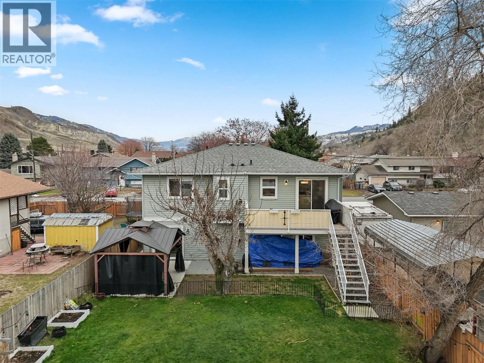 Welcome to this nearly new, move-in-ready home built in 2019, located in the desirable community of Dallas. Offering 5 bedrooms (or 4 & den/flex space), and a functional open-concept layout, this property is ideal for families, multi-generational living, or those seeking future suite potential with a separate entrance and rough-in already in place. Set on a fully fenced, flat lot with parking for up to six vehicles, there's even room for your boat or RV. The home combines everyday convenience with outdoor enjoyment, including a therapeutic hot tub oasis which cost $30,000 to put in place, yes - it's included in the purchase! Enjoy beautiful mountain views from the property, with a nearby park and is in the Dallas elementary school catchment. Located close to a golf course and only a 10-minute drive to downtown, this home delivers the perfect balance of suburban living and easy city access. A rare opportunity to secure a modern home with space, flexibility, and exceptional value in one of Kamloopsâ sought-after neighbourhood's. Don't miss the chance to live in a newer home where your family can grow in the space, or create income support if you'd like to put in the suite. All measurements are approximate; verify if important. (id:27476)