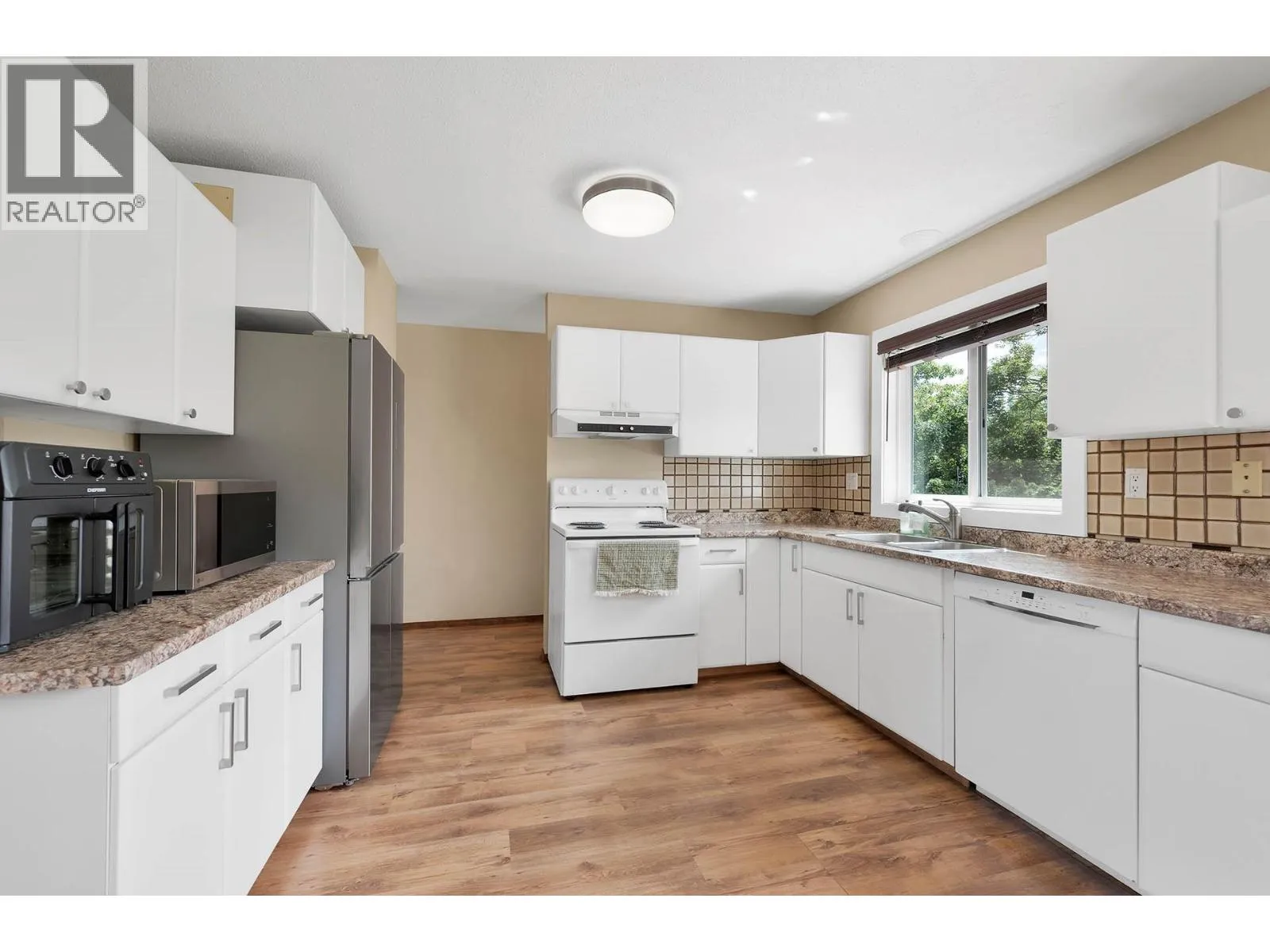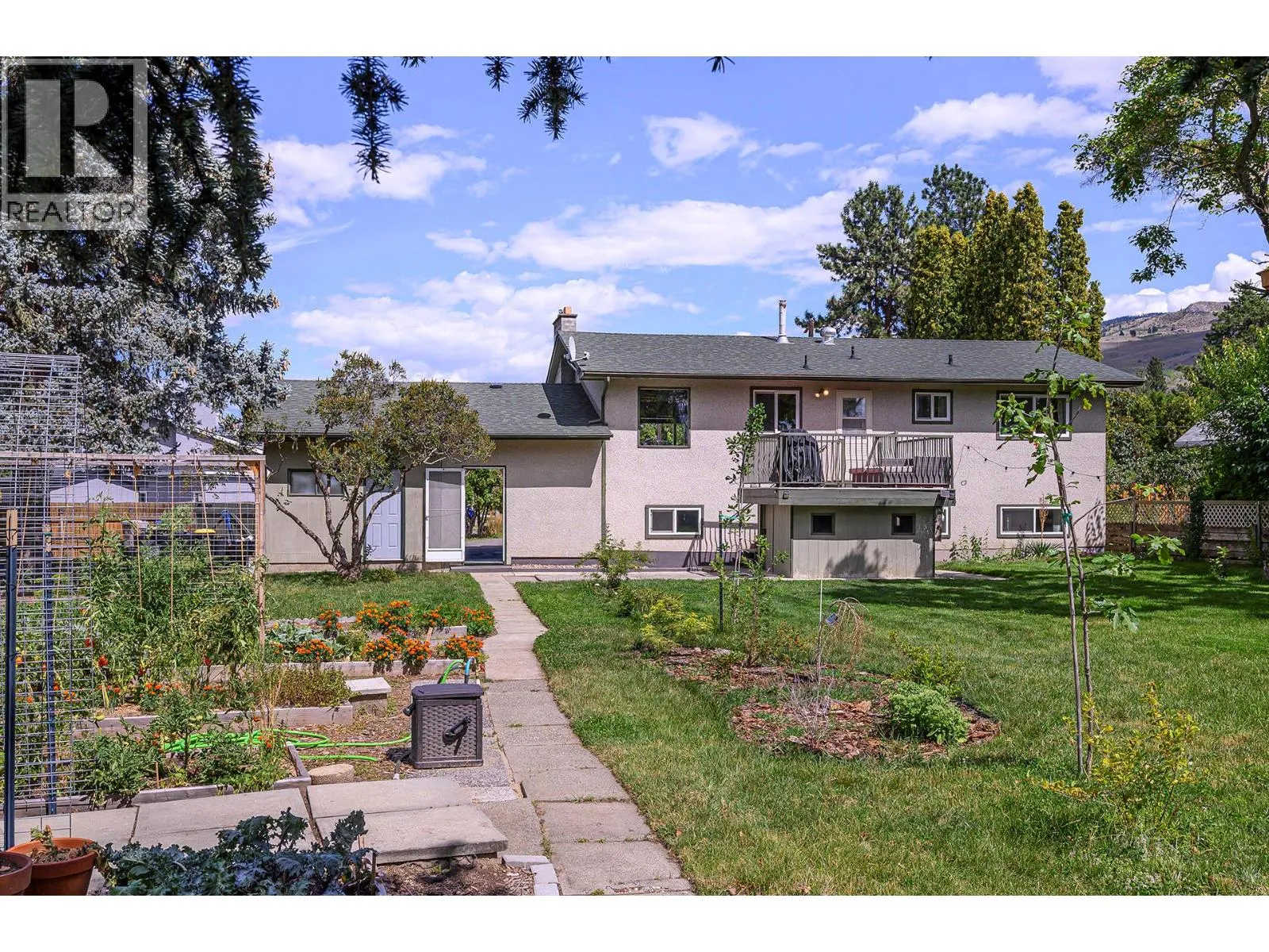 Well kept home on a desirable Westsyde cul-de-sac in one of the area's largest flat lots (0.44 ac). The main floor has lots of natural light and boasts a large livingroom that flows into the dining area and kitchen w/access to the large sundeck and stunning yard. Two large bedrooms and 4-piece bathroom upstairs, with one bedroom converted into a custom office. The well-lit lower floor has a one-bedroom, summer kitchen, laundry and storage room, recroom, 3-piece bathroom and access to the backyard and carport. The carport has been upgraded with storage shelving and a new R20 insulated wall between the garage. The garage has been turned into a workshop with new plywood walls, shelving and a custom workbench. The front yard has been transformed in 2024 with a brick pathway that defines the irrigated xeriscaping. The side yard offers additional parking and full vehicular access to the backyard, which is gorgeous and contains a lovely garden plot, new cedar greenhouse (2025), 10+ fruit trees, u/g sprinklers, mature trees, two sheds-all on well draining sandy soil and wildlife-friendly certified. New windows in 2018-19 (except four upstairs), furnace (2015) and a 1"" water line, fridge, washer and dryer(2023). This home is in walking distance of great schools, parks, public indoor pool, Westsyde Shopping Centre, The Dunes Golf Course and Rivers Trail. Ample parking, including for RVs and also conveniently located steps from the #3 bus into town and the bike route. A must to view! (id:27476)