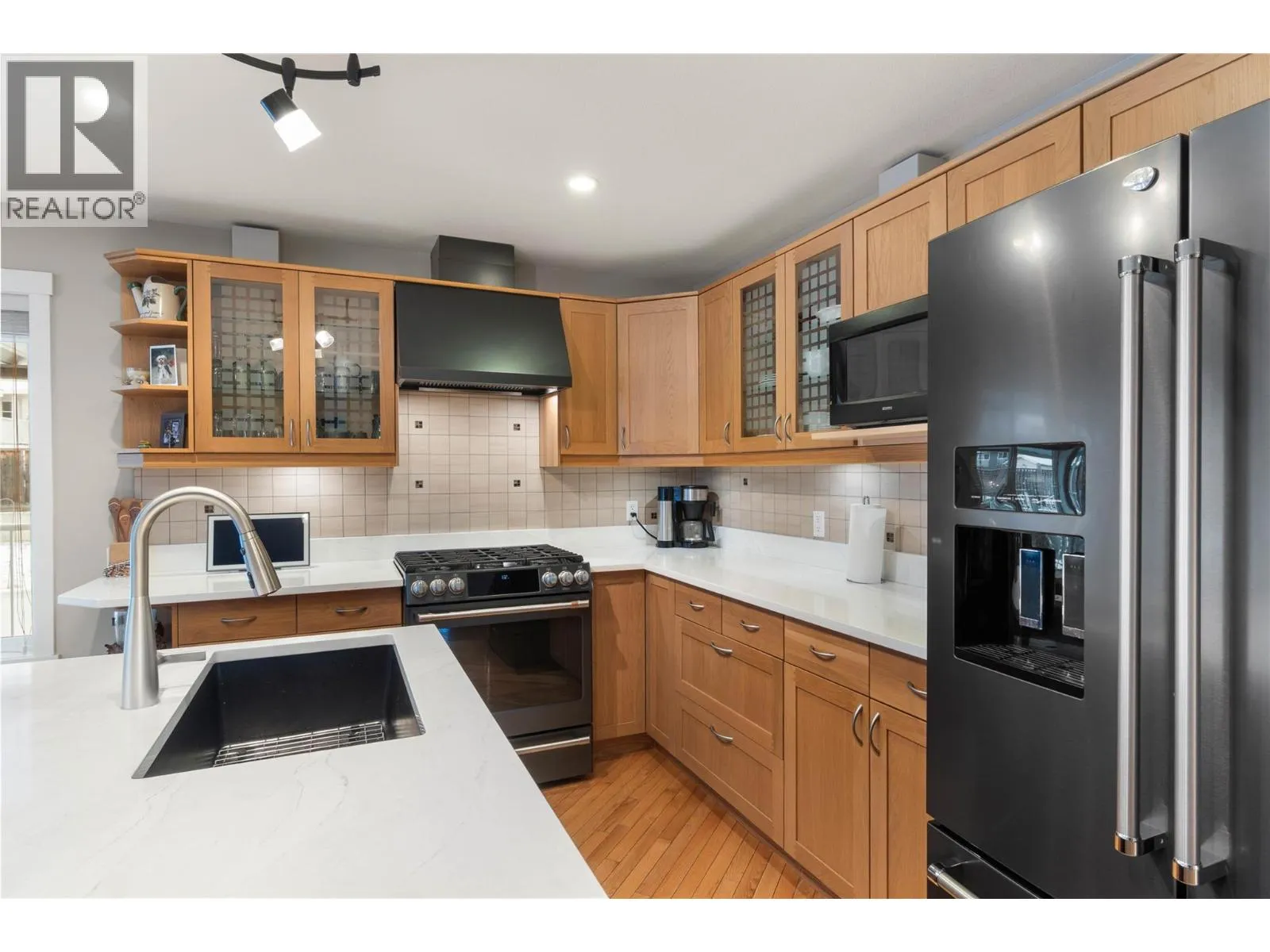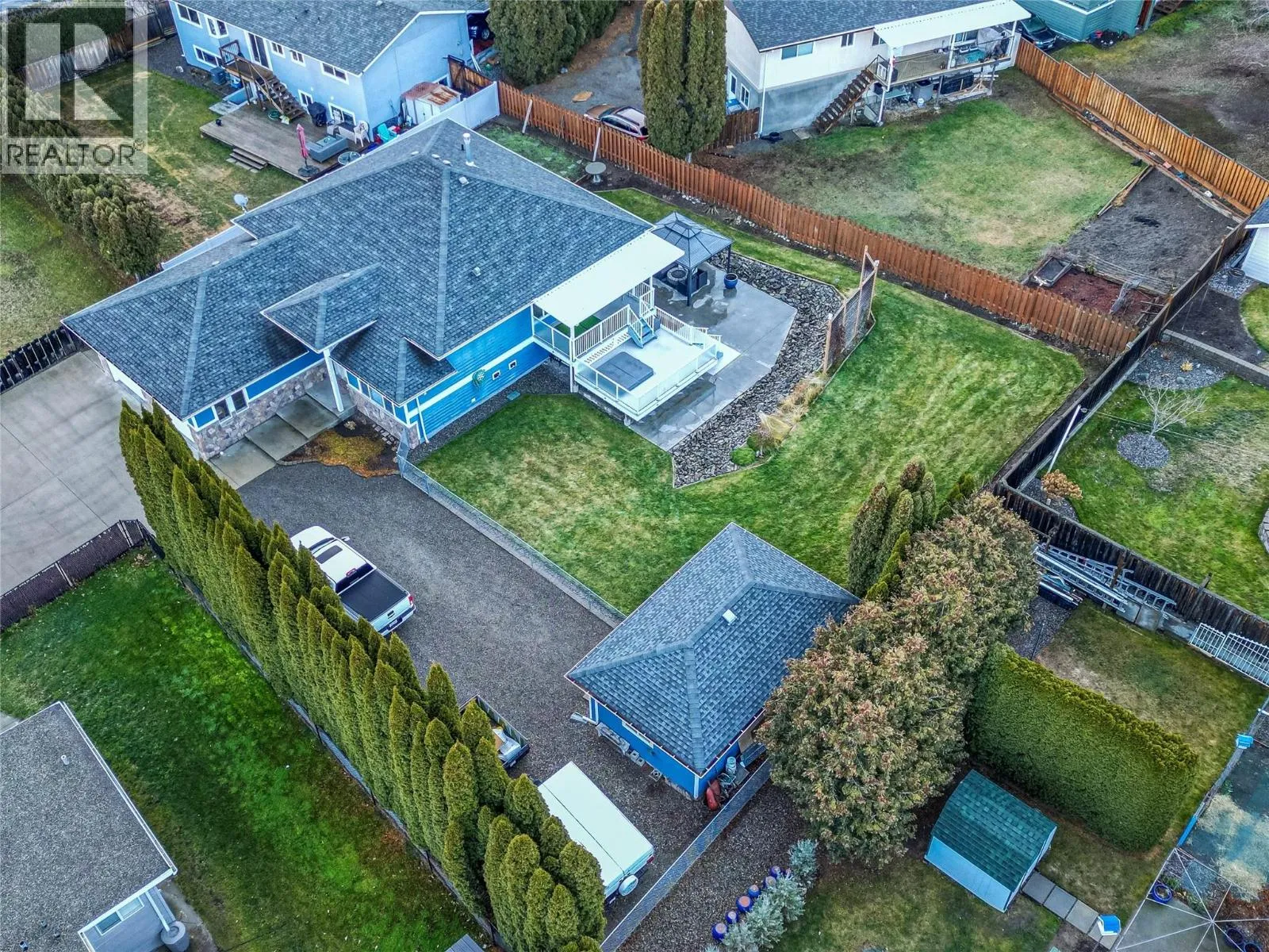 Located on a quiet, sought-after stretch of Valleyview, this custom-built home offers approximately 2,600 sq.ft. of well-designed living space on a fully landscaped 0.39-acre lot. Recent upgrades include quartz kitchen countertops with extended eating bar, updated main bathroom vanity, sink, and toilet, fresh interior paint in the office and front entry, and brand-new washer and gas dryer. The kitchen features high-end appliances, including a 6-burner gas range, and opens to bright living and dining areas with hardwood and tile flooring throughout. The home is meticulously maintained with serviced mechanical systems, a recently replaced hot water holding tank, updated hardwired smoke detectors, and a fully reviewed irrigation system. A flexible office located just off the main entrance between the main and lower levels provides excellent separation and could function as an additional bedroom if desired. The main level offers an open-concept layout, laundry, primary bedroom with ensuite, and access to a covered deck. The fully finished lower level includes a spacious rec room, two bedrooms, full bath with steam shower, wet bar, and separate entry with in-law or suite potential. Additional highlights include in-floor radiant heat, dog washing station, Central Vac, A/C, heated driveway, oversized garage/shop, RV parking, storage shed, underground sprinklers, vinyl fencing, gazebo with gas fire pit, a 3-year-old hot tub, and a private, beautifully established yard. (id:27476)