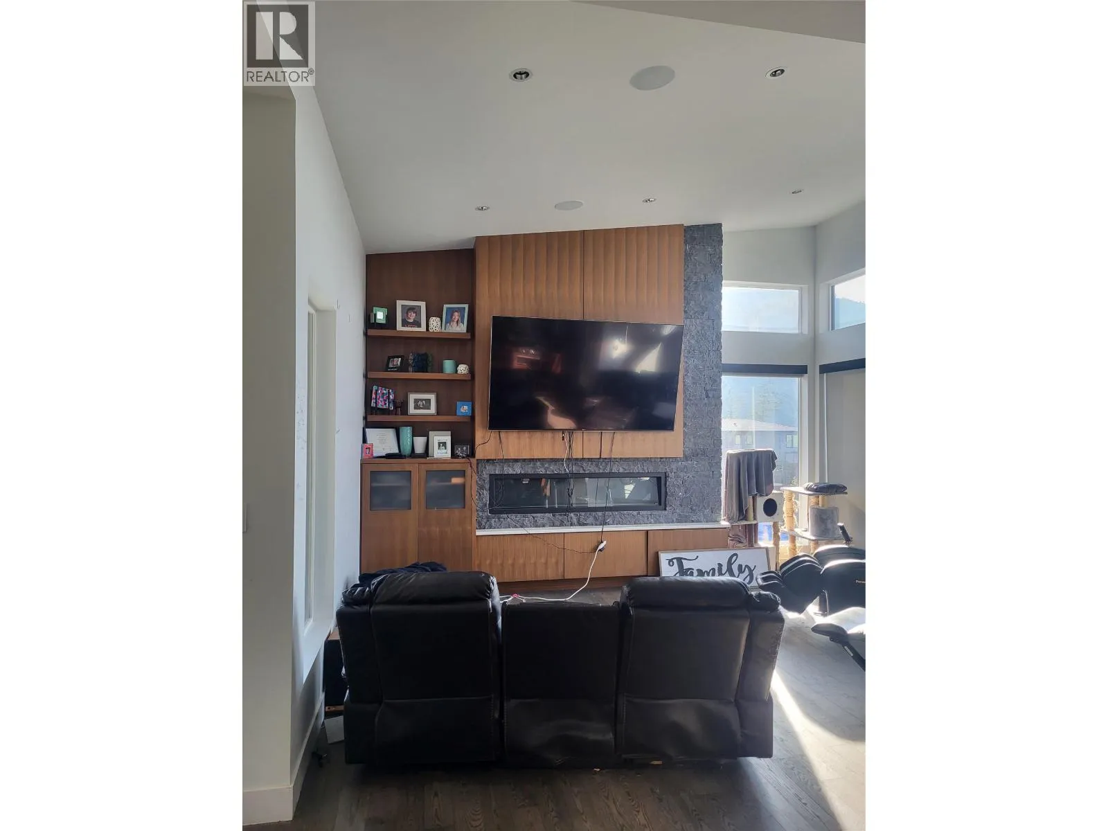 This custom built home is located on a choice corner lot that was selected to fit the owners grand design. The 4567 square feet is divided over 3 levels. Each of the 3 levels offers an oversized primary bedroom with deluxe ensuite. The upper floor also offers 2 more larger bedrooms for a total of 5 oversized bedrooms. There are 5 finished bathrooms with a rough in for a 6th full bath. The basement needs some final touches to complete the home. The main floor offers a huge laundry area and mudroom that joins to the enormous 3 car garage with higher ceilings. The front foyer greets you with a modern 2 storey staircase and vaulted ceiling. You can then decide to go to the one side that brings you to a well planned master bedroom with deluxe ensuite and a wall of glass that looks out over and gives access to the incredible outdoor covered entertainment area. To the other side of the foyer you will be greeted with a stunning and modern open concept living area featuring a dining area, living room and a custom designed Kitchen that is still featured on the Excel cabinets website. But wait as we are still not finished as we have saved the best for last. You have a glass wall in the kitchen that opens and leads you to the incredible covered outdoor entertaining area that also over looks the salt water pool and the peek a boo view into the valley. There are many other finishing details and features about the home and mechanical that will show the quality the home owner had in mind. (id:27476)