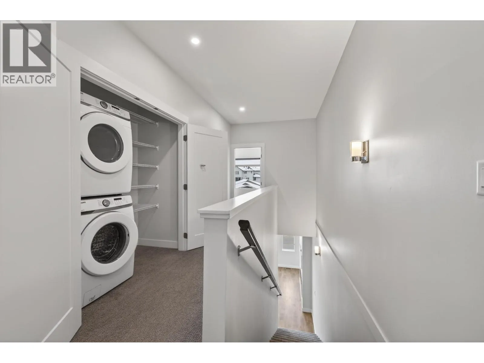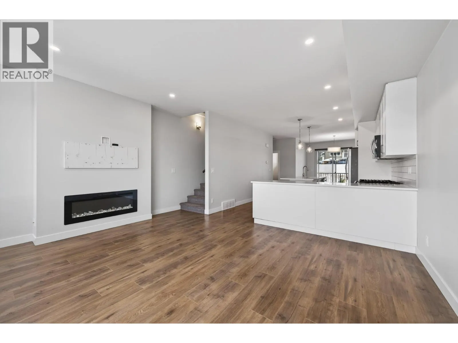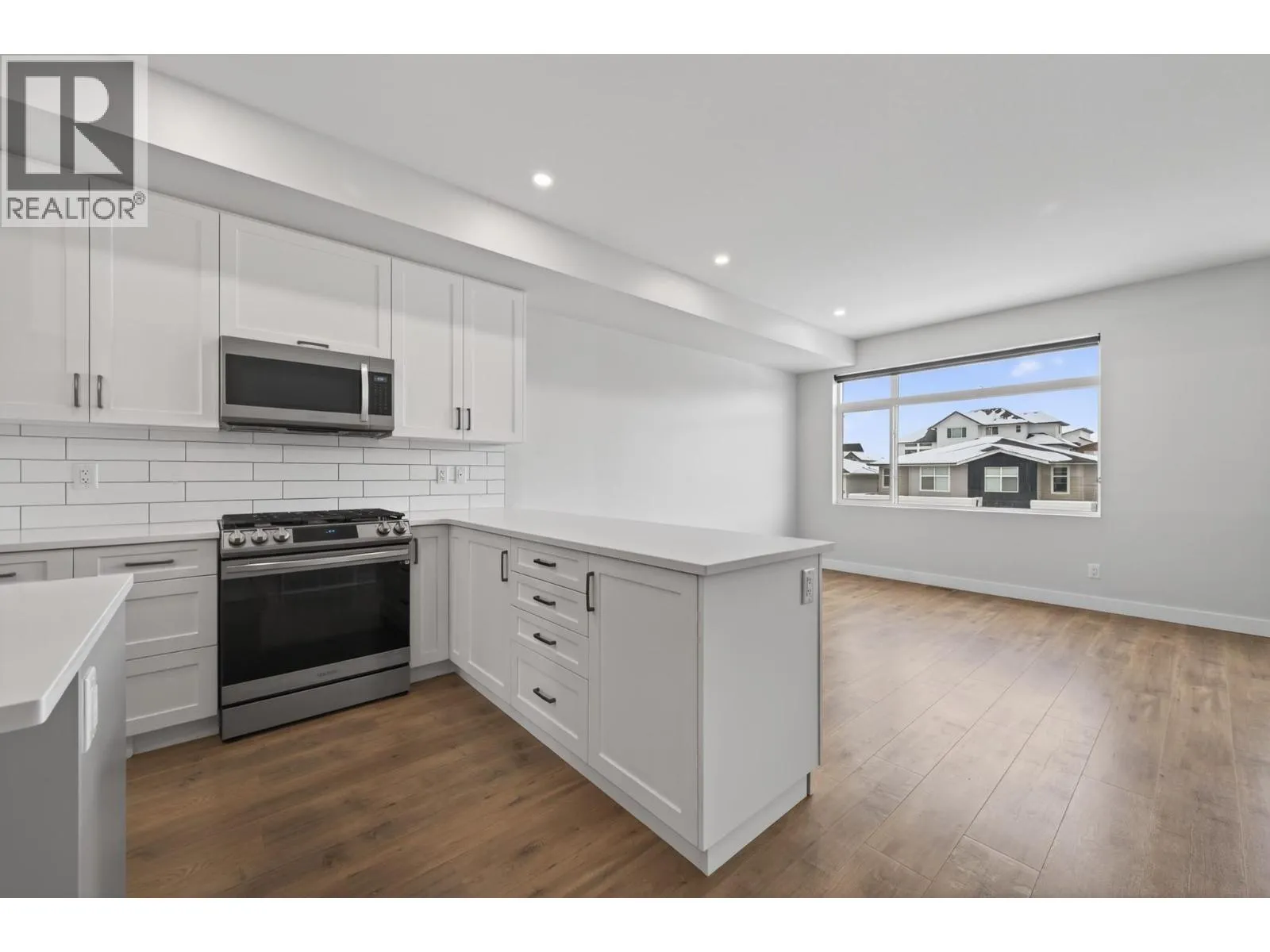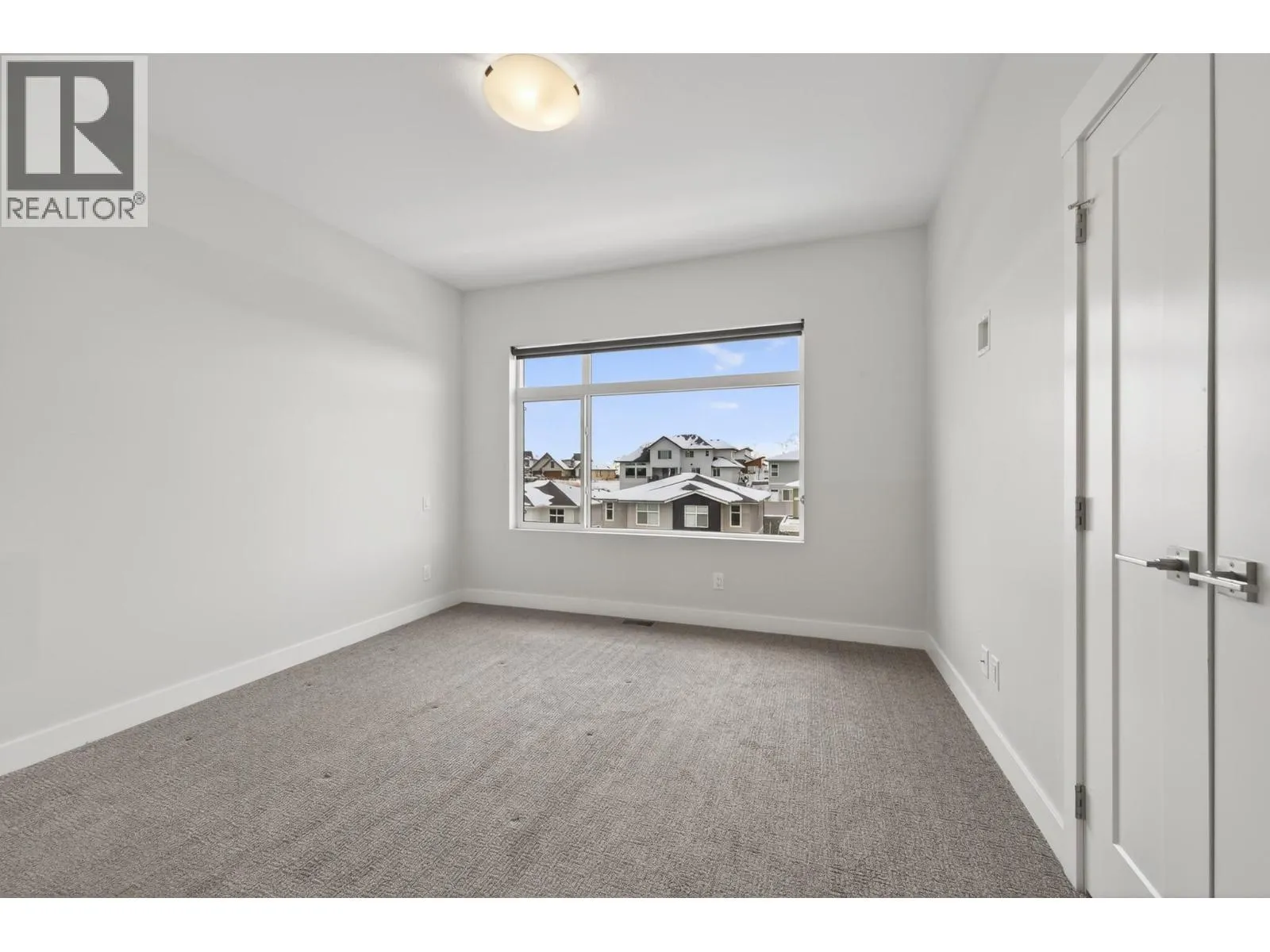 Lovely Juniper Ridge three level townhome with 4 bedrooms, beautiful bright open living space and an oversized single garage. Enter this nearly new townhome and you will find a good sized main entry. This level consists of a bedroom with siliding glass doors to a patio and could be a home office, family room or additional bedroom. There is a storage/mud room space which then leads to the single oversized garage (16â1x21.2) with EV charging. To finish it off there is a 2 piece bathroom. Ascend to the main living space where you will find a great room open floor plan with modern kitchen featuring stone counters, modern appliances including a gas stove, a dining room which leads to a large south facing deck with BBQ hook up and living room with huge picture window and electric fireplace. There is a 2 piece bathroom on this level. The top level includes 3 bedrooms, the primary bedroom has a nice sized ensuite with double sinks and custom walk in closet with built in organizers. There is laundry on the top floor with linen storage and an additional 4 piece bathroom to compliment the 2 additional bedrooms. Bonus 2 outside parking spaces plus street parking 3+ parking total!! This complex itself is located steps to hiking trails, the Juniper Bike Ranch, playground and park, dog park and community market. It is a great area for families, downsize or first timers! There is something here for the whole family. Quick possession possible. (id:27476)