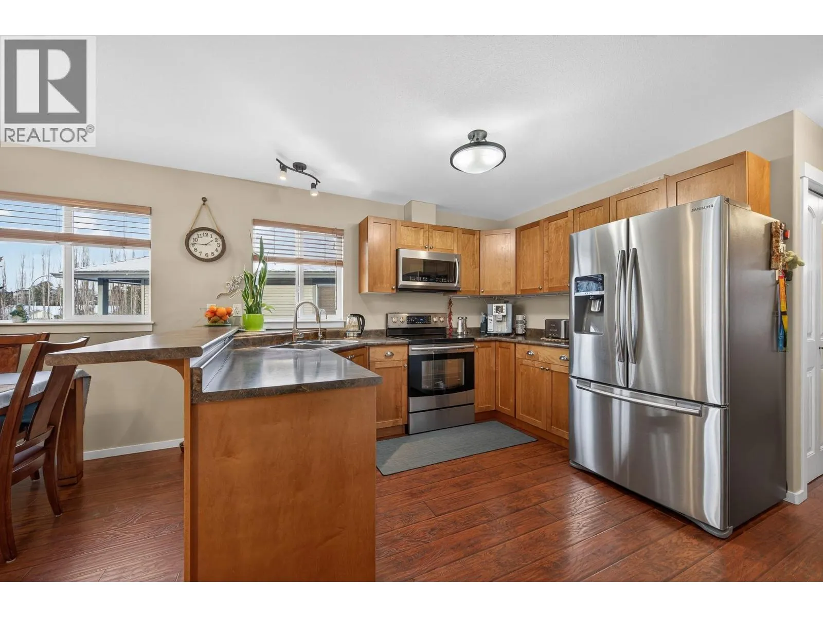 Welcome to your own private nature retreat! This beautifully updated and well maintained 3-bedroom + den rancher is tucked into one of Kamloopsâ most family-friendly neighbourhoods, backing directly onto walking trails, Pineview Duck Pond, and Pineview Park. Thoughtfully designed and truly turn-key, the home offers 2 bedrooms up with a bright, open-concept layout, a large kitchen island, and an abundance of natural light. The fully finished basement features 1 bedroom, a den, an additional bathroom, and a spacious rec room that opens onto a covered patioâideal for entertaining or relaxing. Recent updates include modern flooring, 24"" tile in the bathroom, fresh paint, accent lighting, updated appliances, and a central vac rough-in. A portable A/C unit is also included. Step outside to a private, fully fenced backyard oasis, complete with side-yard access on both sides, a rear gate leading directly to the trails and park, and a rare full sauna perfect for unwinding after a long day. Offering low-maintenance living, ample storage, flexible possession, and a low bare land strata fee of just $132/month, this is a rare opportunity to enjoy comfort, nature, and community all in one. Just move in and enjoy. (id:27476)