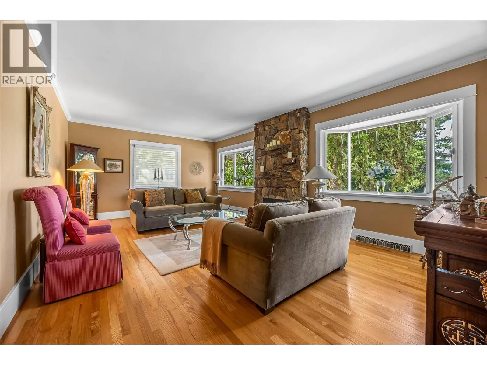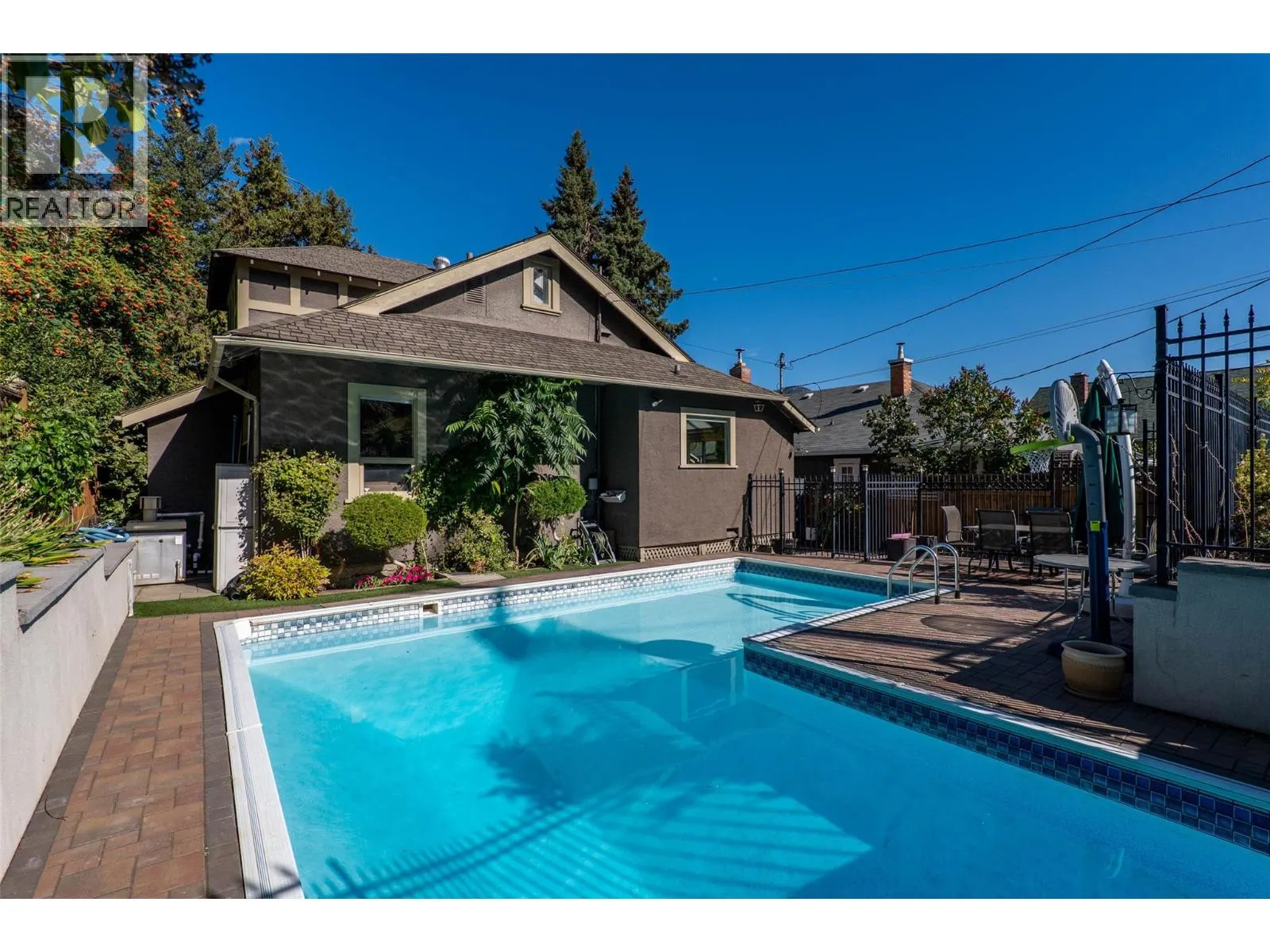 Beautifully appointed character home with exceptional street appeal, highlighted by stone walls and a prime central location in the City Center. Just minutes from RIH, shopping, restaurants, parks, theater, schools, and approximately 10 minutes to TRU. This well-cared-for West End property has been lovingly maintained by a long-time owner and is truly a pleasure to show. The home features 4 bedrooms and 2 bathrooms, with one bedroom conveniently located on the main floor. The spacious custom 15â x 13â kitchen with eating area flows into a formal dining room, which sits adjacent to the cozy living room with its striking rock gas fireplace. Outdoors, the property is fully fenced and showcases a heated in-ground pool (heater and pump are newer, the seller is not sure of the age of the liner), tastefully enclosed with wrought-iron fencingâperfect for entertaining. The yard is beautifully landscaped and low maintenance, offering both charm and convenience. Quick possession is possible. (id:27476)