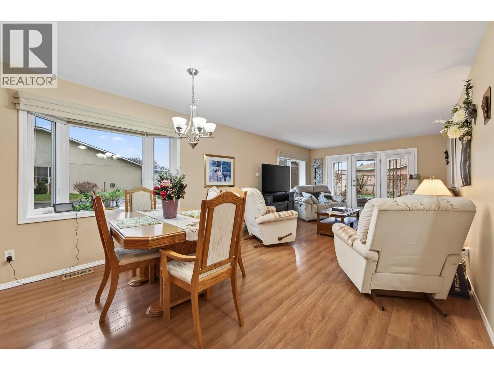 Enjoy true rancher-style living on one convenient level, with a welcoming Guest Room at the front of home and a spacious Master Bedroom tucked privately at the opposite end. The Master Bedroom comfortably fits king-sized furnishings and features a four-piece ensuite plus two closets. The bright, cheerful kitchen includes an eating bar for casual meals and flows seamlessly into the living and dining areas, both enhanced by charming bay windows with power blinds that bring in abundant natural light. Off the generous entryway, youâll find the laundry room and a second bathroom, along with excellent storage in the hall closet, linen cabinet, and even a handy crawl space. French doors off the living room lead to the large covered patio. A single garage provides secure parking, complemented by ample driveway space. The fully fenced, level, pet-friendly yard is well maintained, with defined garden borders and a dedicated area showcasing numerous perennials. All measurements are approximate. Please call for more information or to view. (id:27476)