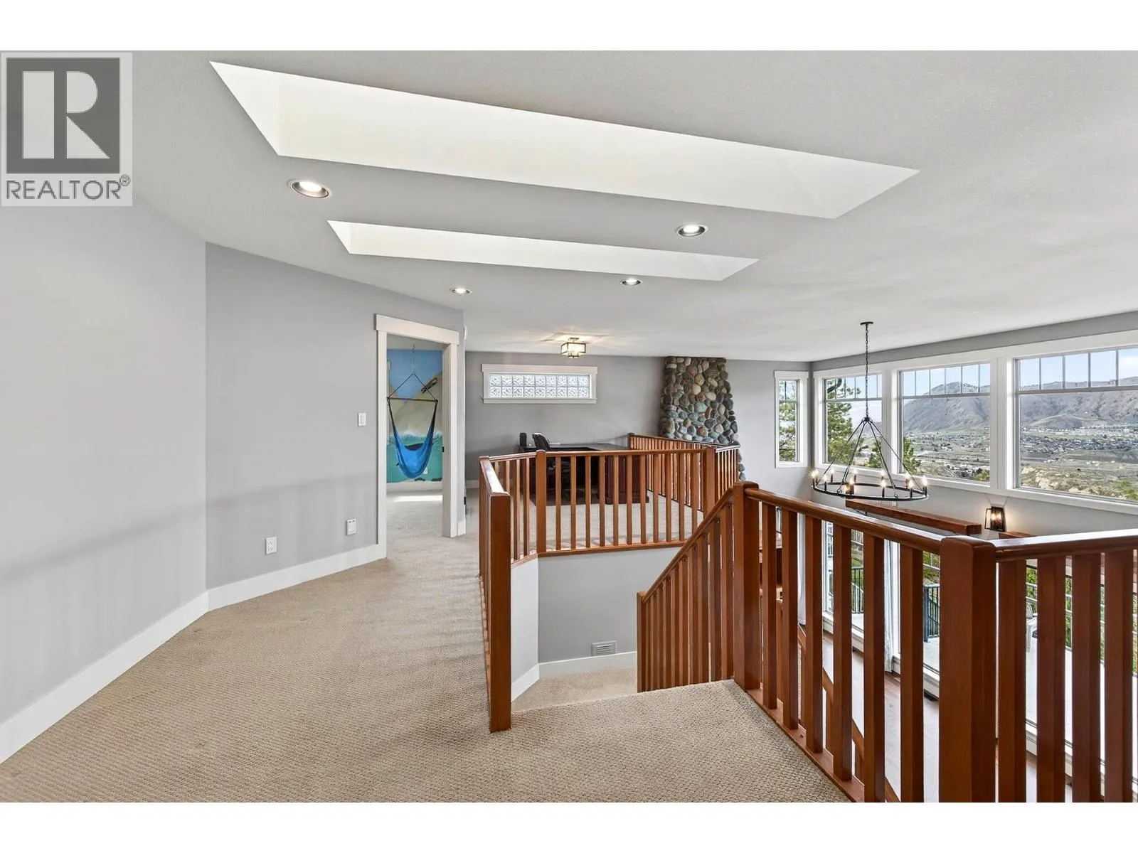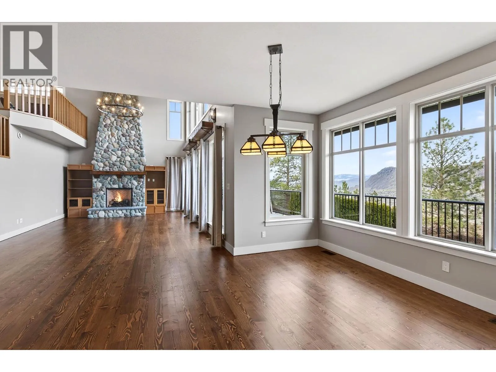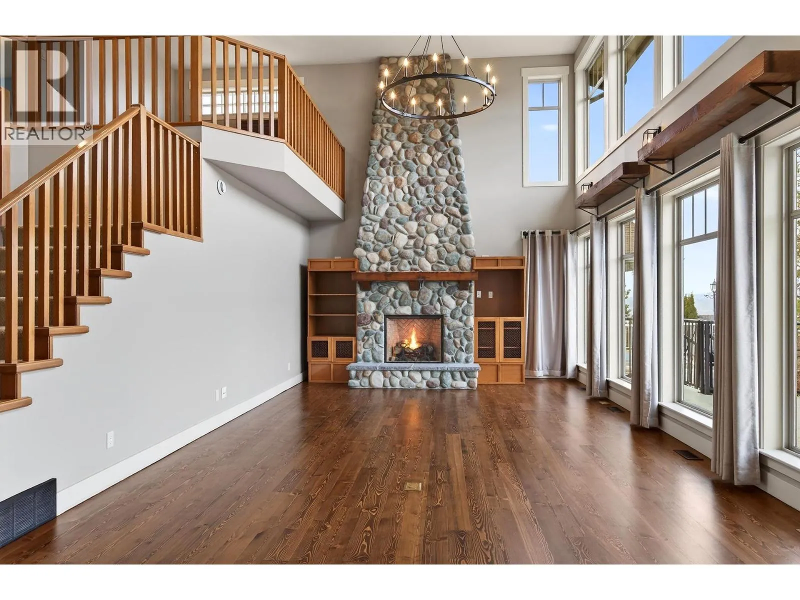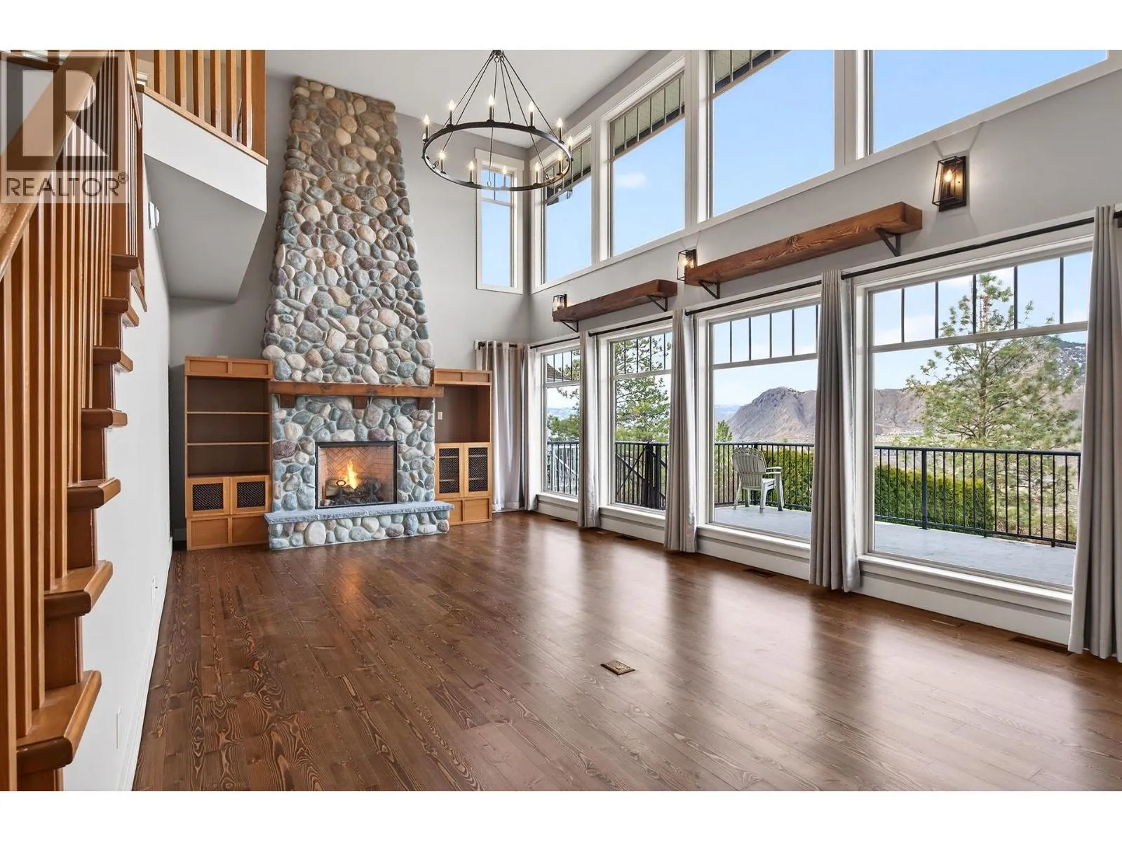 Discover over 5,000 sq. ft. of thoughtfully finished living space in this stunning, custom-built 6-bedroom, 4-bathroom home. The heart of the home is a spectacular main floor featuring soaring 17-foot ceilings and a dramatic floor-to-ceiling rock fireplace that anchors the living room. Expansive windows frame breathtaking panoramic views, flooding the open-concept space with natural light. The kitchen is well-appointed for hosting and daily life, centered around a large island with a walk-in pantry and direct access to a spacious sundeck. The main level is designed for convenience, featuring a laundry room, a practical dog shower accessible directly from the garage, and a large flex room perfect for an office, den, diningroom, or bedroom. Upstairs, you will find a loft area taking in the beautiful views, a 4 piece main bathroom, and three generous bedrooms, each featuring its own walk-in closet. The primary suite serves as a quiet retreat, complete with a private deck to take in the views and a 4-piece ensuite with the comfort of in-floor heating. The walk-out basement features a versatile recreation room with a wet-bar rough-in, two additional bedrooms, a 4-piece bathroom, and a storage room under the suspended slab. From this level, a separate entry leads out to the large, family-friendly yard and patio, located just a short distance from Juniper Ridge Elementary. Completing the home is a double garage with a dedicated shop bump-out. With its custom architectural details and functional layout, this home offers a refined lifestyle in one of the communityâs most desirable locations. (id:27476)