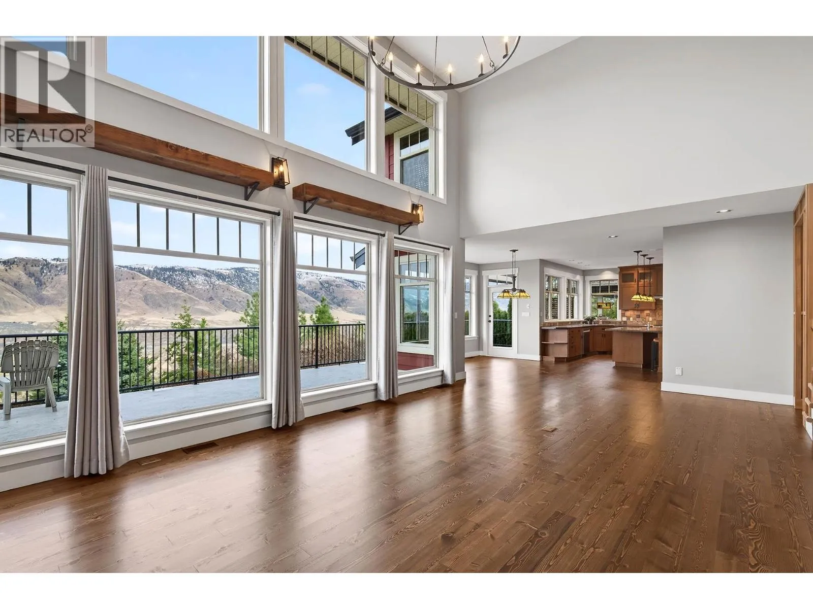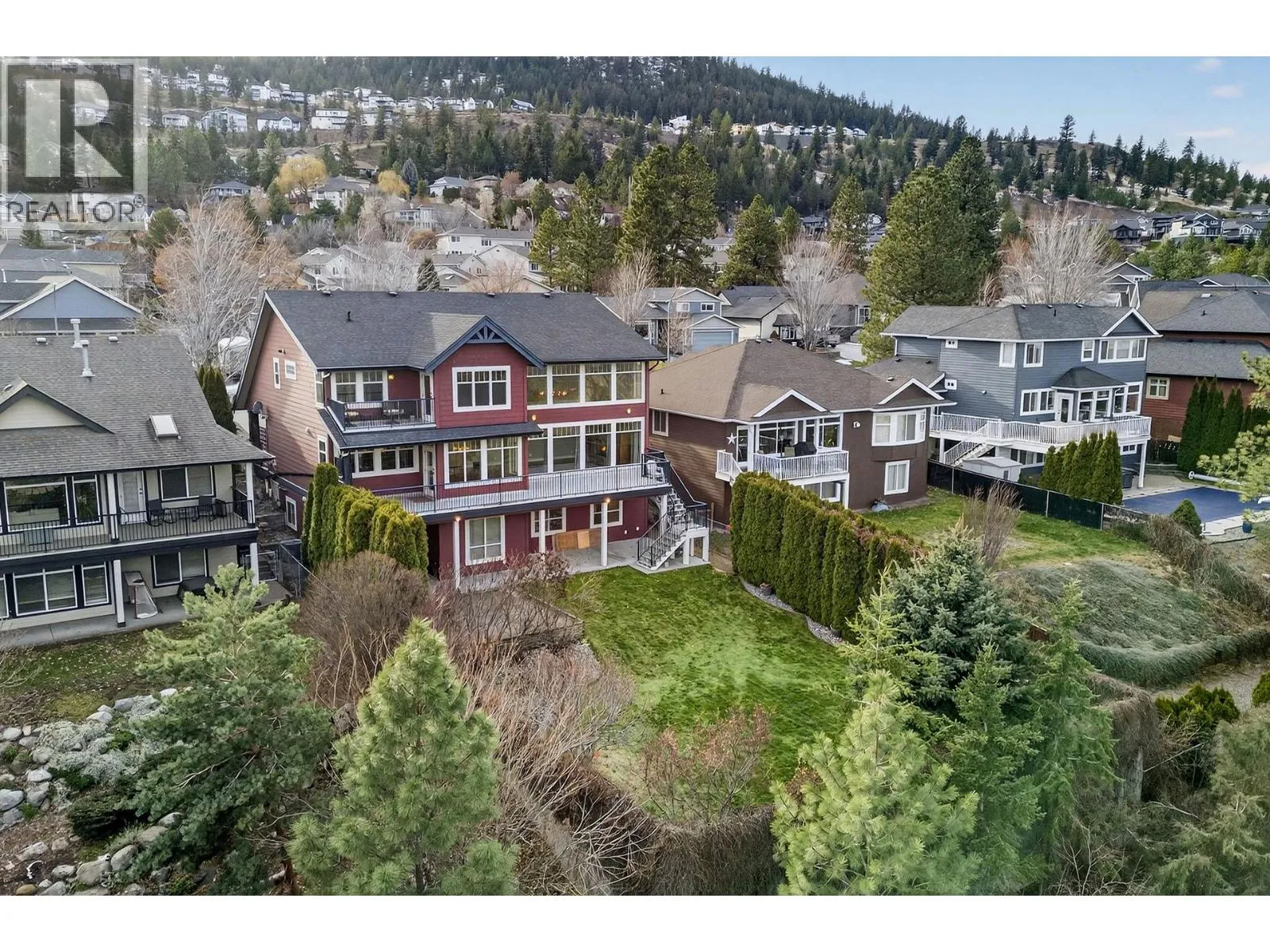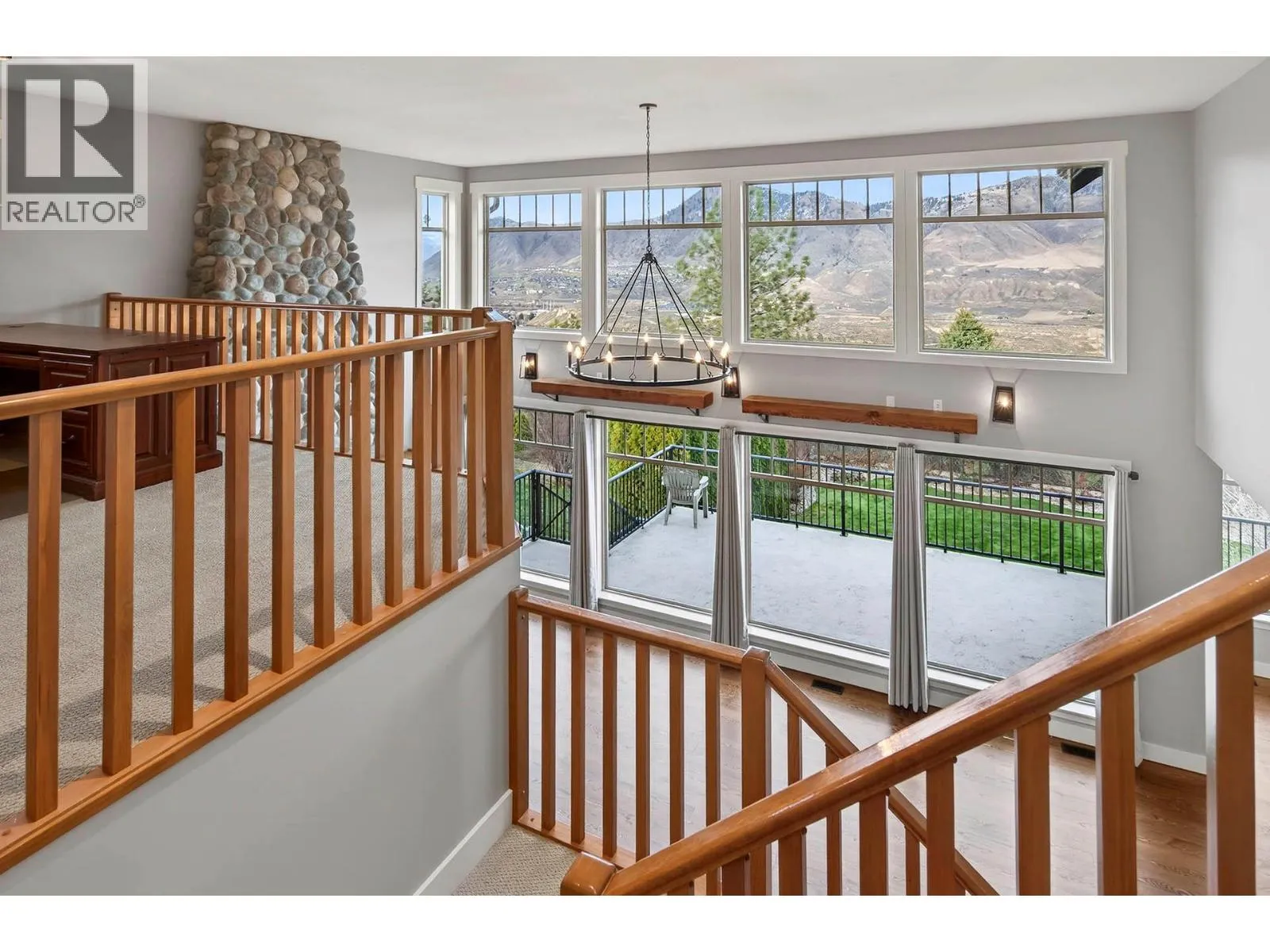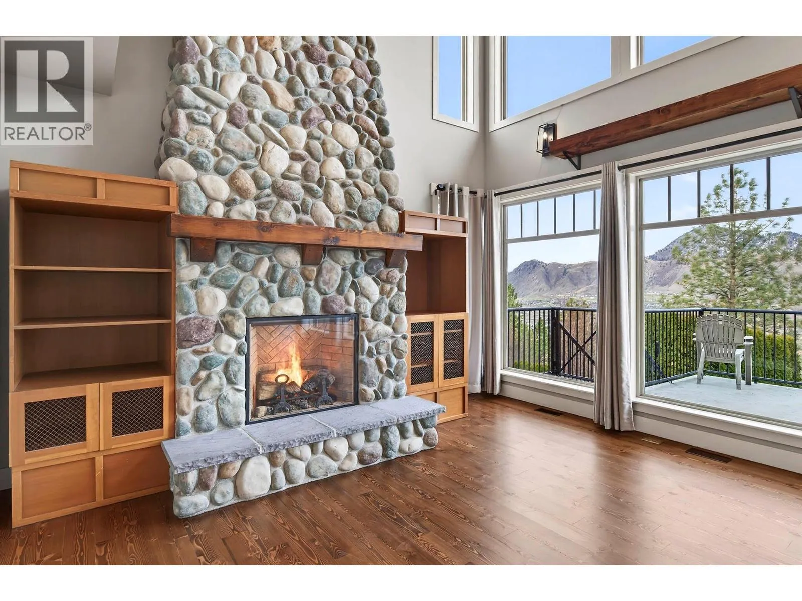 Discover over 5,000 sq. ft. of thoughtfully finished living space in this stunning, custom-built 6-bedroom, 4-bathroom home. The heart of the home is a spectacular main floor featuring soaring 17-foot ceilings and a dramatic floor-to-ceiling rock fireplace that anchors the living room. Expansive windows frame breathtaking panoramic views, flooding the open-concept space with natural light. The kitchen is well-appointed for hosting and daily life, centered around a large island with a walk-in pantry and direct access to a spacious sundeck. The main level is designed for convenience, featuring a laundry room, a practical dog shower accessible directly from the garage, and a large flex room perfect for an office, den, diningroom, or bedroom. Upstairs, you will find a loft area taking in the beautiful views, a 4 piece main bathroom, and three generous bedrooms, each featuring its own walk-in closet. The primary suite serves as a quiet retreat, complete with a private deck to take in the views and a 4-piece ensuite with the comfort of in-floor heating. The walk-out basement features a versatile recreation room with a wet-bar rough-in, two additional bedrooms, a 4-piece bathroom, and a storage room under the suspended slab. From this level, a separate entry leads out to the large, family-friendly yard and patio, located just a short distance from Juniper Ridge Elementary. Completing the home is a double garage with a dedicated shop bump-out. With its custom architectural details and functional layout, this home offers a refined lifestyle in one of the communityâs most desirable locations. (id:27476)