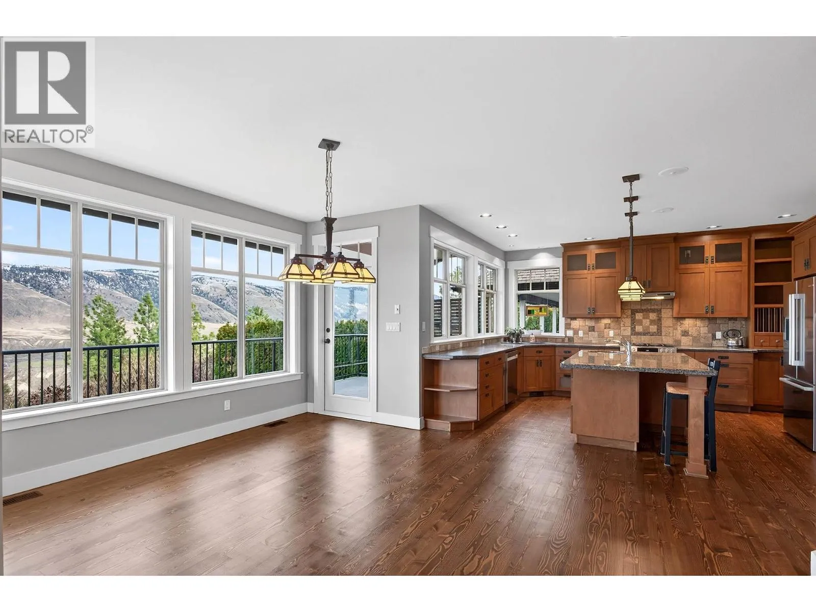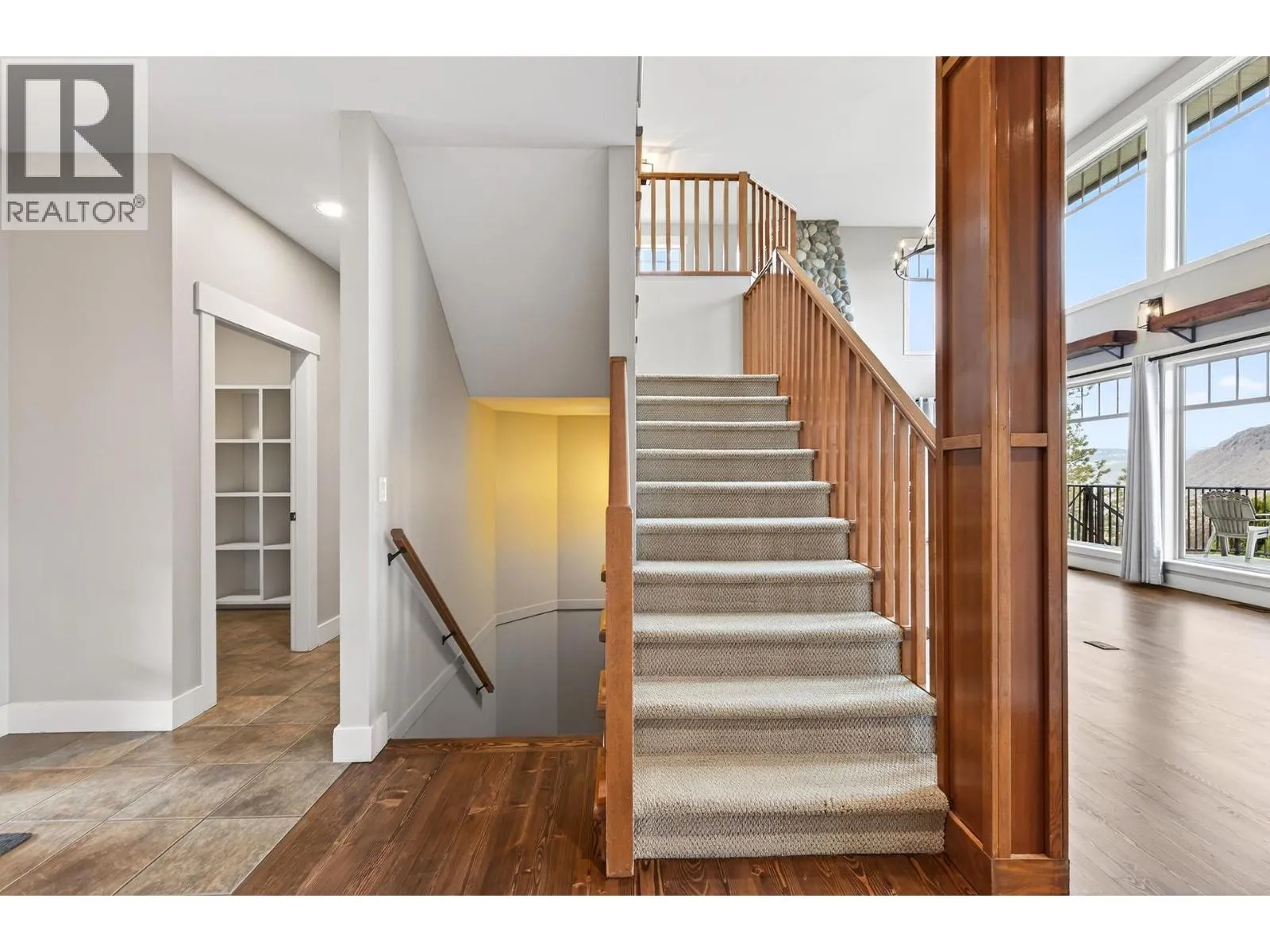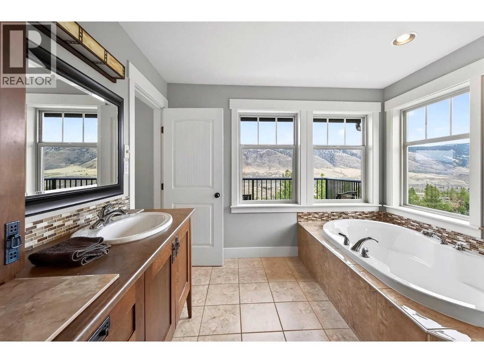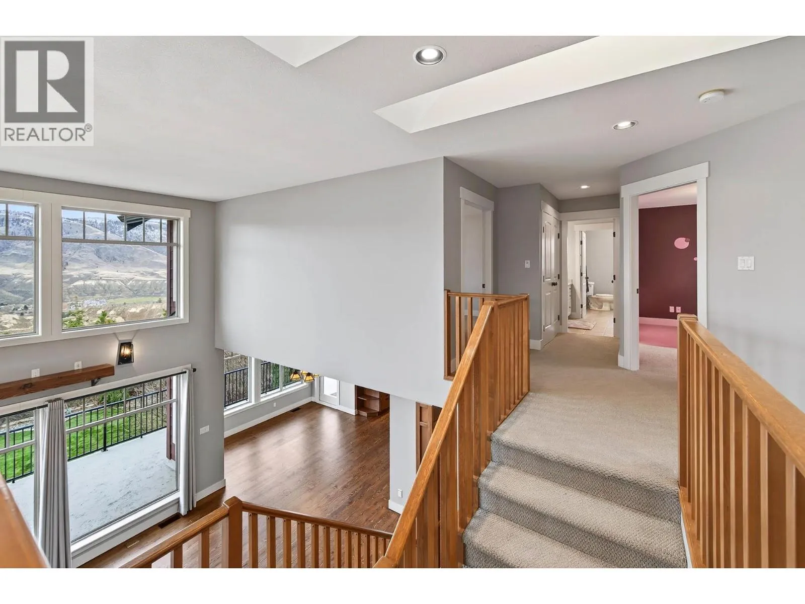 Discover over 5,000 sq. ft. of thoughtfully finished living space in this stunning, custom-built 6-bedroom, 4-bathroom home. The heart of the home is a spectacular main floor featuring soaring 17-foot ceilings and a dramatic floor-to-ceiling rock fireplace that anchors the living room. Expansive windows frame breathtaking panoramic views, flooding the open-concept space with natural light. The kitchen is well-appointed for hosting and daily life, centered around a large island with a walk-in pantry and direct access to a spacious sundeck. The main level is designed for convenience, featuring a laundry room, a practical dog shower accessible directly from the garage, and a large flex room perfect for an office, den, diningroom, or bedroom. Upstairs, you will find a loft area taking in the beautiful views, a 4 piece main bathroom, and three generous bedrooms, each featuring its own walk-in closet. The primary suite serves as a quiet retreat, complete with a private deck to take in the views and a 4-piece ensuite with the comfort of in-floor heating. The walk-out basement features a versatile recreation room with a wet-bar rough-in, two additional bedrooms, a 4-piece bathroom, and a storage room under the suspended slab. From this level, a separate entry leads out to the large, family-friendly yard and patio, located just a short distance from Juniper Ridge Elementary. Completing the home is a double garage with a dedicated shop bump-out. With its custom architectural details and functional layout, this home offers a refined lifestyle in one of the communityâs most desirable locations. (id:27476)