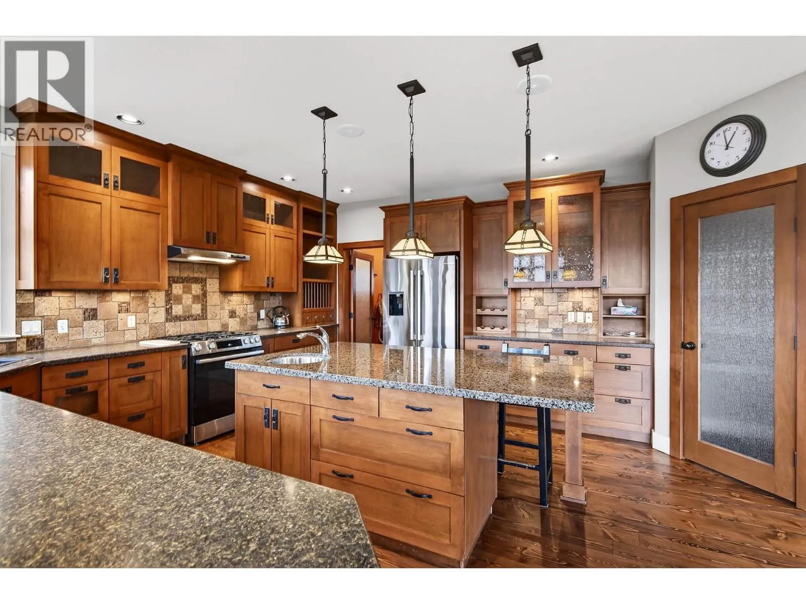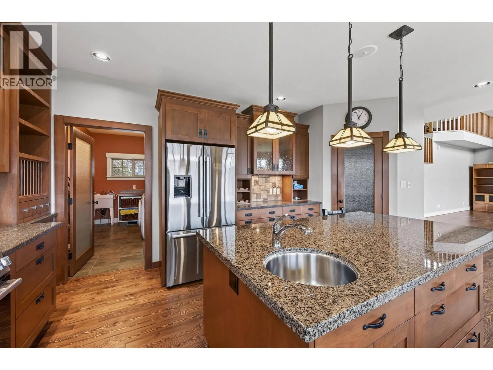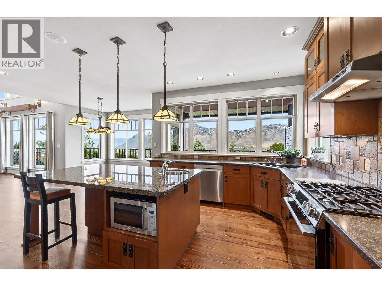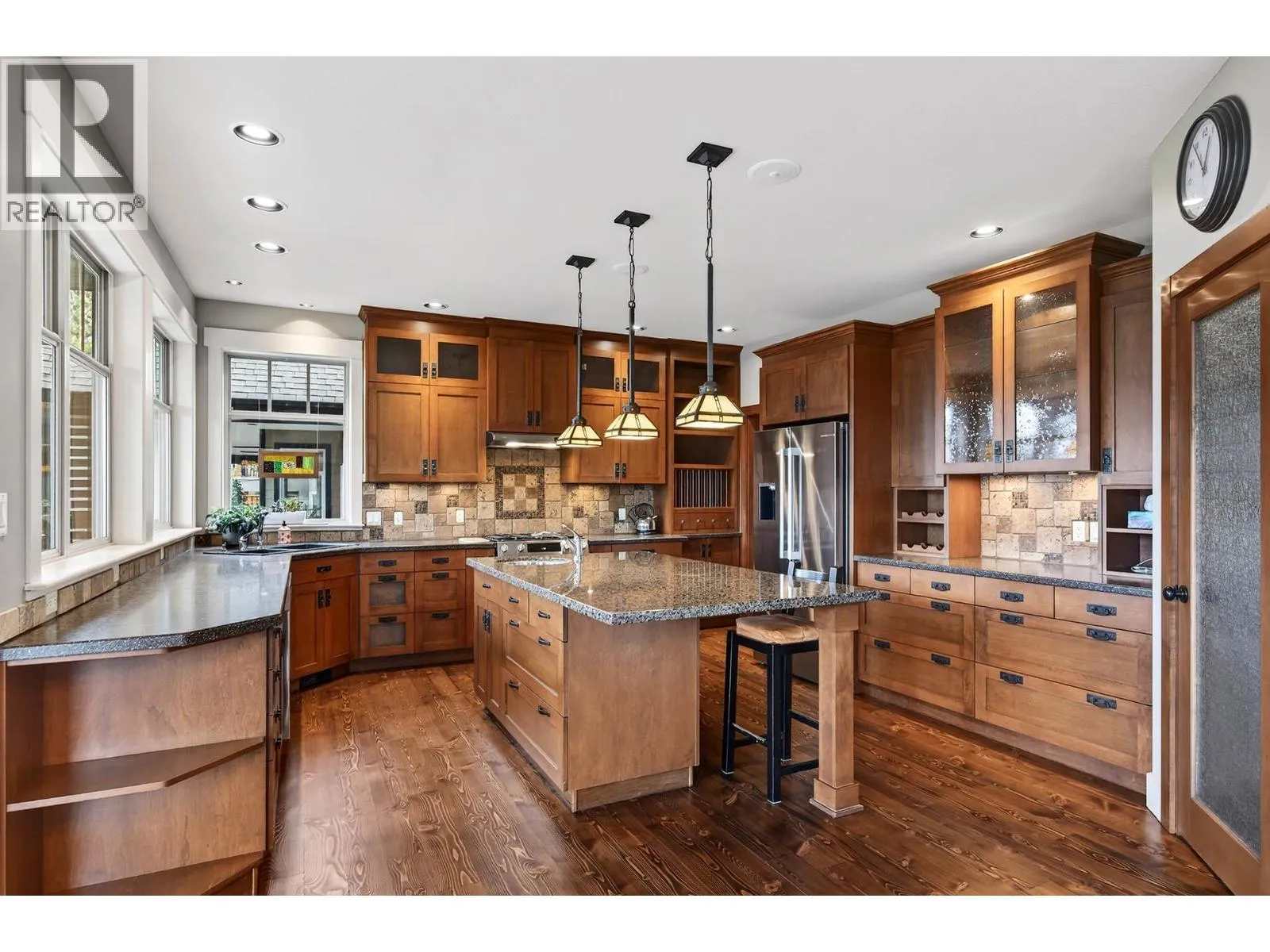 Discover over 5,000 sq. ft. of thoughtfully finished living space in this stunning, custom-built 6-bedroom, 4-bathroom home. The heart of the home is a spectacular main floor featuring soaring 17-foot ceilings and a dramatic floor-to-ceiling rock fireplace that anchors the living room. Expansive windows frame breathtaking panoramic views, flooding the open-concept space with natural light. The kitchen is well-appointed for hosting and daily life, centered around a large island with a walk-in pantry and direct access to a spacious sundeck. The main level is designed for convenience, featuring a laundry room, a practical dog shower accessible directly from the garage, and a large flex room perfect for an office, den, diningroom, or bedroom. Upstairs, you will find a loft area taking in the beautiful views, a 4 piece main bathroom, and three generous bedrooms, each featuring its own walk-in closet. The primary suite serves as a quiet retreat, complete with a private deck to take in the views and a 4-piece ensuite with the comfort of in-floor heating. The walk-out basement features a versatile recreation room with a wet-bar rough-in, two additional bedrooms, a 4-piece bathroom, and a storage room under the suspended slab. From this level, a separate entry leads out to the large, family-friendly yard and patio, located just a short distance from Juniper Ridge Elementary. Completing the home is a double garage with a dedicated shop bump-out. With its custom architectural details and functional layout, this home offers a refined lifestyle in one of the communityâs most desirable locations. (id:27476)