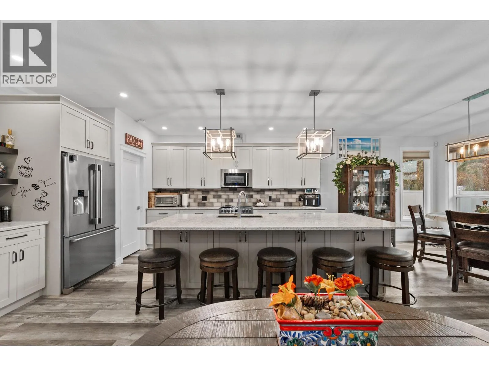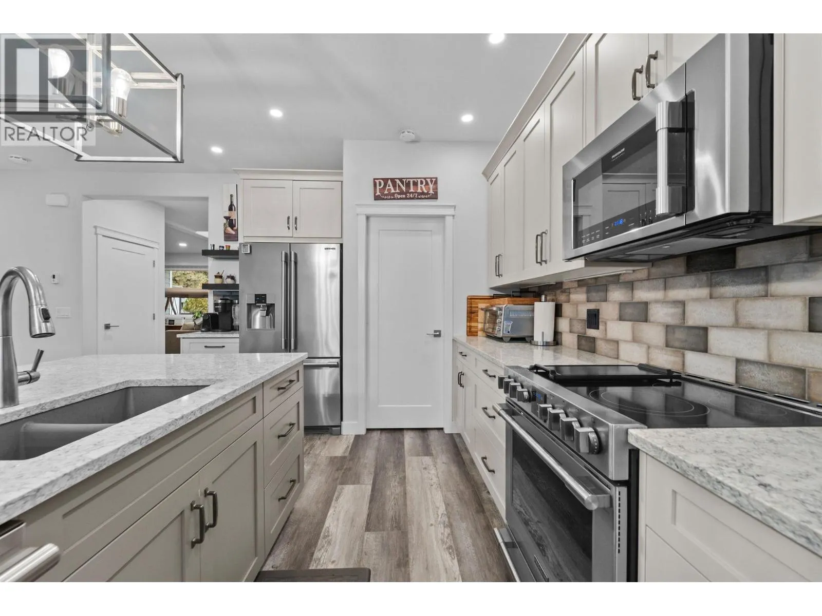 Discover this beautifully crafted 2021 Rancher in Rayleigh, offering effortless main-floor living on a private, fully fenced 1/2 acre lot with durable vinyl fencing. Inside, the home features 4 bedrooms and 3 bathrooms, highlighted by a stunning Excel Kitchens design with a 10-ft quartz island and open-concept layout, and Frigidaire Professional appliances. Off the main living area, enjoy a full covered patio, perfect for year-round outdoor living. The luxurious primary suite includes an extensive ensuite with a tiled shower, a walk-in closet, and its own private balcony overlooking the yard. This property is loaded with premium features including built in Sonos speakers in sitting and living room underground irrigation, central vacuum, Gemstone exterior lighting, gas hookups for a BBQ and fire pit, 8-seater hot tub and gazebo, and a convenient backyard shed. Enjoy exceptional parking with a 2-car garage plus a single-car pull-through garage. The attached 2-bedroom suite, complete with a private entrance, offers fantastic flexibility for extended family or rental income. Located close to the elementary school and nearby parks, this home brings together comfort, convenience, and quality in one exceptional package. Modern, private, and thoughtfully equippedâthis Rayleigh home truly has it all. (id:27476)