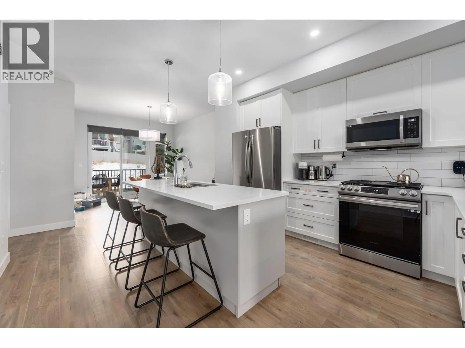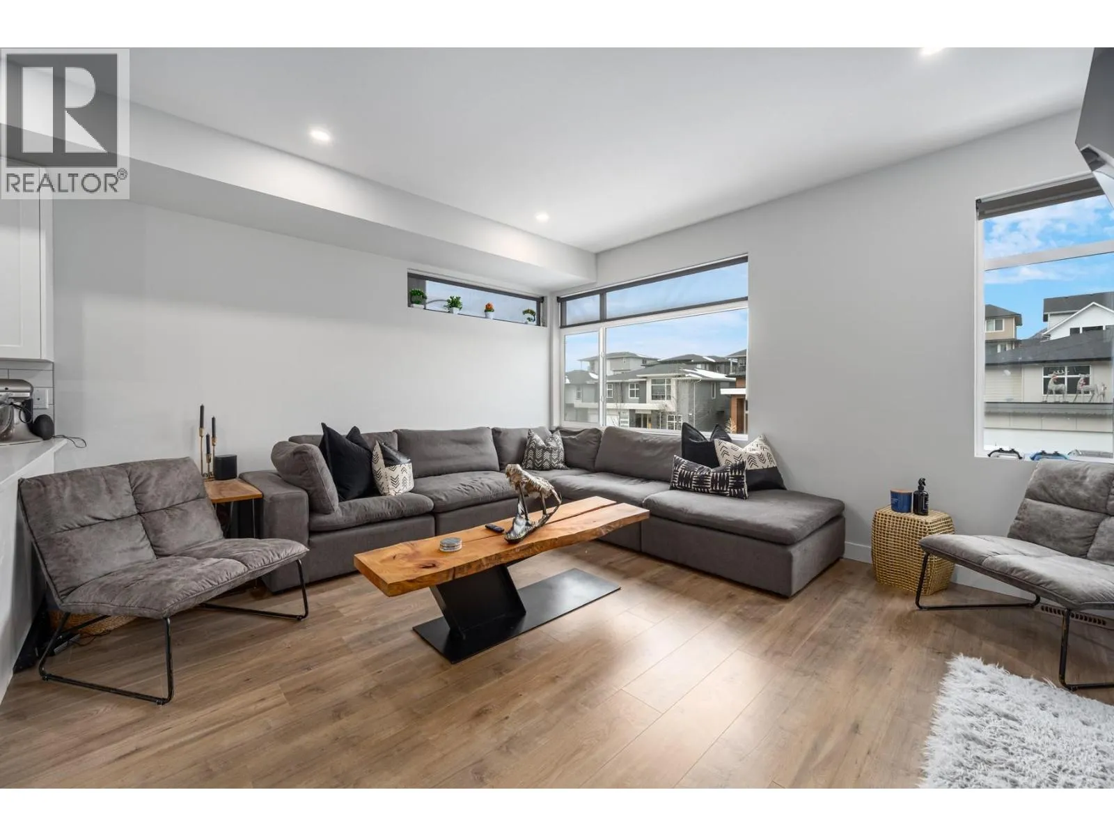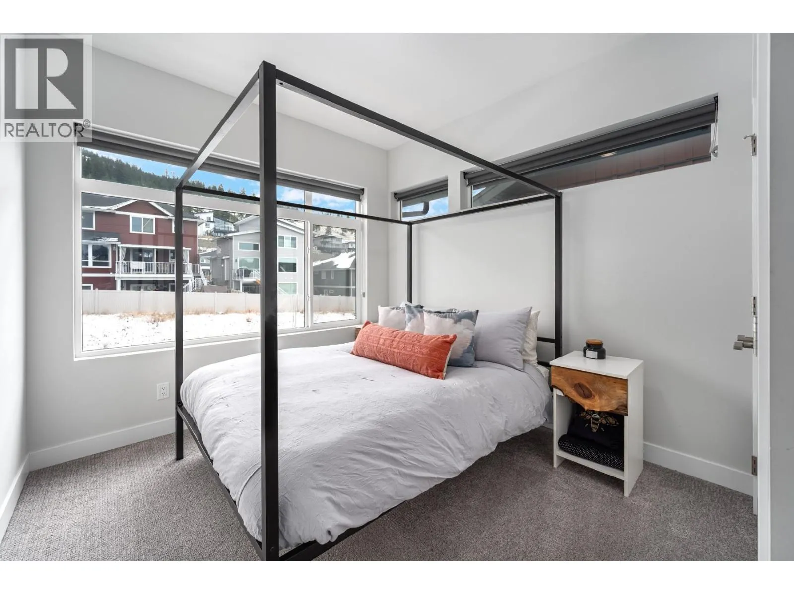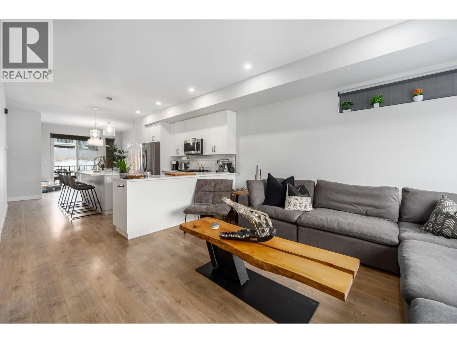Designed and built with thoughtful selections, this well-appointed townhouse offers an ideal Juniper West lifestyle. Located directly across from a playground and close to a dog park, walking trails, and the Juniper Bike Ranch, the location is hard to beat. Entry level access from the spacious garage leads into a functional mudroom area, along with one bedroom and a convenient 2pc powder room. This level is ideal for guests, a home office, or flexible use. The main floor features an upgraded kitchen with quartz countertops, gas range, and S/S appliances, opening to a large covered deck thatâs perfect for outdoor living. This level also includes a powder room and a generous living room with an electric fireplace. As an end unit, the home benefits from extra windows that bring in excellent natural light. Upstairs, youâll find two well-sized bedrooms plus a den/office space. The main bathroom is a 4pc, while the primary bedroom offers a spacious ensuite with double-sink vanity, a large walk-in tiled shower, and a walk-in closet measuring approximately 13 feet with custom shelving for an extensive wardrobe. The garage accommodates one vehicle plus space for bikes or gear. Parking includes one driveway space and one assigned stall. Notable upgrades include quartz countertops throughout, a 60-gallon HWT, and central A/C. Quick possession is possible. This home is an excellent choice for buyers seeking quality, functionality, & the Juniper West lifestyle. (id:27476)