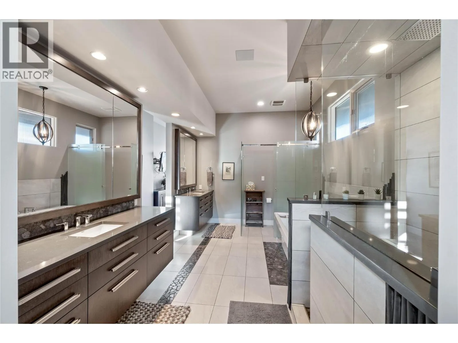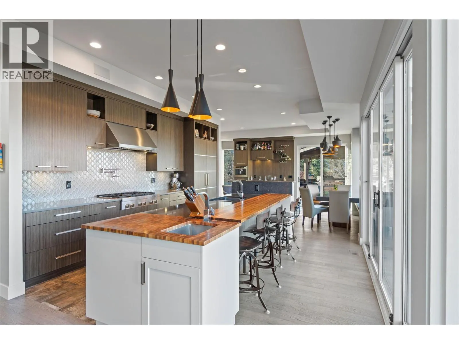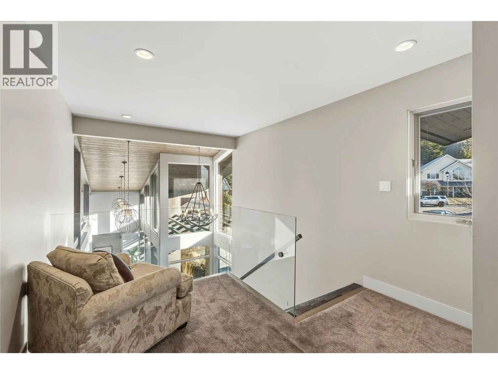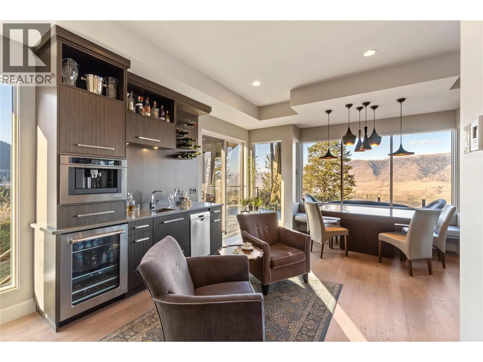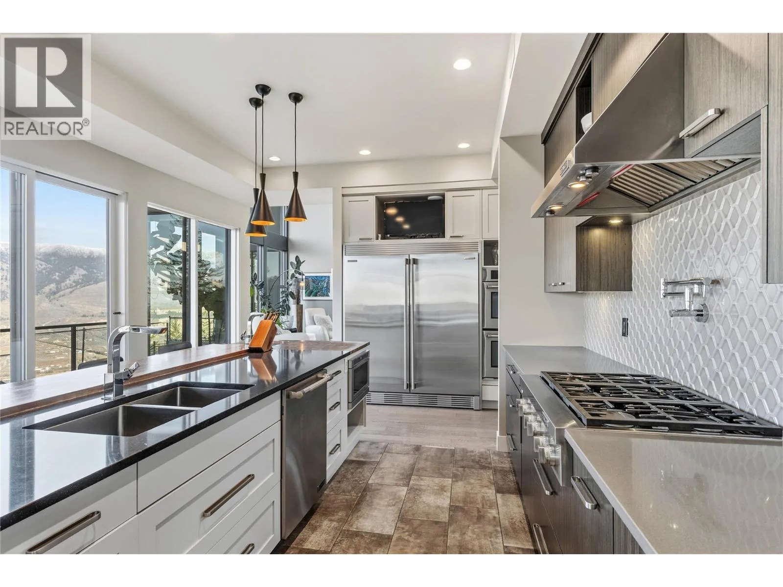 Welcome to this exclusive, Willms-designed home offering the rare balance of refined luxury, privacy and space for an active, growing familyâset against a breathtaking panoramic view of the entire river valley. The home welcomes you with soaring vaulted ceilings, a stunning feature gas fireplace, and dramatic window placement that frames the view at every turn. Natural light pours through the living spaces, creating a sense of calm and openness. At the heart of the home is a chefâs kitchenâfully equipped with stainless steel appliances, an expansive quartz island with feature wood breakfast bar, abundant custom cabinetry, and a dedicated coffee/wine stationâperfect for both everyday living and effortless entertaining. The main-floor primary bedroom is an oasis, with spa-inspired ensuite. Upstairs, the family enjoys three generous bedrooms and two full baths. Daylight basement is built for fun, offering two additional bedrooms, a large recreation room with in-floor heated floors, and opens to the yard and games court. Outdoors, the property truly shines. A fully fenced yard backing onto green space with local wildlife sighting along the natural animal corridor. The expansive deck features a gas BBQ kitchen, pergola and full under-deck storage. Enjoy a private games court for hockey, pickleball, and basketball, plus an in-ground trampoline. Additional features include: Central air, heat pump & hot water on demand, oversized garage with shop space and EV charger and RV parking. (id:27476)
