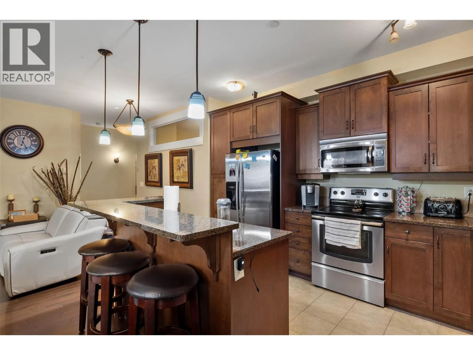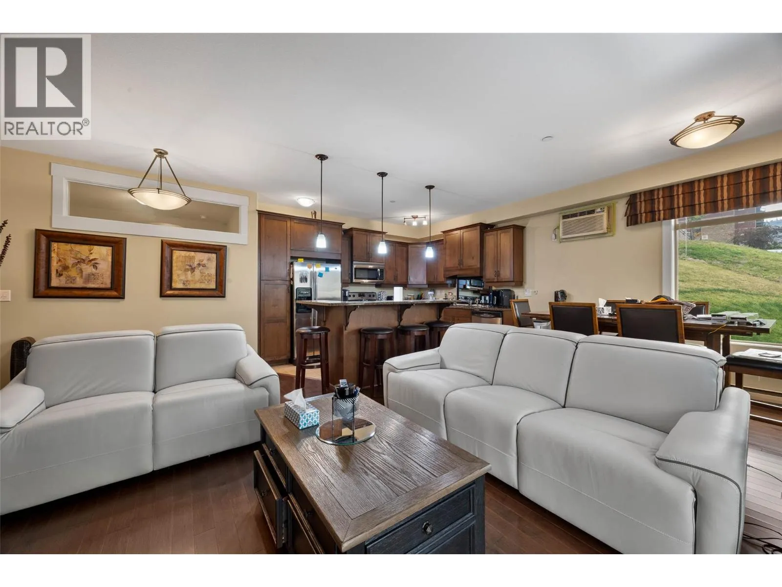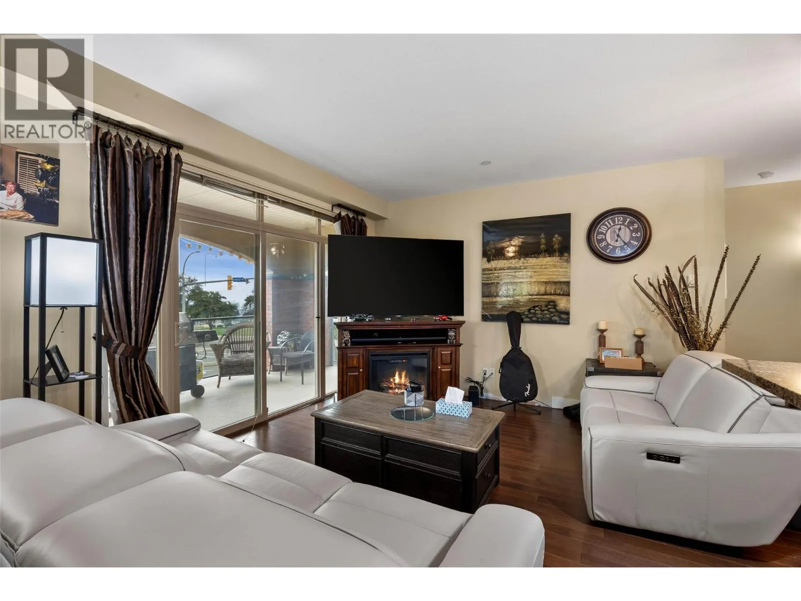 Located across from Thompson Rivers University, grocery stores, and one block away from the Tournament Capital Centre where you can enjoy a walk on the indoor or outdoor track, or a swim or hot tub after you come down from strolling along the nature trails of Kenna Cartwright Park only 1km away! If you value lifestyle and a beautiful corner unit condo, don't wait! Welcome to Landmark One, an upscale condominium with underground parking and the best location in Kamloops! This well-appointed unit offers a bright, contemporary layout with 9-foot ceilings that enhance the open feel of the space. The kitchen features granite countertops, modern cabinetry, and a full six-appliance package, seamlessly flowing into the living area highlighted by an electric fireplaceâperfect for both everyday comfort and entertaining. Enjoy year-round comfort with air conditioning, along with the added convenience of window blinds throughout. This well-managed building offers secure underground parking, with one designated parking stall and a storage locker included. Whether youâre a first-time buyer, investor, or looking to be close to the university and urban conveniences, this location and lifestyle are hard to beat. (id:27476)