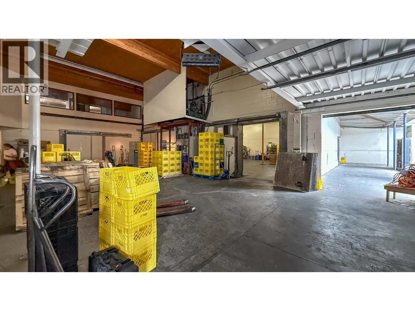 Versatile, in-line, industrial unit of approximately 5,440 SF. Main floor warehouse space has several rooms, some with cold storage capabilities. Warehouse features up to 16 ft ceilings and has three overhead doors servicing up to 5 loading docks at dock height and 2 washrooms. Upstairs office space includes an individual office, 2 larger open work areas and a storage room. Centrally located at the foot of the south end of Overlanders Bridge near Downtown Kamloops. Unit comes with 4 onsite parking stalls with more available in the dock area if required. Flexible C4 - Service Commercial zoning that allows a multitude of commercial uses. (id:27476)