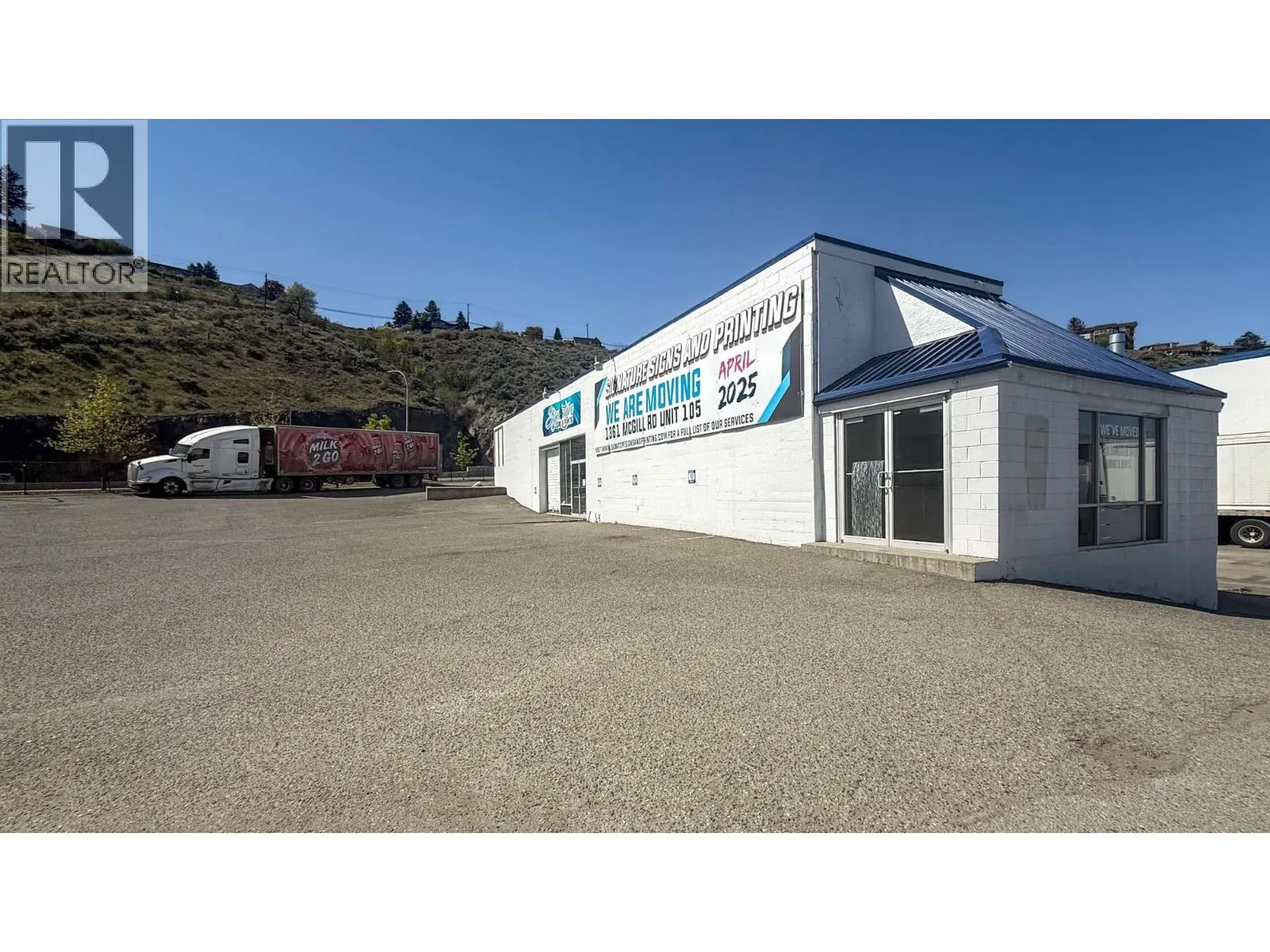 High-profile, commercial end-cap of approximately 1,942 SF available for lease at the foot of Overlanders Bridge in Kamloops. Single storey unit that is ideal for service commercial uses. Unit configuration includes a small entry showroom, reception area, office space and warehouse/shopspace. Main entrance to the unit is to the north with some frontage along Victoria St W. Grade level overhead door located near the middle of the unit beside a secondary entrance into the warehouse space. Large parking area adjacent to the unit with 7 dedicated parking stalls. Outstanding opportunity for highly visible fascia signage on the east side of the unit. Flexible C4 - Service Commercial zoning that allows a multitude of commercial uses. (id:27476)