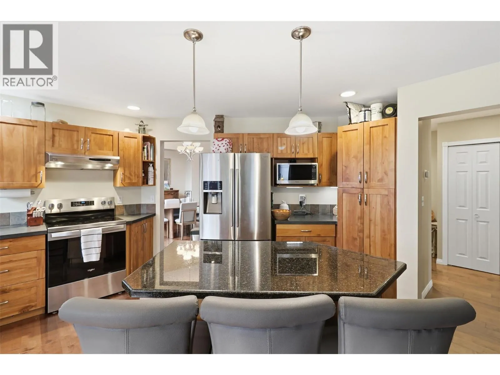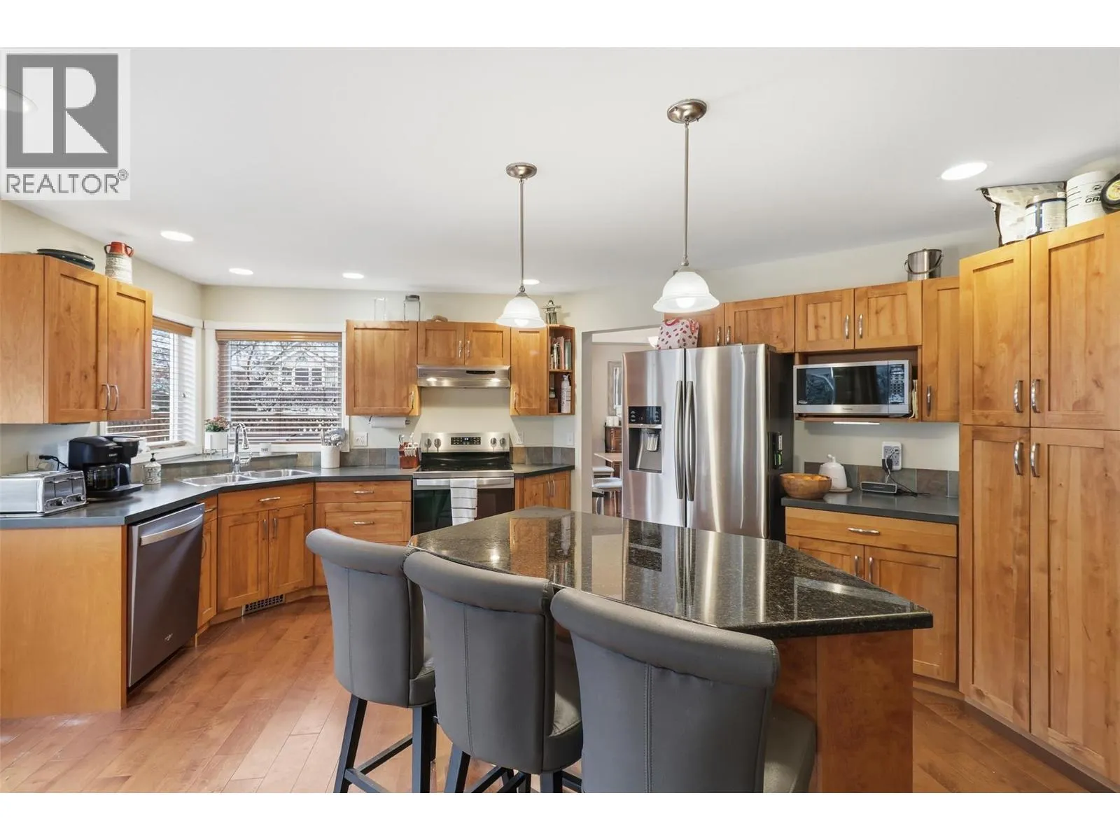 Welcome to this well-maintained and thoughtfully updated 3-level home in the desirable Aberdeen neighbourhood of Kamloops. Offering 5 bedrooms and 4 bathrooms, this home features a functional layout ideal for families or those seeking suite potential. The upper level includes the primary bedroom with a walk in closet and jetted jacuzzi tub, two additional bedrooms, and a main bathroom. The main floor offers a spacious living and dining room ideal for entertaining, with a gas fireplace in the living room, a second gas fireplace in the family room, a laundry room and a convenient 2 pc powder room. The lower level includes two more bedrooms, a full bathroom, and a separate entrance, making it suite-ready (no stove) and perfect for extended family or mortgage helper options. Recent upgrades include air conditioning (2023), hot water tank (2023), washer and dryer (2023), and upgraded stove and dishwasher (2025). Additional features include underground sprinklers, central vacuum, side gate with direct access to basement stairs, and excellent parking. A recently added front parking pad allows space for up to five vehicles. Infrastructure updates include a professionally repaired water main in 2021 with new water main piping installed in the basement bedroom closet. Close to schools, shopping, parks, and all Aberdeen amenities. (id:27476)