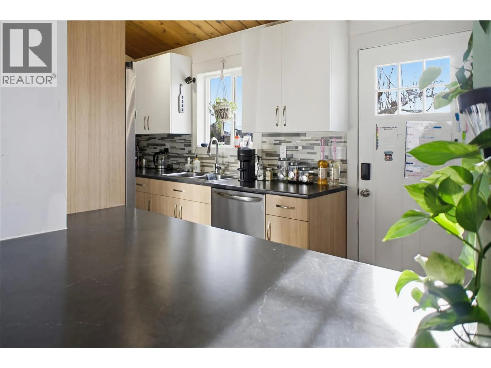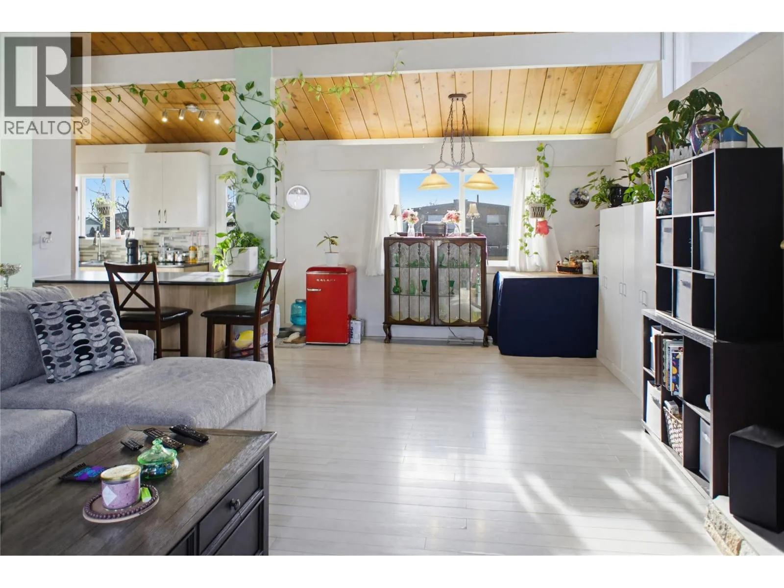 Located on the peaceful Kimberley Crescent in Kamloops, this beautifully updated 5 bedroom single family home is a blend of character and modern functionality. The property features a legal suite, making it an ideal choice for multi generational living or as an investment. As you step inside the main residence, you enter a bright and airy atmosphere highlighted by vaulted cedar ceilings that add warmth and architectural interest. The main floor offers a spacious living room that flows seamlessly toward the back of the home, where youâll find the dining area and kitchen. Thoughtfully designed with Excel Cabinets, the kitchen maximizes storage and workspace, featuring a large peninsula with island seating and deep drawers that are perfect for entertaining. The main level continues with three generous bedrooms, a clean 4-piece bathroom, and convenient stacking laundry. Through a separate second entry, youâll discover the 2 bedroom legal suite, which is currently vacant and move in ready. The suite includes its own dedicated laundry room and a functional layout, currently vacant - pick your new tenants or bring your family members. Peace of mind comes standard here, as the major mechanical updates are already complete: a newer furnace, central A/C (2024), a hot water tank from 2019, 200-amp electrical service, and updated exterior siding and windows. Outdoor living is a highlight of this property, featuring a fully fenced backyard and a spacious upper deck for summer BBQs. The lower deck was custom-built to surround a hot tub (electrical wiring in place) and leads to a private, level lawn. Gardeners will appreciate the separate fenced garden area, while the lane access and dual entry to the yard provide added convenience. (id:27476)