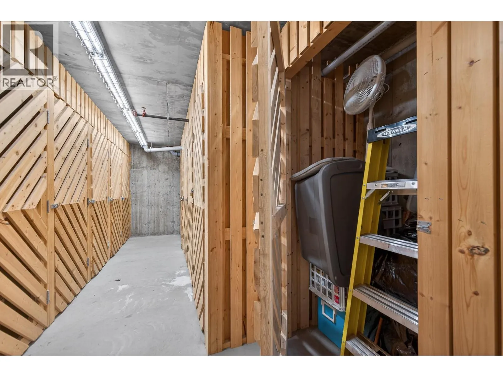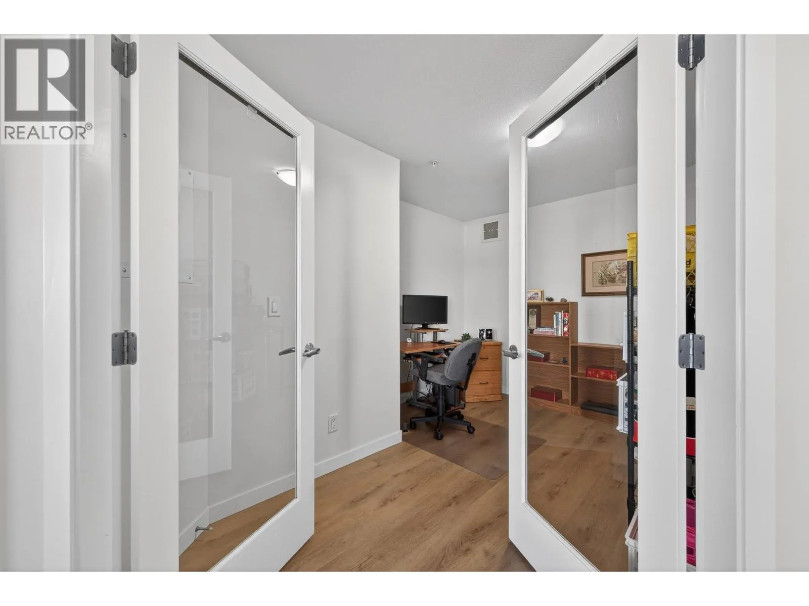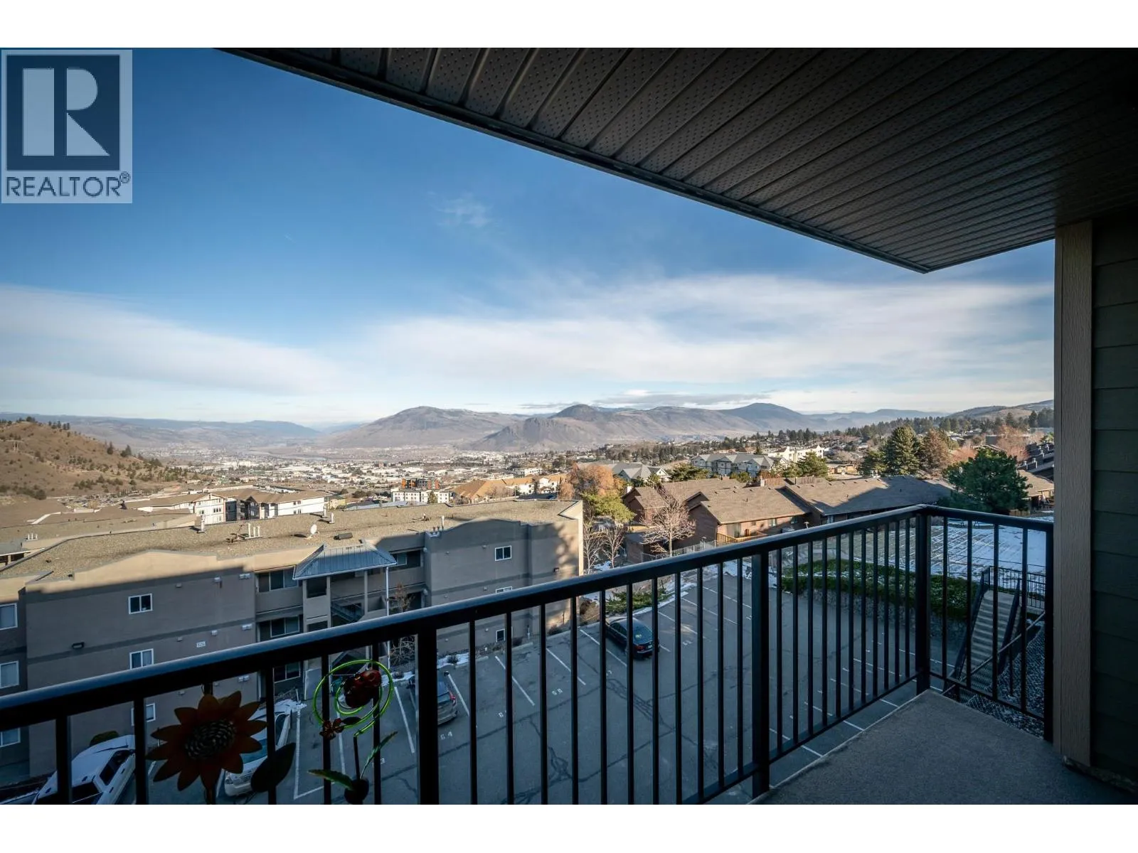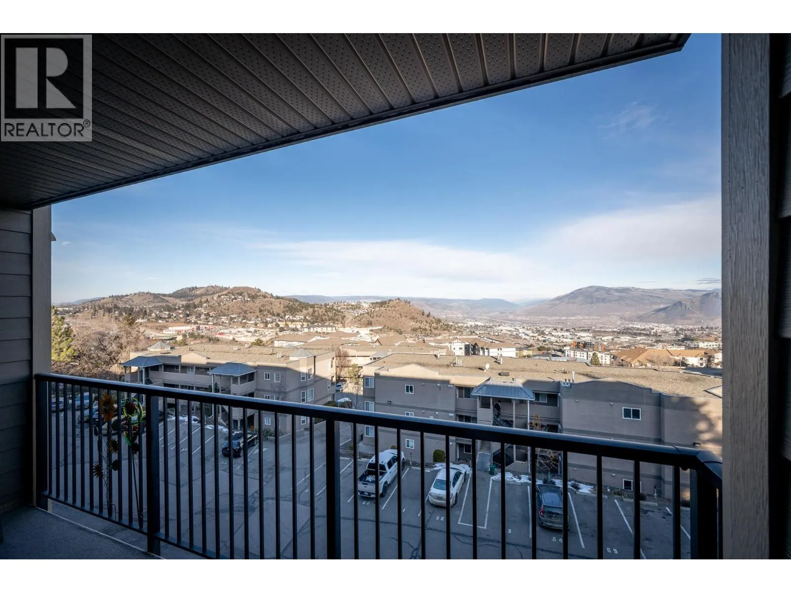 Spotless 2 bedroom condo with a stunning river, city and valley view and level entry access. This unit is located on the 3rd floor of the building with easy access from the main entrance. Perfect for those with a dog! When you walk in this home you will see there is nice laminate flooring running throughout. The open floor plan features a large kitchen with granite counters and stainless steel appliances. The living and dining room spaces flow seamlessly through to the large north facing deck space. The primary bedroom has a walk through closet with laundry area that leads to the 4 piece main bathroom. The second bedroom is off of the living room. It is technically a den, it does not have a closet or window but is large enough for a guest room or home office. Other features of this unit are newly updated vinyl plank flooring in the 2nd bedroom and new carpet in the primary bedroom, updated paint, good sized closets for storage, one underground parking stall and one storage locker. The building itself includes a common entry, small gym for the residents and lots of guest parking. Day before notice for showings. (id:27476)