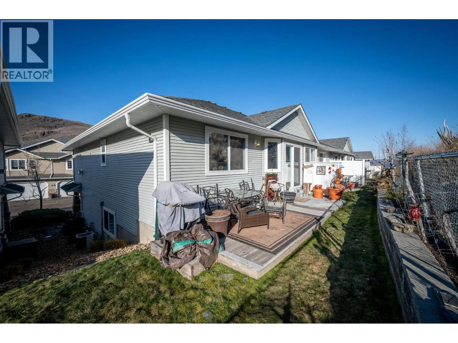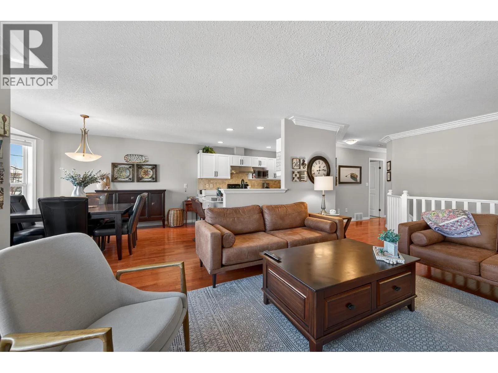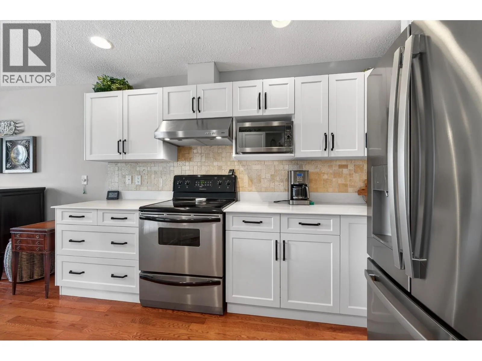Easily one of the best units in the complex. Beautifully designed home featuring three bedrooms plus den and three bathrooms, complete with a single-car garage and central vacuum. The spacious primary bedroom includes an updated ensuite with a new walk-in shower. Enjoy a brand-new kitchen (March 2023) with newer appliances. The second upstairs bedroom includes a Murphy bed and sliders to the back patio, and the home offers a large, welcoming entry along with updated bathrooms throughout. Mechanical updates include a hot water tank (2018) and furnace (2021). Outdoor living shines with a large patio with extended deck, and gorgeous hillside landscaping. Additional features include hardwood floors on the main level, a Ring doorbell, and a water filtration system. All measurements approximate. Please call today for more information or to view. (id:27476)
