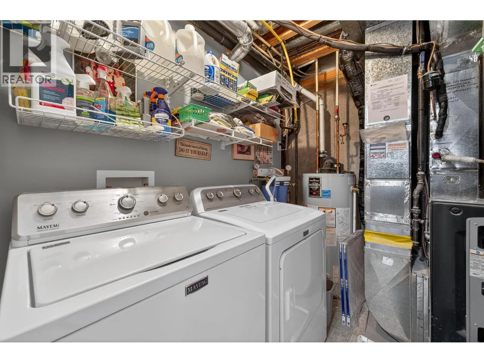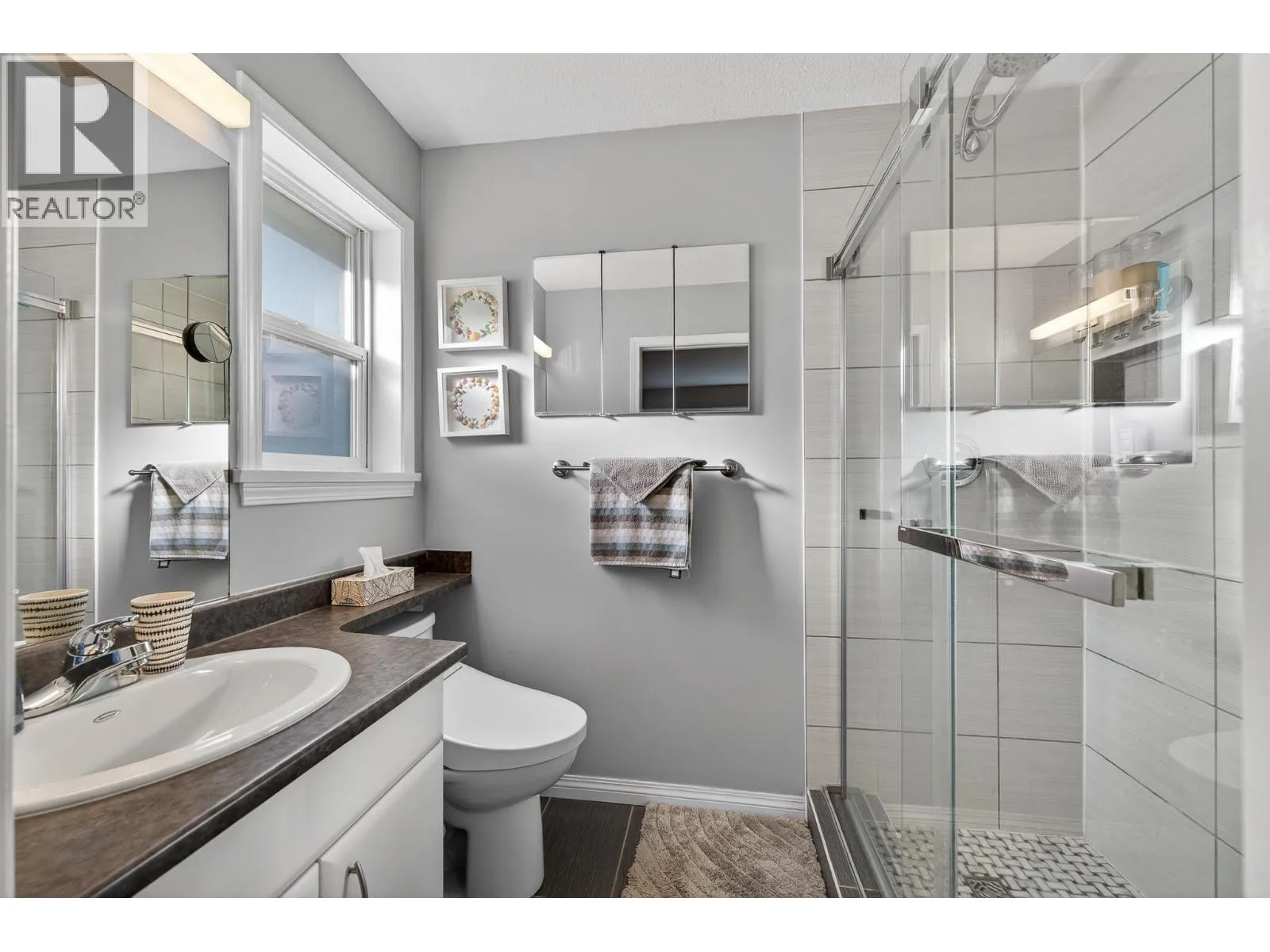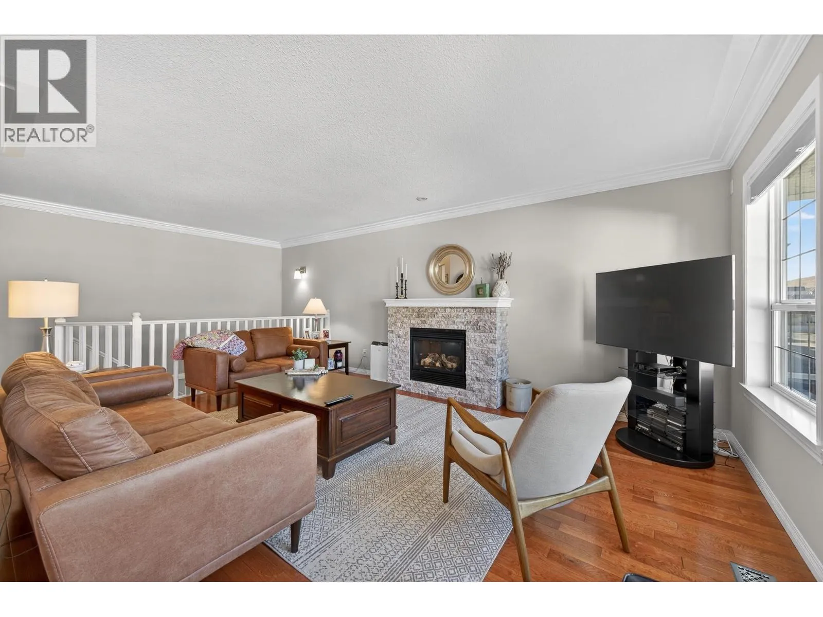 Easily one of the best units in the complex. Beautifully designed home featuring three bedrooms plus den and three bathrooms, complete with a single-car garage and central vacuum. The spacious primary bedroom includes an updated ensuite with a new walk-in shower. Enjoy a brand-new kitchen (March 2023) with newer appliances. The second upstairs bedroom includes a Murphy bed and sliders to the back patio, and the home offers a large, welcoming entry along with updated bathrooms throughout. Mechanical updates include a hot water tank (2018) and furnace (2021). Outdoor living shines with a large patio with extended deck, and gorgeous hillside landscaping. Additional features include hardwood floors on the main level, a Ring doorbell, and a water filtration system. All measurements approximate. Please call today for more information or to view. (id:27476)