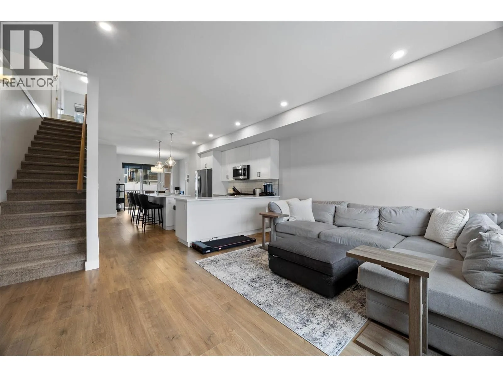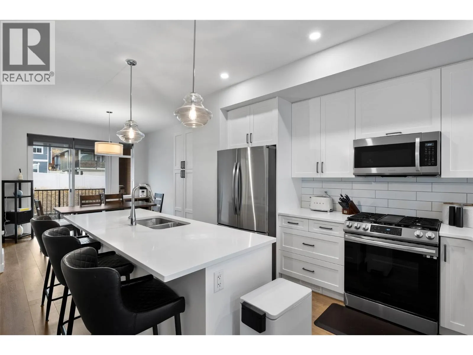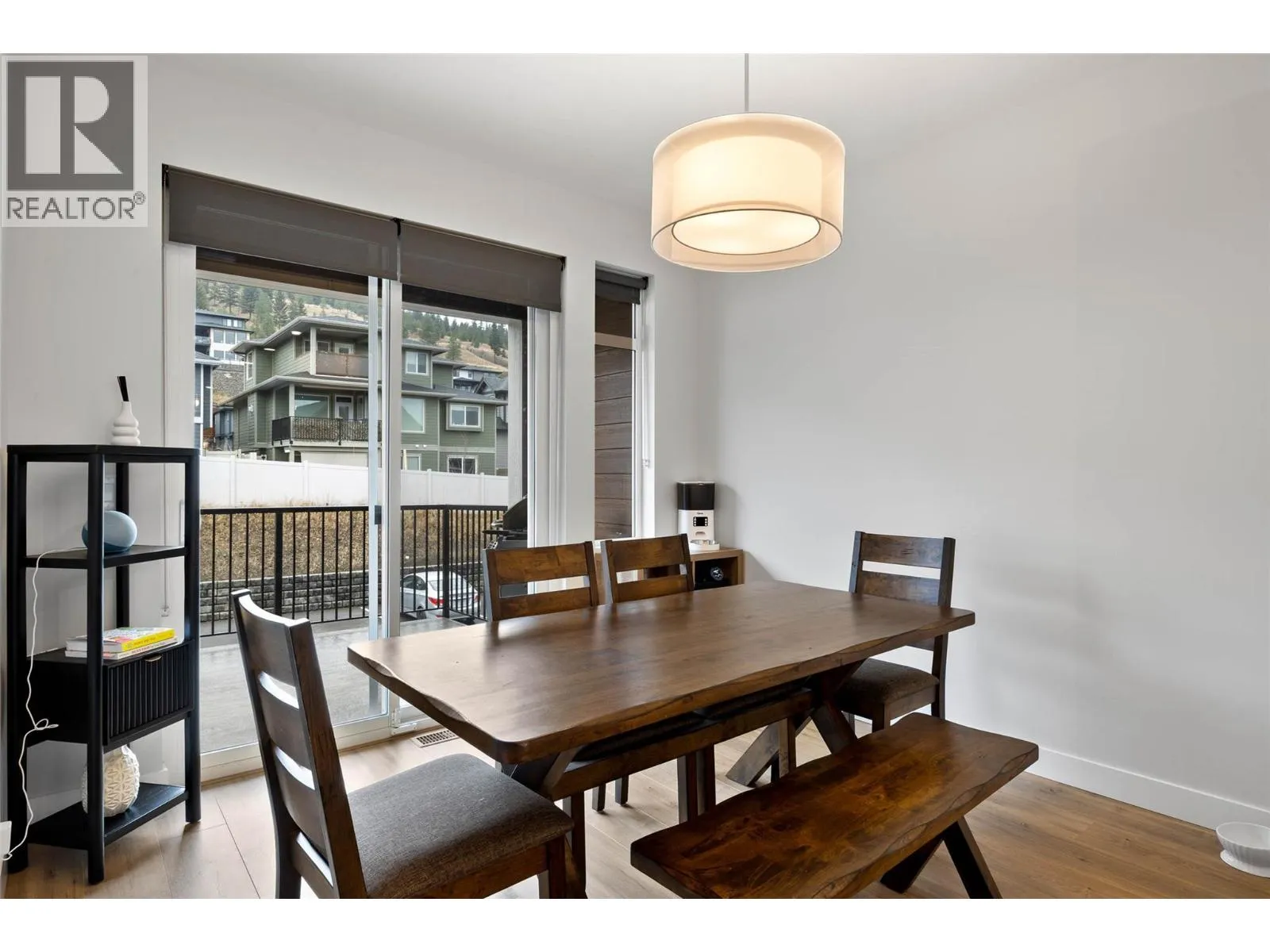 Welcome to The Ridge in Juniper Ridge, one of Kamloopsâ most desirable communities. Built in 2023, this modern 4 bedroom, 4 bathroom townhouse offers an exceptional blend of style, space, and low-maintenance living. Thoughtfully designed across multiple levels, the home features an open-concept main floor with a bright and welcoming living area, contemporary finishes, and a sleek kitchen ideal for both everyday living and entertaining. Large windows fill the space with natural light, while outdoor living is enhanced with a private balcony and a front patioâperfect for morning coffee or relaxing evenings. Upstairs, youâll find 3 bedrooms, including a spacious primary suite with a private ensuite & walk in closet, while additional bathrooms provide excellent convenience for family and guests. The lower level adds flexibility with an extra bedroom and bathroom, ideal for a home office, guests, or a growing family. A single garage offers secure parking and extra storage. Ideally located across the street from the neighbourhood park, steps to the dog park, hiking & bike trails, this home is perfectly situated for families and outdoor enthusiasts alike. Enjoy modern living in a welcoming, community-oriented neighbourhood just minutes from downtown Kamloops and amenities. (id:27476)