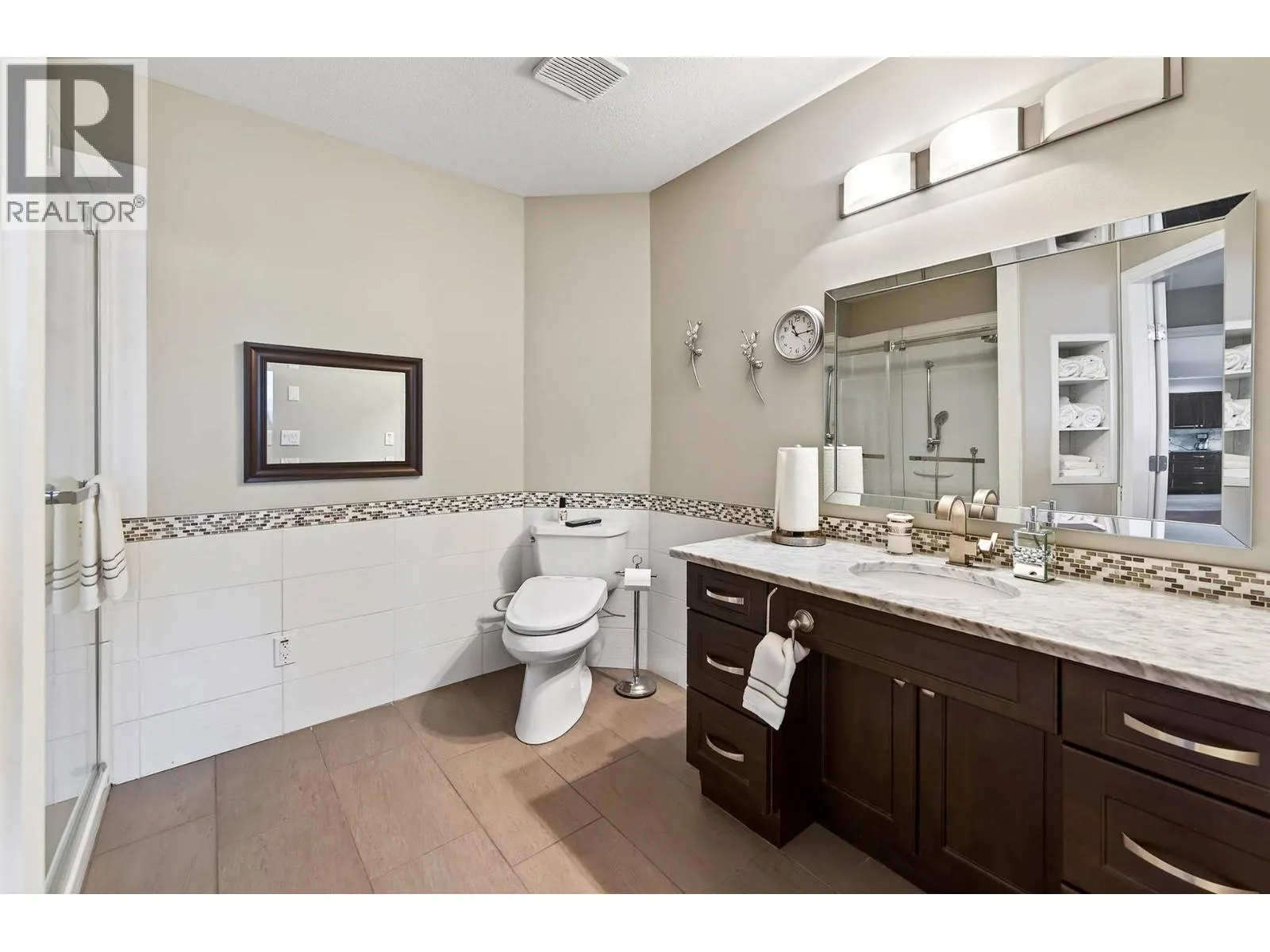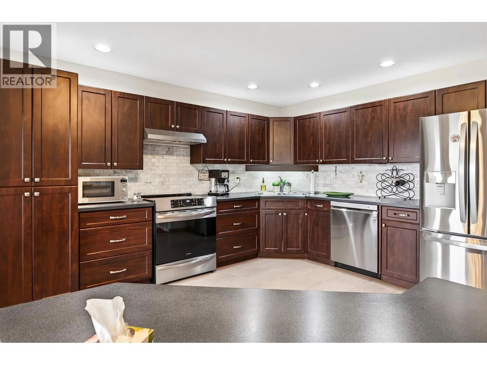 A desirable level entry townhouse with full walk out basement and an unobstructed view of the valley and mountains. One of the the best locations within the complex and also an end unit. The main floor features an oversized primary bedroom with ensuite and walk-in closet, main floor bathroom and a spacious 2nd bedroom/den. The combination living room and dining room area offers a desireable view out the picture windows and in general the townhouse capturess lots of sunshine. There is a gourmet kitchen with newer stainless steel appliances that leads to a covered deck thru french doors that offers a n/g BBQ connection. The main floor laundry area is conveniently located and offers front loading washer/dryer combo. Downstairs offers another huge bedroom, full bathroom and an oversize rec-room /office/tv area as well as a small workshop room and several other storage rooms. Additionally there is a Bonus room which would be a perfect Theater or Games room. This Home is wheelchair friendly with a stair lift from main to lower level. Central A/C, central vacuum and a 2 car garage and no more yard work. (id:27476)