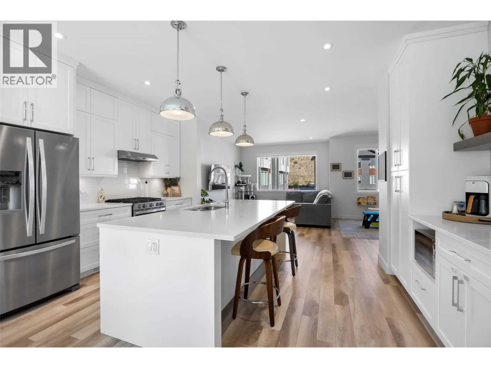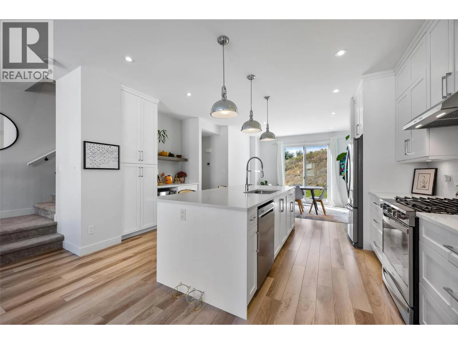 Welcome to this beautifully finished end-unit townhouse in the sought-after River Gate development at Sun Rivers. Sitting below the 6th hole, this home offers 1935 sq ft of living space across three levels and combines style and function in a prime location. The ground level entry offers a single-car garage and a large entry way. A bonus flex room currently used as workout room and 4-piece bathroom add extra convenience for guests or family. Under-stair storage and shelving in the garage make organization a breeze. On the main floor you will find an inviting open-concept space featuring a large bright kitchen with quartz countertops, a central island, gas range and a built-in coffee barâperfect for morning routines or entertaining. Sliding glass doors lead to a private patio with fantastic views of the valley. Additionally, you have a natural gas BBQ hook-up and added greenspace thanks to the end-unit location. A 2-piece powder room rounds out the floor. Upstairs are three generous bedrooms including a spacious primary retreat on the view side, complete with a walk-in closet and luxurious 3-piece ensuite featuring a double vanity. A well-designed laundry area with built-in shelving is also located on the top level with another 4-piece main bathroom. Enjoy year-round comfort with geothermal heating and cooling, 200AMP service, and the peace of mind of a newer home with no GST. Just a short walk to local shopping, dining, and golf, this home offers both lifestyle and convenience. Book your showing today to join this great community! (id:27476)
