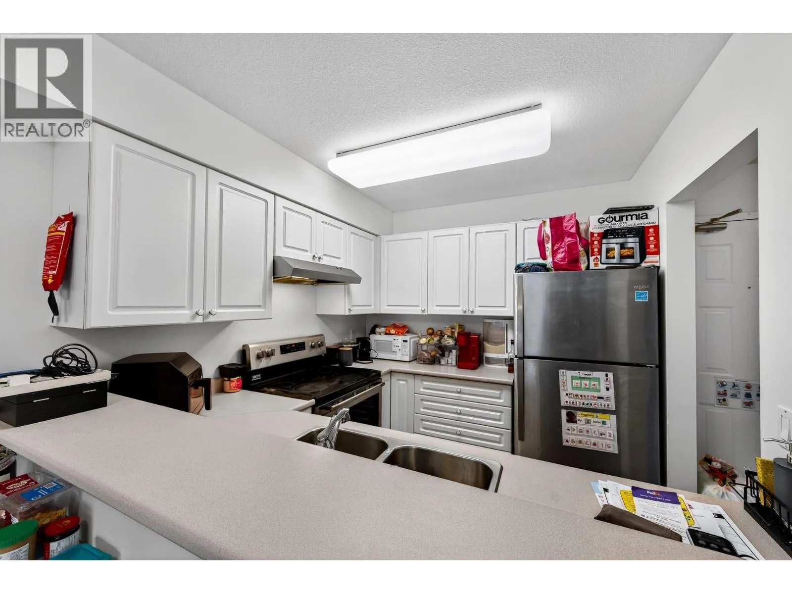 Nicely updated, spacious 1 bedroom condo that is centrally located, close to transportation, shopping and city amenities. This unit has seen upgrades to vinyl plank flooring throughout the unit. The open floor plan allows for seamless integration from the kitchen through to the living and dining room spaces. The kitchen features a good amount of storage and the stainless steel appliances have been updated. The living room walks out to a covered deck which has river and valley views. This unit is facing the east, getting great morning and mid day light! The bedroom is very large and has room for a good amount of furniture. There is a walk through closet to the 4 piece bathroom. The bathroom also has access from the hallway. Off of the hallway you will find laundry and additional storage. The building itself features a secure entry, elevator and a good amount of parking on site. Showings only Tuesdays, Wednesdays 12pm to 4pm and Saturdays 1pm to 5pm with 24 hours notice. 1 assigned parking stall plus visitor parking. Pets allowed, no taller that 15â at the shoulder. (id:27476)