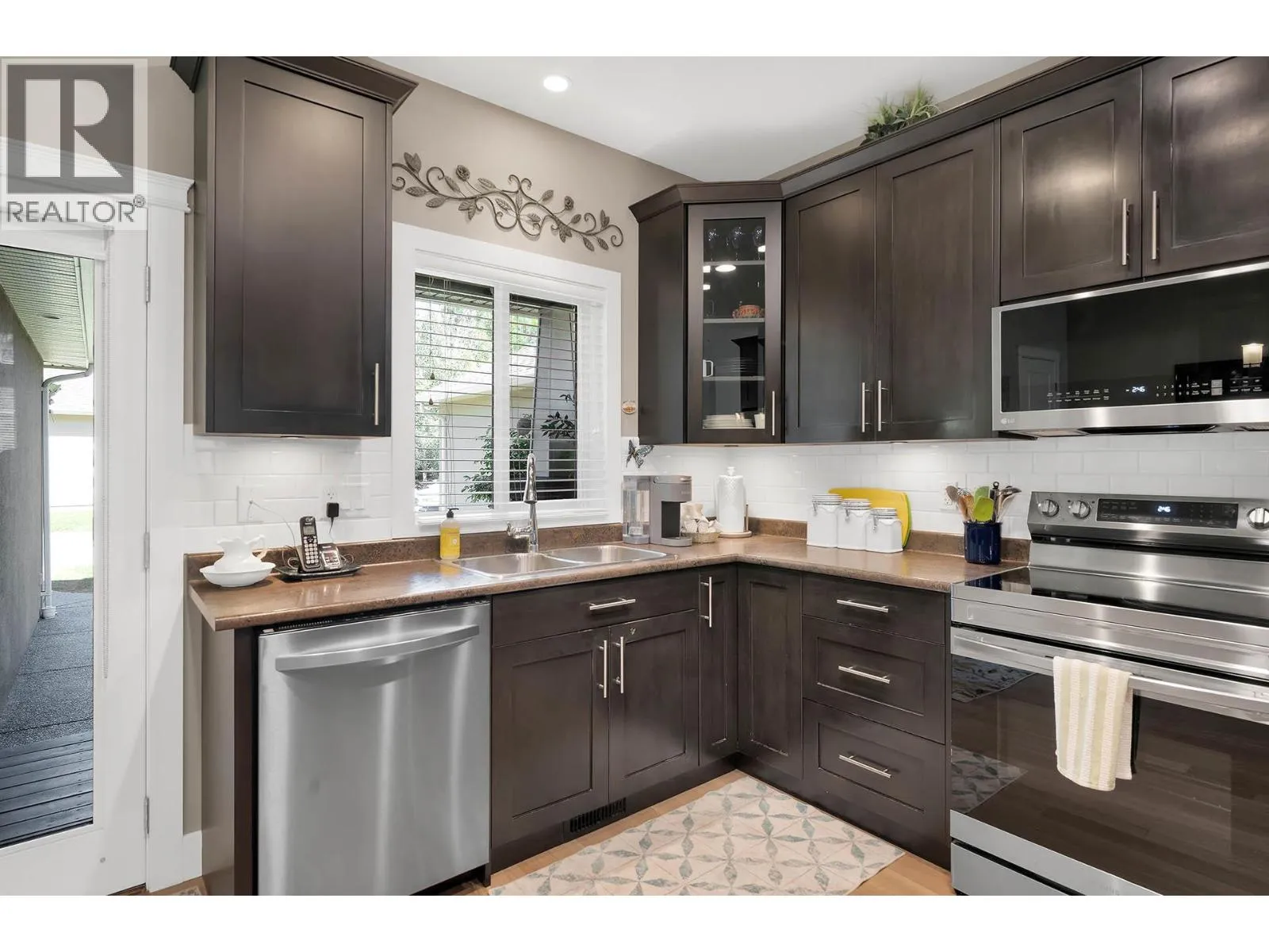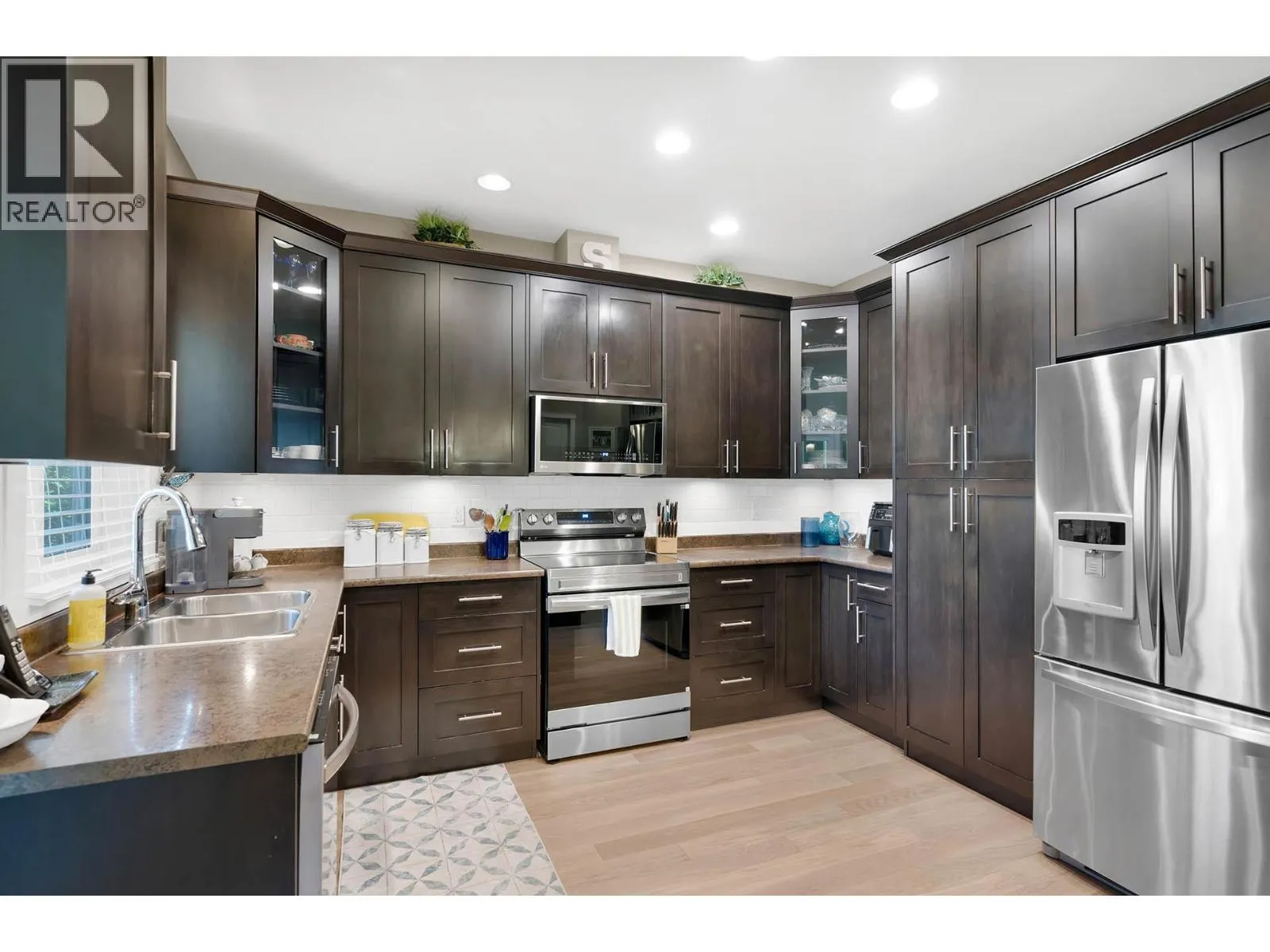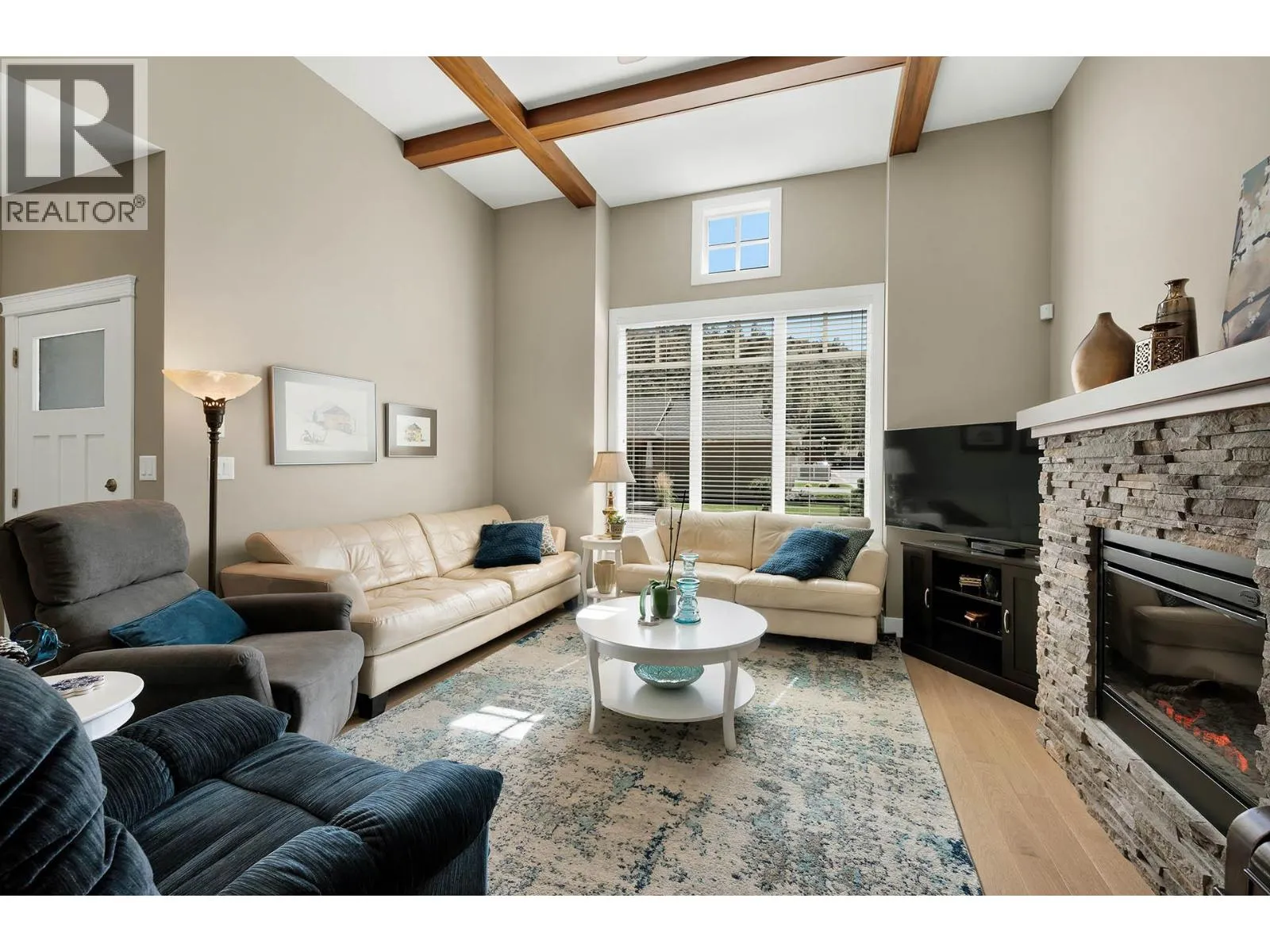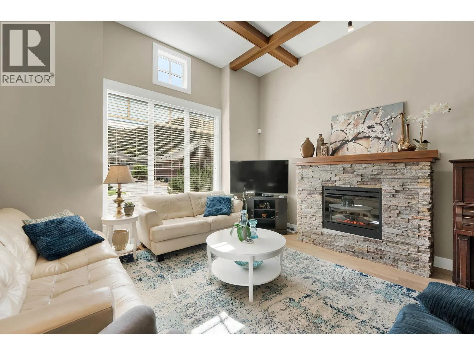 Welcome to Braeburn! This extremely well taken care of rancher with full basement is waiting for you! As you walk in the front door you are greeted by vaulted coffered ceilings with wooden faux beams, cozy stone gas fireplace, large dining room, and open concept kitchen featuring stainless steel appliances, large island, and access to rear deck. Primary bedroom features updated 4 piece ensuite, expansive walk in closet, and ample room for a king sized bed. Large 2nd bedroom on main. Fully finished basement could add additional 2 bedrooms if needed. 2 large rec/family rooms, flex space for office, 2 piece bath, and tons of storage. Double garage. Bareland strata fees include yard maintenance. This is the perfect blend for a couple, family, or retiree. Enoy the community of Orchards Walk in this ever popular subdivision. Walking distance to Tim Hortons, Taco Time Liquor Store, and Pharmacy. Quick possession possible. Call now for details and showings! (id:27476)