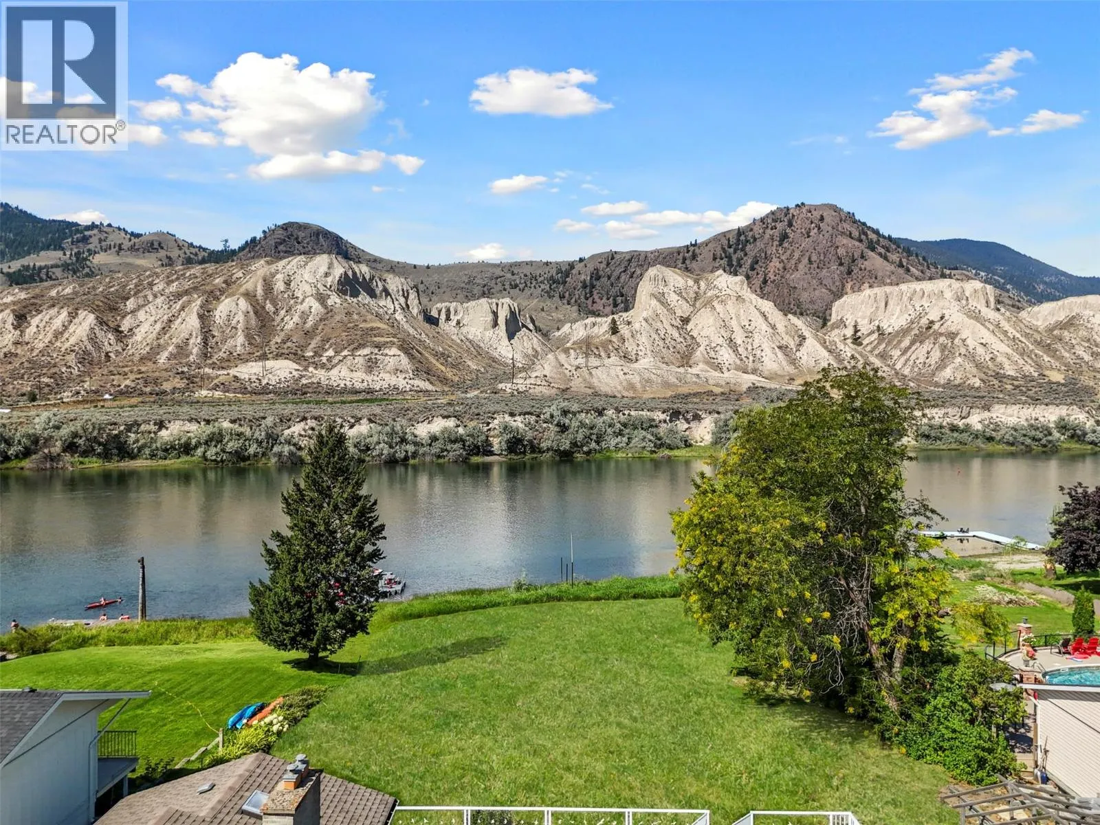 Stunning 3/4 acre South Thompson riverfront property with a spacious home, huge oversized 3-car garage, and subdivision potential. The private driveway is lined with grassy space, fruit trees, and room for developmentânew build, carriage house? (See City of Kamloops). Inside, a large foyer welcomes you, with an office perfect for a home-based business. Upstairs, the main living space offers breathtaking unobstructed river and mountain views from the living and dining rooms. Hardwood and tile flow through the open plan. Step onto the massive deck leading to the expansive grassy yardâideal for a pool or landscaping. A secondary deck is off the dining room. The large kitchen boasts a huge island and ample cabinetry. The main floor also includes a 4-piece bath, den (possible 3rd bedroom), and two large bedrooms with ensuites. The primary bedroom features stunning river views. Downstairs offers great potential with a summer kitchen off the foyer, a family room, bedroom, and 2-piece bath. French doors open to unfinished space, ideal for a 2-bedroom suite with separate entry, roughed-in plumbing, and framed bedrooms. The massive heated shop is a mechanicâs dreamâthree large bays, with the third long enough for an RV/boat. Shop measures 32â8 x 64â9 plus an additional 17â9 x 27â2 storage/garage, offering space for 4+ vehicles. So much potentialâbring your ideas! (id:27476)