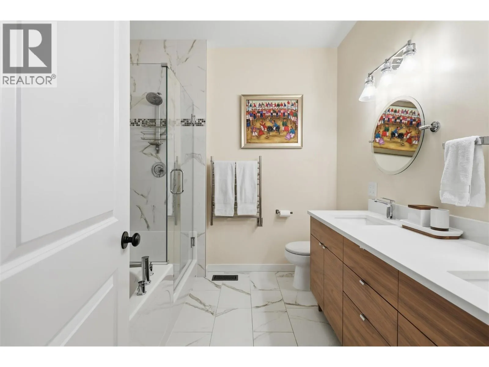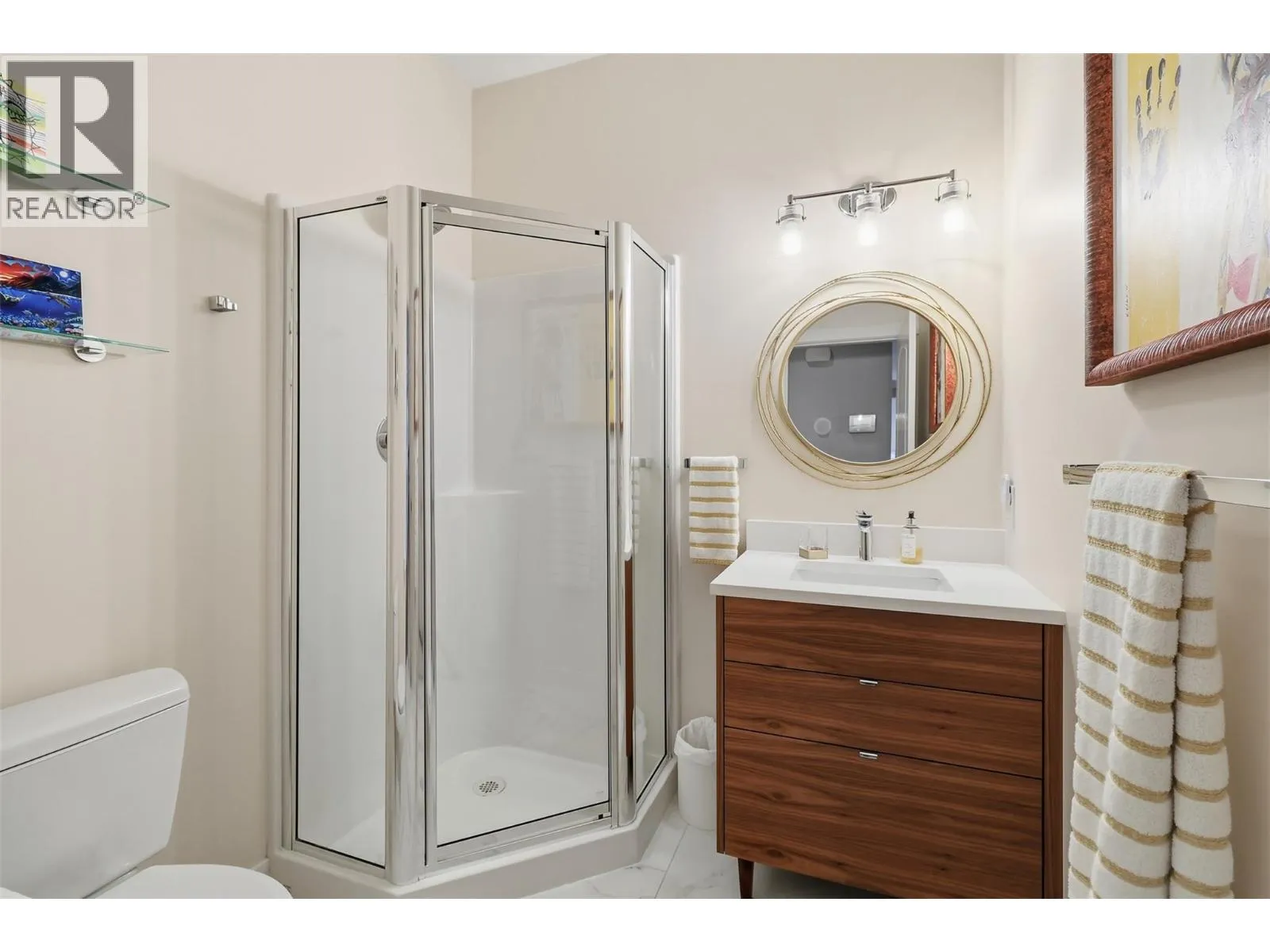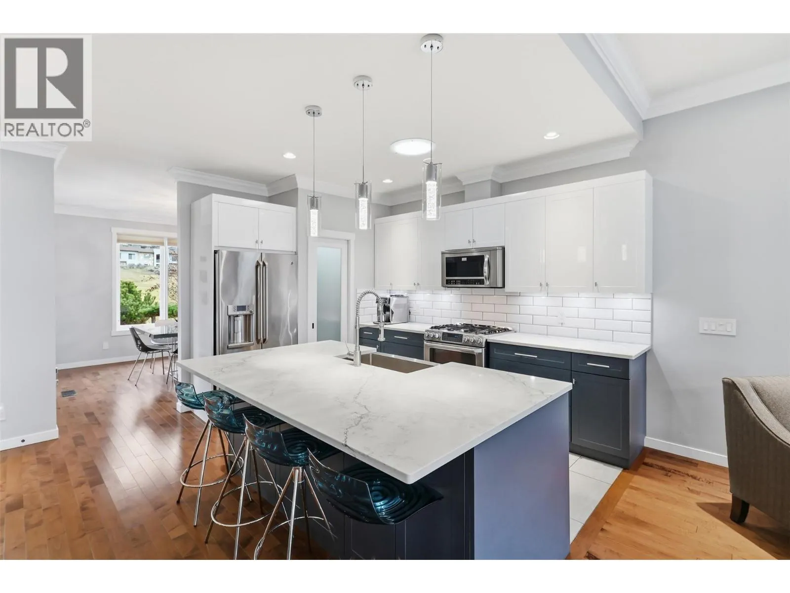 Experience Golf Ridge in Sun Rivers. The moment you enter into this development you can feel the difference of upgraded craftsmanship. A west coast appeal, bursting with mature landscaping. Walk through the front door and be greeted with heated tile flooring and a spacious entry way with an abundance of light. Separate 1+1 garages on either side with space for your golf cart or extra shelving. Downstairs has a spare bedroom with custom cabinets as well as a large media room and full bathroom. Upstairs, you will find tasteful 2-tone kitchen cabinets with quartz countertops, gas range with double oven, tile backsplash, island with extra storage and a large pantry. Enjoy the spacious living room with an electric fireplace and an outside deck, perfect for those summer evenings. There is a separate dining area that could also be used as a den or close it off for an additional 4th bedroom. The covered patio at the rear includes a gas barbecue hook up for a secondary entertaining space. Down the hallway, you will find a spacious bedroom with excellent shelving in the closet and a great view of the golf course, and the third main bathroom with heated floors. The primary bedroom has a luxury style 5pc ensuite with heated floors and a walk-in closet. Extra perks includes Custom Hunter Douglas Blinds and Ecobee thermostat with geothermal heating and coolingCommunity clubhouse and pool for residents. All meas are approx, buyer to confirm if important. (id:27476)