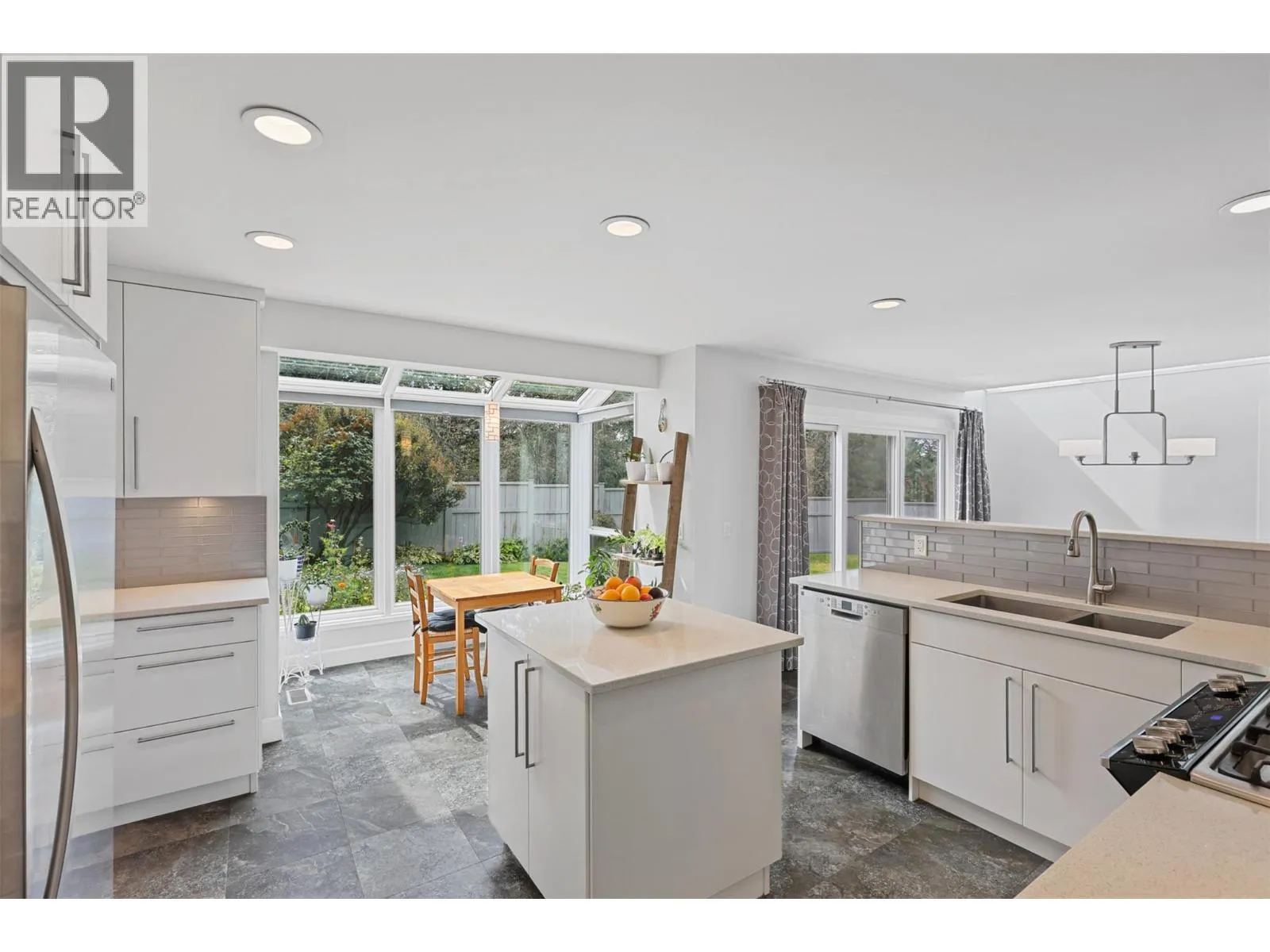 Extensively renovated Upper Sahali home in a highly sought after cul-de-sac location with in-law suite potential. Walk through the main entry of this home and you will find a grand entry which is as high as the second level. Off of the main entry there is a large formal living room with vaulted ceiling, updated fireplace, flooring and paint. The kitchen was fully gutted and renovated with white custom cabinetry and stone counters. There is a cute nook overlooking the flat private yard. Off of the kitchen there is a family room with yard access and an office space. The top floor includes 3 good sized bedrooms. The primary suite has vaulted ceilings, walk-in closet and a 3-piece ensuite. The two additional bedrooms on the top floor are great for the kids or guests as they have their bathroom across the hall. The basement level has lots to offer with a huge storage space which could become an additional bedroom or workshop. There is a nice size family room with fireplace, additional bedroom, 3-piece bathroom and a separate entry to a storage/gym/mudroom space which would be perfect for a kitchen if an in-law suite is desired. The yard is fully fenced and offers tons of privacy with lots of room for the entire family. Full list of upgrades included in documents. (id:27476)
