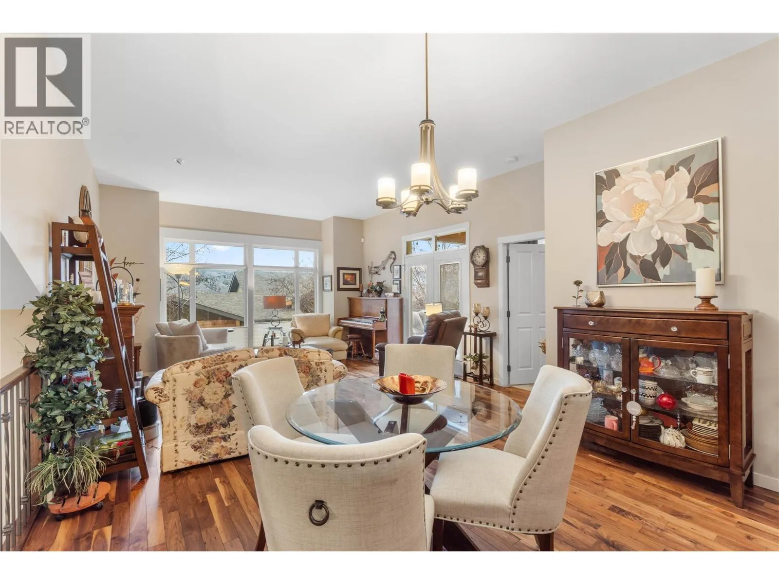 Luxury, Leisure & Effortless Living on the Golf Course. This end unit is designed for discerning buyers seeking comfort and quality, this beautiful upscale home offers refined living in a coveted golf course setting. The hardwood main floor welcomes you with a warm living room featuring an electric fireplace and access to a covered south-facing deck â perfect for morning coffee or evening wine. The open-concept kitchen is an entertainerâs dream, highlighted by an impressive 10-foot granite island, granite counters, stainless steel appliances, and generous pantry space. It flows seamlessly into an elegant dining area ideal for hosting family and friends. The primary suite is a private retreat, complete with a deluxe 5-piece ensuite featuring heated tile floors and a spacious walk-in closet. A second main-floor bedroom works beautifully as a guest room or executive home office. The adjoining family room opens to a secluded patio and yard with your own grassy area to enjoy. Convenience abounds with main-floor laundry and a 3-piece guest bath. Downstairs, enjoy new carpet and fresh paint, a third bedroom, 3-piece bath, and a pool-table-sized family room ready for recreation or entertaining. The spacious double garage includes a dedicated golf cart bay & new C/Vacuum. A new geothermal furnace (2024) ensures energy-efficient comfort year-round. Low-maintenance luxury, exceptional updates, and a premier golf course location â this is executive living at its finest. (id:27476)