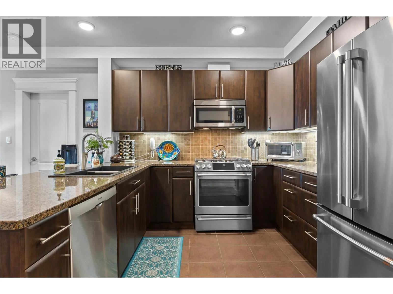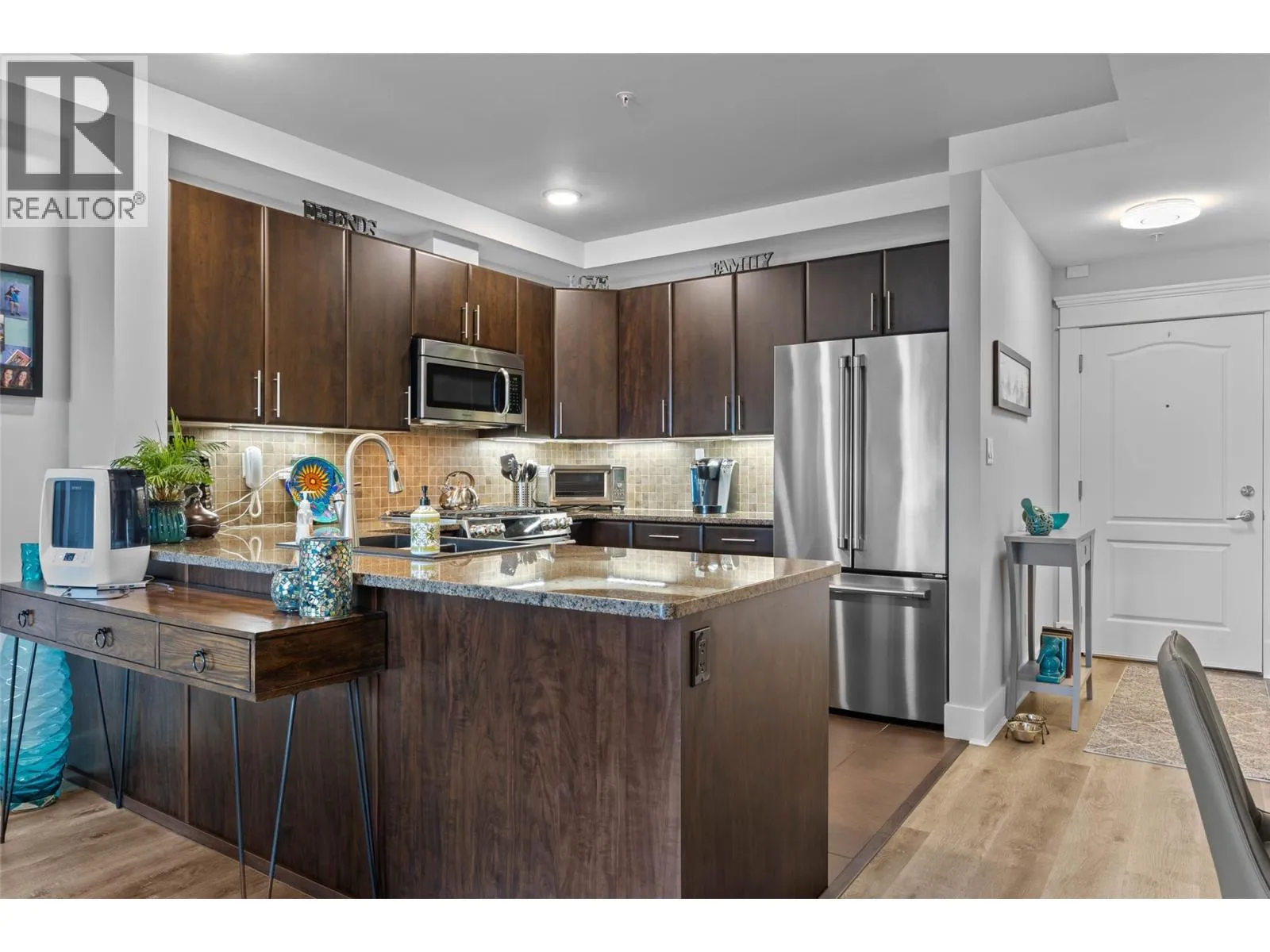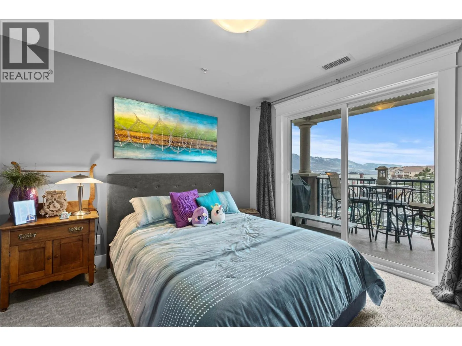 Welcome to Mission Hill, where central convenience meets elevated living. This beautifully updated 2 bedroom, 2 bath apartment offers sweeping views and an open concept layout designed for both everyday comfort and easy entertaining. Thoughtfully upgraded throughout, you will love the updated flooring, modern lighting, fresh paint, under cabinet lighting, granite countertops, new sink, and updated appliances, along with many additional touches that truly set this home apart. The spacious primary bedroom features a walk through closet leading to a luxurious 5 piece ensuite, plus direct access to its own private sundeck, the perfect spot for your morning coffee. The second bedroom also includes a walk through closet, convenient access to the 5 piece main bath, and access to the main sundeck, offering excellent flow and flexibility for guests, family, or a home office. Step outside to take in spectacular views from the living room sundeck, complete with a gas BBQ hookup for effortless outdoor dining. Additional highlights include in unit laundry, a storage locker, secure underground parking with one dedicated stall, and pets permitted with restrictions. An exceptional opportunity to own a move in ready home in a sought after complex. Donât miss it. (id:27476)