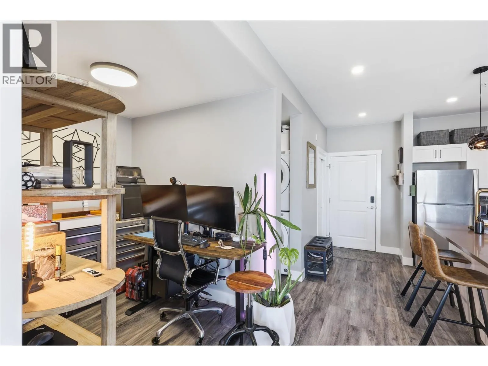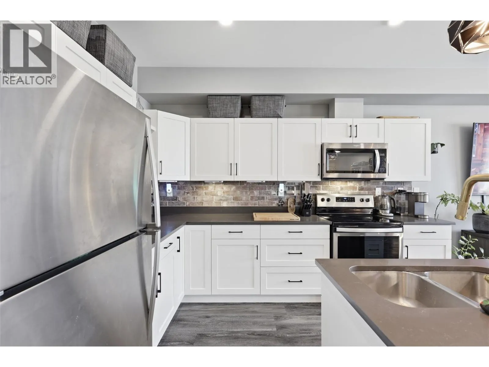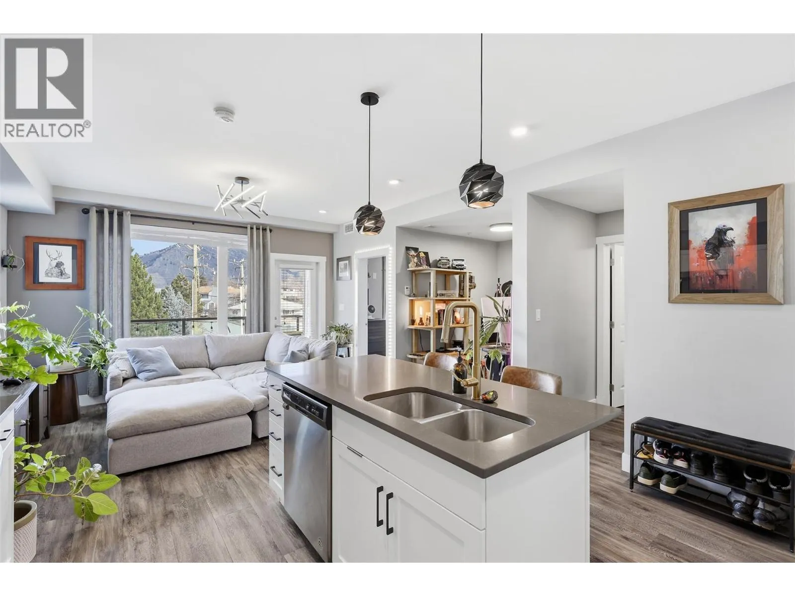 If you love walkable living but still value peace and quiet, this rear corner 1 bedroom plus den at The Station is perfectly positioned facing the quieter side of the building with open views of Mount Paul. Set above a local brewery and surrounded by great shops and restaurants, the location gives you energy when you want it and calm when you donât. Inside, the open layout is finished with quartz countertops, a brick backsplash, and good size island. East-facing windows bring in beautiful morning light, and the covered deck is the perfect spot to take in the mountain view with your morning coffee. Youâll also enjoy in-unit laundry, a full 4-piece bath, and secure underground parking. The den adds flexibility for a home office. (id:27476)
