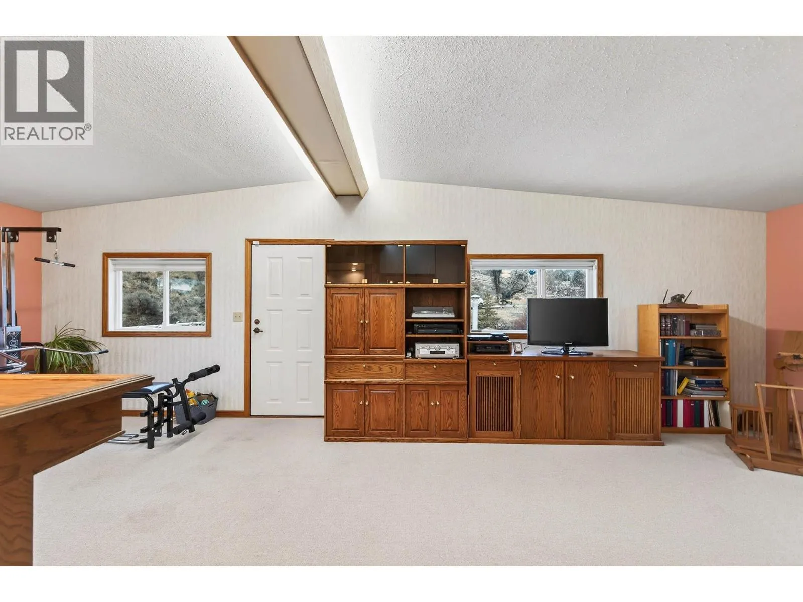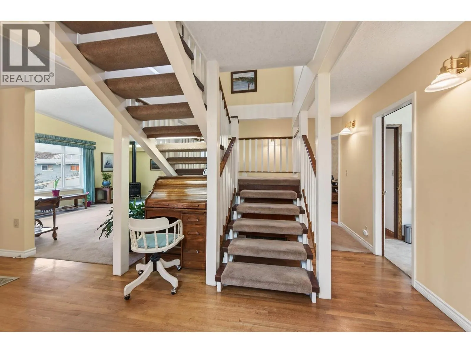 Meticulously maintained 4-bedroom, 2-bathroom home situated on a quiet, picturesque street in desirable Sahali, just steps to shopping, schools, and public transit. This inviting rancher with upper-level living offers a bright and functional floor plan ideal for families of all ages. The upper level features three bedrooms, a 3-piece bathroom, and a spacious recreation room complete with a wet bar and walkout access to a large private deck â perfect for entertaining or relaxing. The main level showcases open-concept living with a dedicated dining area and a well-appointed kitchen designed for everyday comfort. The primary bedroom includes a walk-in closet and convenient cheater ensuite. Exceptional storage throughout, including a basement with cold room, 4-foot crawl space, and multiple utility, craft, and storage rooms off the garage. Enjoy a truly special outdoor setting with tranquil Scotney Brook (Springhill Creek) frontage, beautiful flower gardens, and a serene bird sanctuary that creates a peaceful backyard retreat. Ample additional parking and a double garage complete this outstanding property. Hot water tank replaced in 2023. Buyer to verify all measurements. An excellent opportunity to own a well-cared-for home in one of Sahaliâs most convenient and established neighbourhoods. (id:27476)