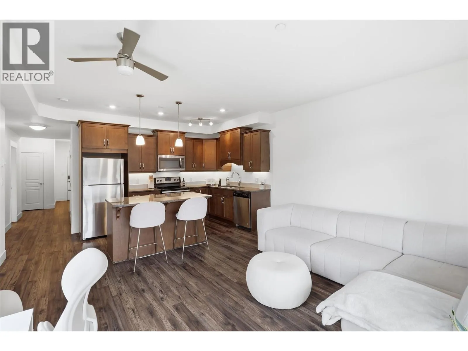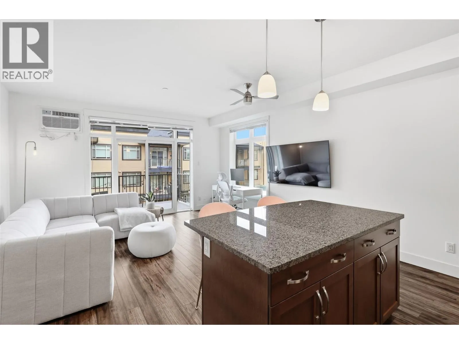 Welcome to Landmark Place â where lifestyle meets location. If you value convenience, quality finishes, & the freedom to live steps from everything Sahali has to offer, this beautifully appointed condo deserves your attention. This is not your typical one-bedroom floor plan. With an impressive 822 sq ft of interior living space, this residence offers functionality that many condos lack. Designed with 9â ceilings and a bright, open-concept layout, the home is filled with natural light from oversized windows and offers access to a private balcony showcasing mountain views. The kitchen is both stylish & practical, featuring stainless steel appliances, granite countertops, and a large island â perfect for cooking, entertaining, or casual dining. The spacious bedroom includes dual walk-through closets & convenient access to the full 4-piece bathroom. The home also offers extra storage space, wall-mounted a/c & in-suite laundry for everyday convenience. Residents of Landmark Place enjoy secure entry, elevator access, a well-equipped fitness centre, bike storage and an unbeatable central location. Directly across from Thompson Rivers University & walking distance to shopping, dining, recreation, & transit, this is urban living done right. Whether you are a professional, student, investor, or someone seeking low-maintenance living without sacrificing space, this home offers outstanding value. Pets are allowed with restrictions. Book your private showing today! (id:27476)