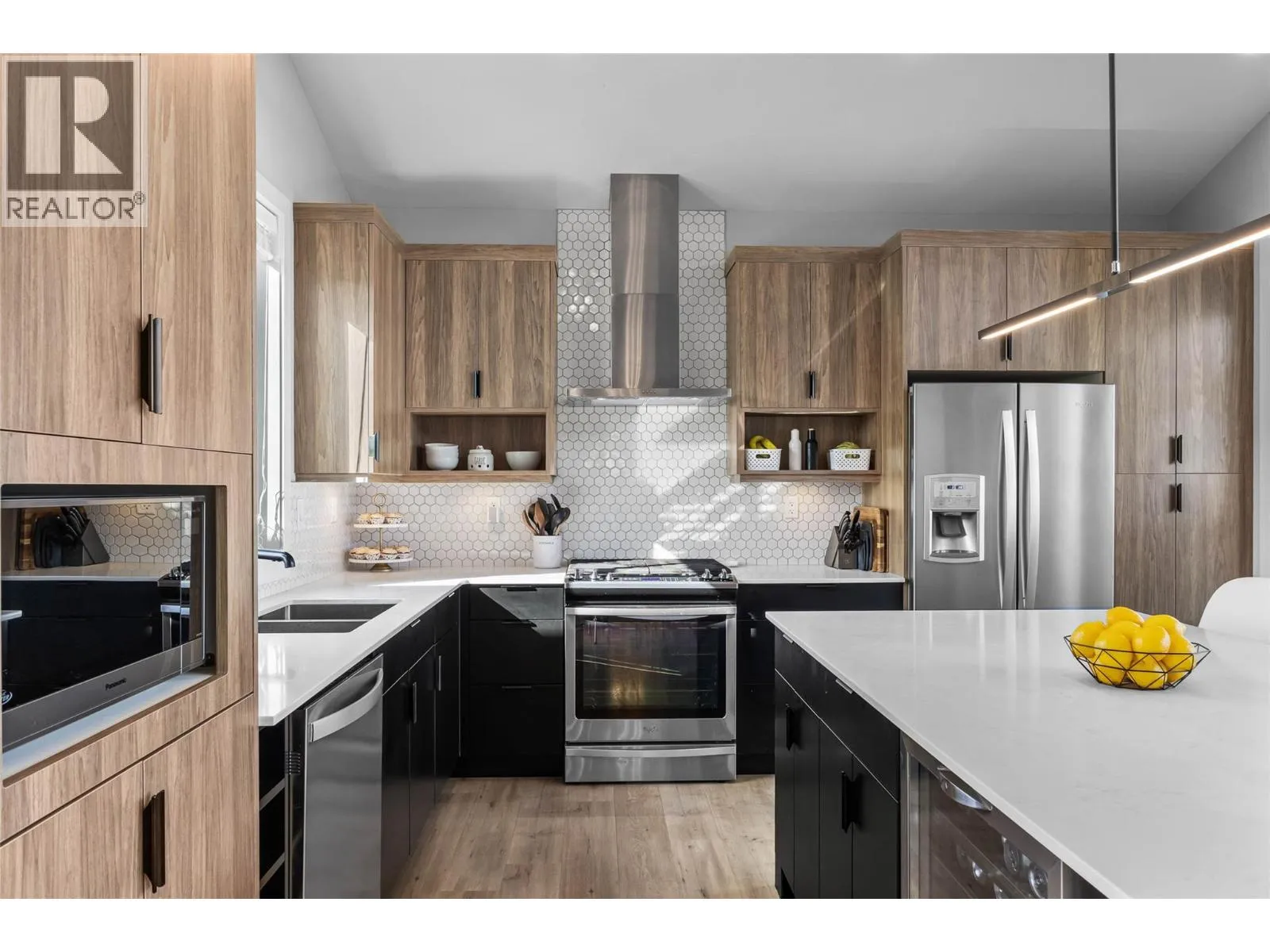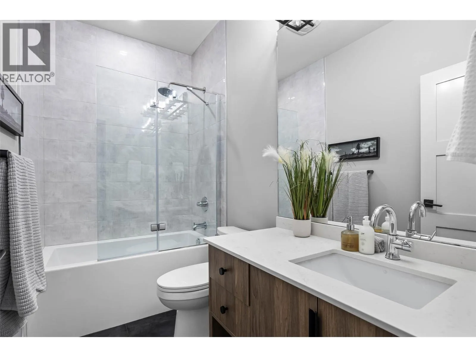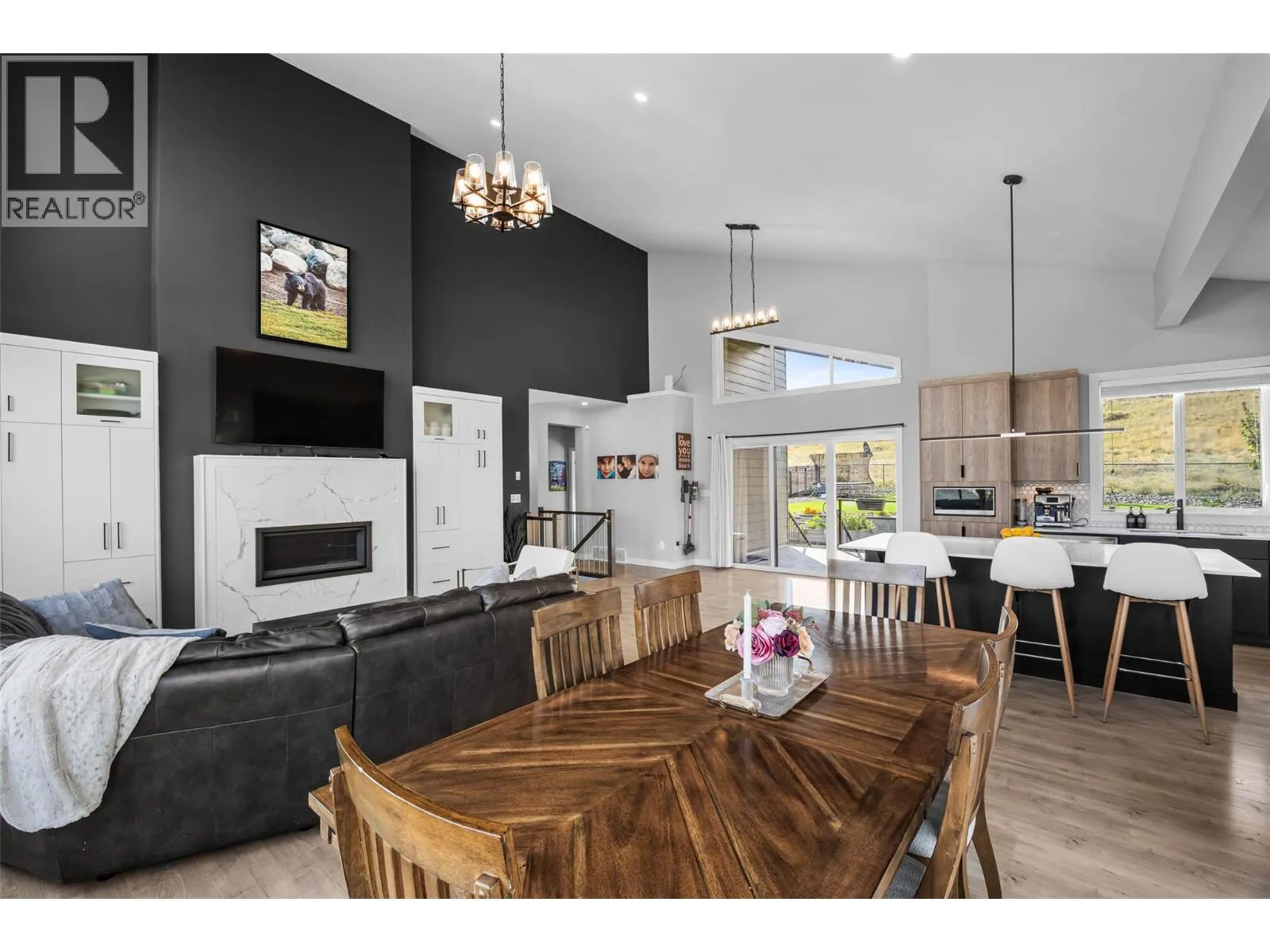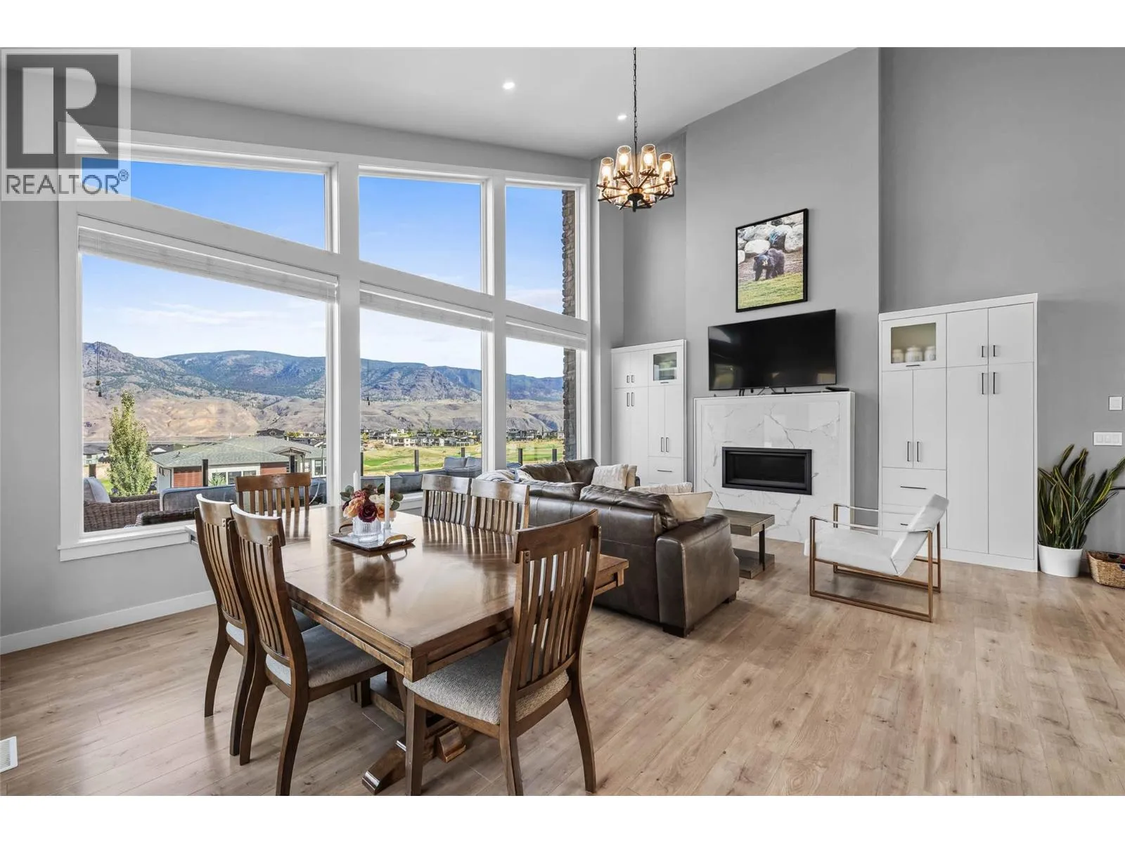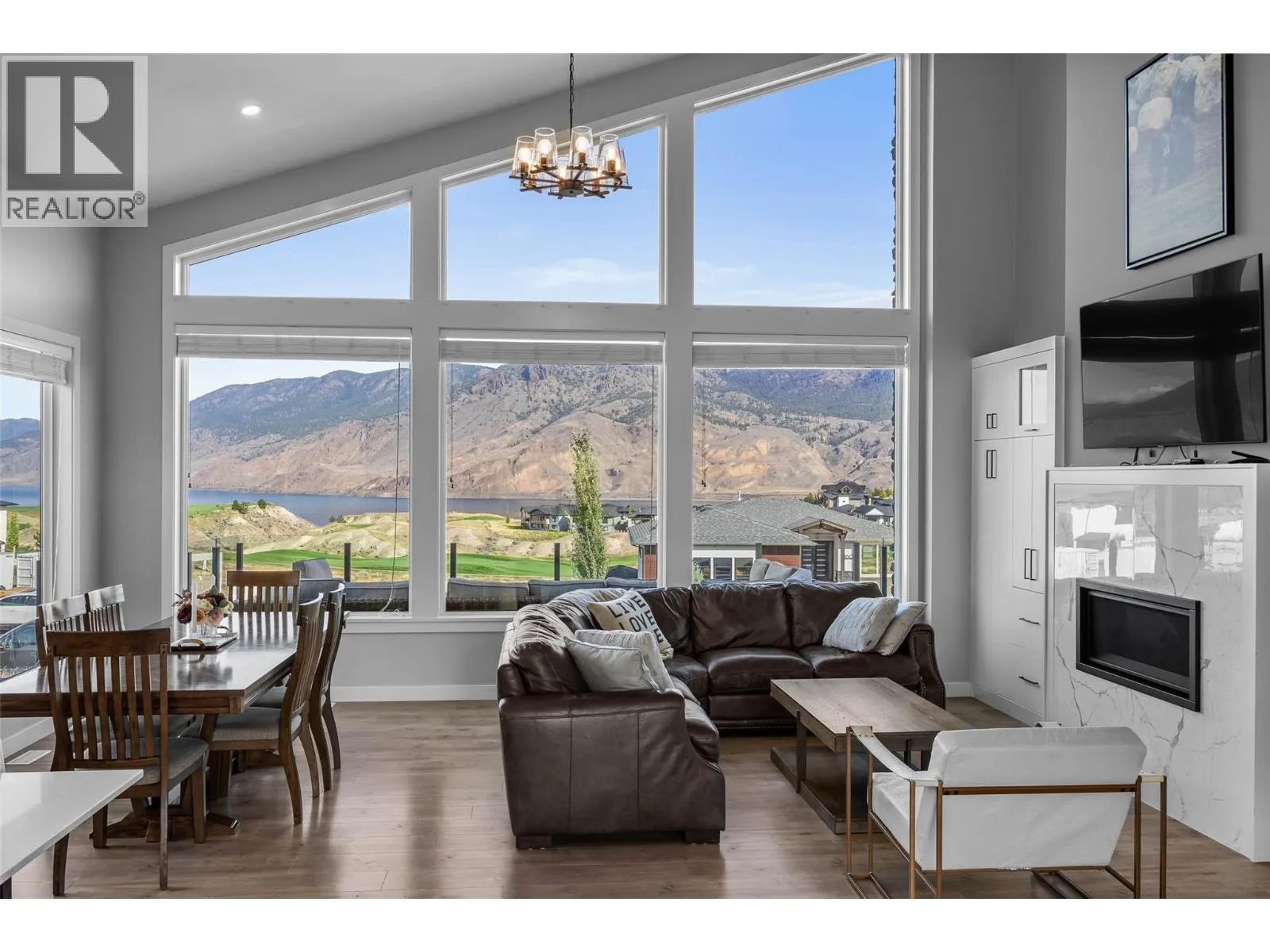 Stunning lake and mountain views from this beautiful executive home in Tobiano. The main floor features a vaulted ceiling that frames the incredible views and brings in tons of natural light. The living area includes custom built-ins, a cozy gas fireplace, and opens onto a large front deck with topless glass railingâideal for entertaining or relaxing. The chef's kitchen offers a large island, quartz counters, gas range, and plenty of cupboard space. Also on the main floor are three spacious bedrooms, including the vaulted-ceiling primary suite with a walk-in closet and luxurious 5pc ensuite featuring a freestanding soaker tub, separate tile shower, and double vanity. A stylish 4pc main bathroom completes the floor. The fully finished basement welcomes you with a large entryway and offers two additional bedrooms, a 4pc bathroom with tile surround, a bright laundry room with counters and cupboards, a home office, and a spacious rec room for movie nights, workouts, or games. The beautifully landscaped yard includes brickwork stairs leading to a flat grassy areaâideal for kids, pets, or a trampoline. Garden boxes with irrigation, gas BBQ hookup, and a gorgeous hot tub make outdoor living exceptional. Extras include a new heat pump (2023), underground power for future shop, gemstone lights, and a 12-zone irrigation system. Only 15 mins to Kamloops. Golf, marina, trails, and dining nearby. Donât miss outâbook your showing today! (id:27476)