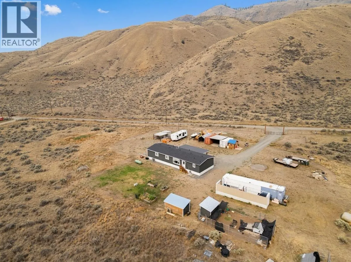 This 4.87-acre property offers the ideal blend of comfort, privacy, and functionality. The 2021 double wide is set on a cement slab and features 3 bedrooms and 2 full bathrooms plus a den/office or 4th bedroom with no closet, great nursery or kids room, making it an excellent choice for a growing family. Built with Hardi board siding for long-lasting durability in our hot summers, the home also includes a reverse osmosis system for clean drinking water and a 200-amp electrical service to power all your needs. Inside, youâll appreciate the bright, open floor plan and plenty of room to spread out. Step outside to the 30â x 13â covered deck and take in the surrounding mountain views. The property is flat, fully usable, and fully fenced with three gated access points, giving you versatility for animals, equipment, or future projects. A chicken house with a large chain link run is already in place, along with two seacans, a garden shed, and a negotiable 30â x 60â double truss coverall. Additional items such as the backhoe and post pounder may also be available. The property is well supplied with an 8 GPM well for reliable water. Cedar shed was previously used as a Sauna, now being used for storage. All this is just a short drive to Tobiano Golf Resort and Kamloops Lake, offering the perfect balance of country living and convenience. Bring your horses, build your dream shop, or simply enjoy the space and freedom this property provides. (id:27476)