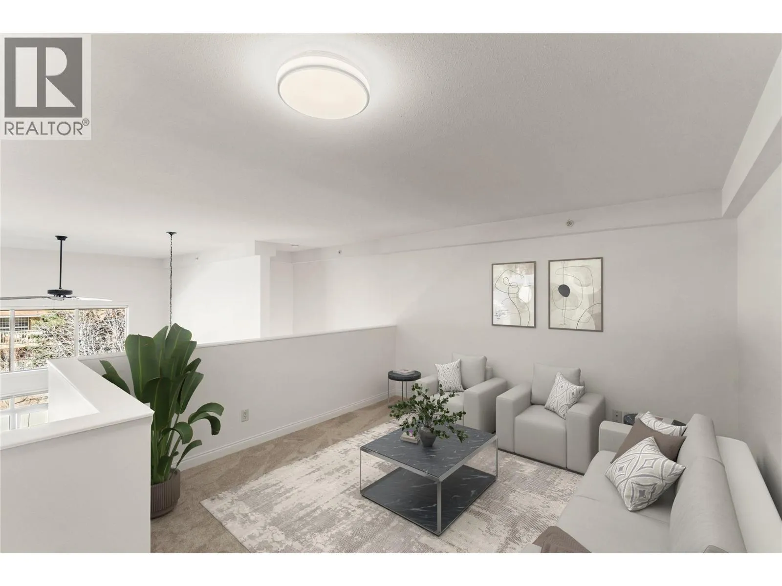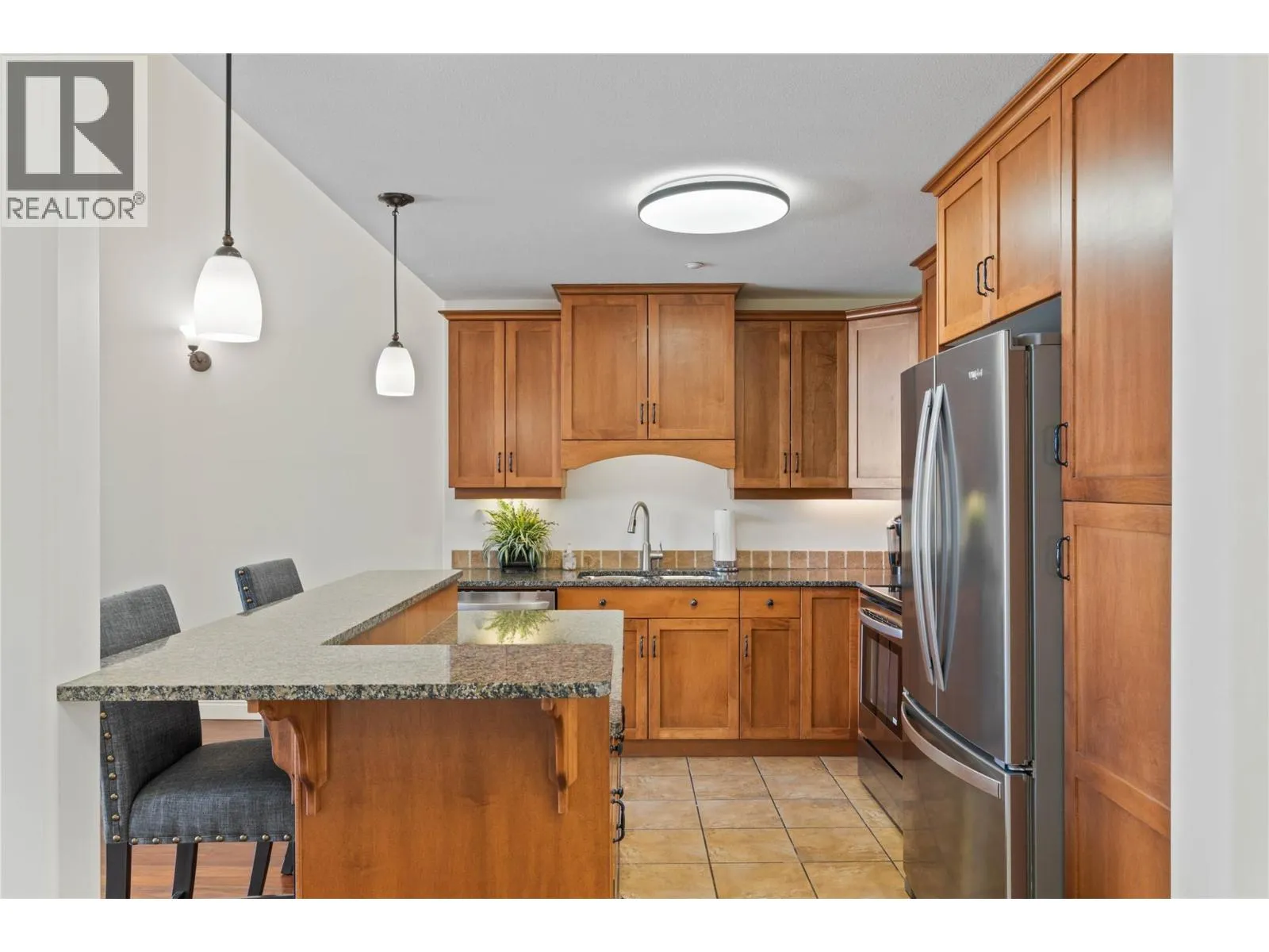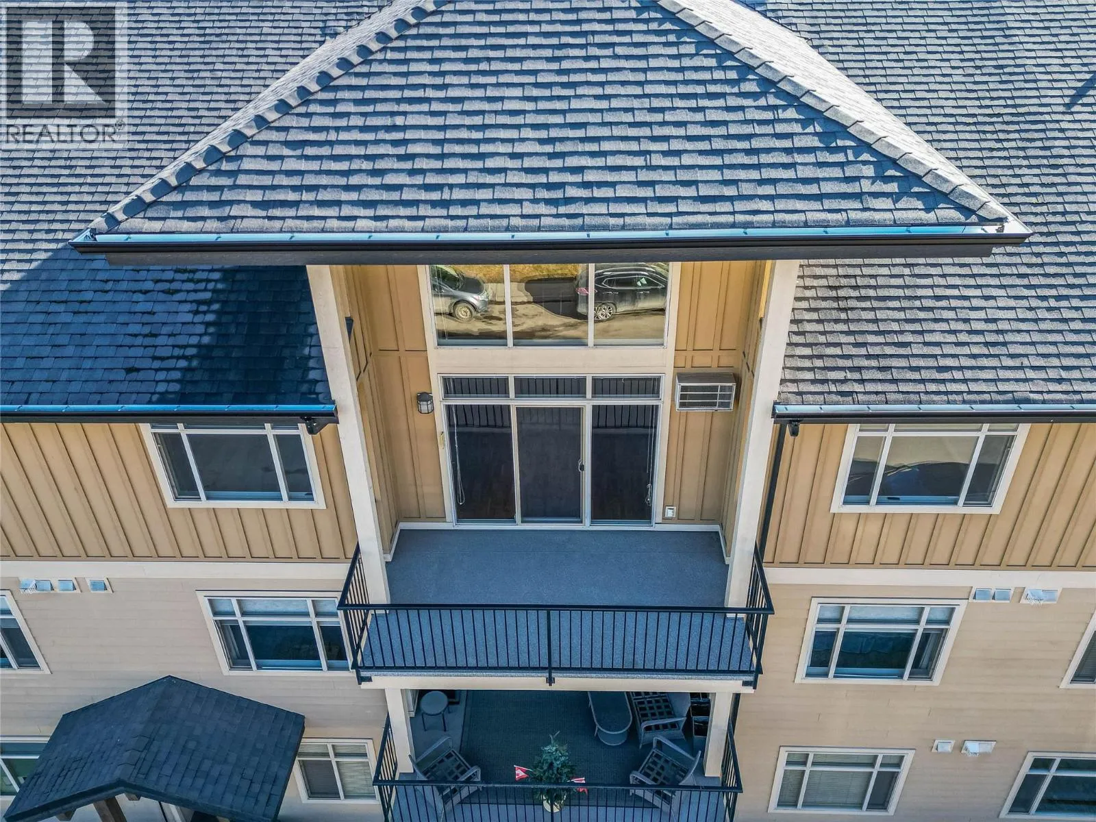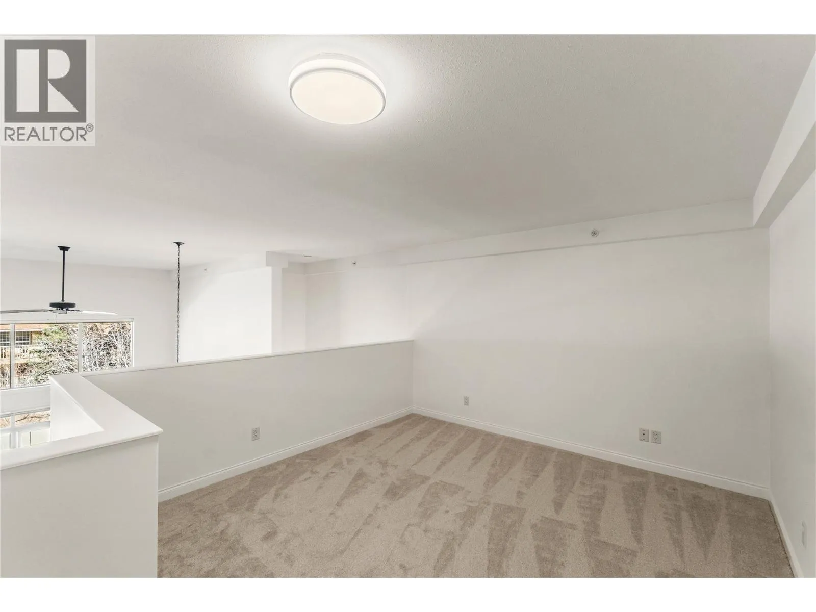 Rare opportunity to own one of the largest loft-style condos in Hillside Lofts, offering over 1,550 sq.ft., 3 bathrooms, soaring 16â ceilings, and a huge 4-piece ensuite in the heart of Dufferin! This unique 2 bedroom + loft home lives more like a townhouse than a traditional condo, featuring a bright open concept layout with large windows and an abundance of natural light. The kitchen is designed for both everyday living and entertaining with stainless steel appliances, granite countertops, a large island, and plenty of cabinetry. The spacious primary bedroom includes a huge 4-piece ensuite, creating a comfortable and private retreat rarely found in condo living. Recently freshly painted with new carpets and updated light fixtures, this home is completely turn-key and move-in ready. The versatile loft space includes its own 4-piece bathroom, making it perfect for a potential third bedroom, guest space, office, or media room. Additional features include engineered hardwood flooring, electric fireplace, in-suite laundry, covered deck, secure underground parking, storage locker, and elevator access. The $644.71 monthly strata fee includes management, hot water, water, sewer, garbage, gardening/landscaping, and common building expenses, helping simplify ownership and maintenance. Located just minutes from Costco, Aberdeen Mall, restaurants, and everyday amenities, and close to Kenna Cartwright Park for hiking and biking. Loft units of this size and layout rarely come available in this building. Contact the listing agent to book your private showing. (id:27476)