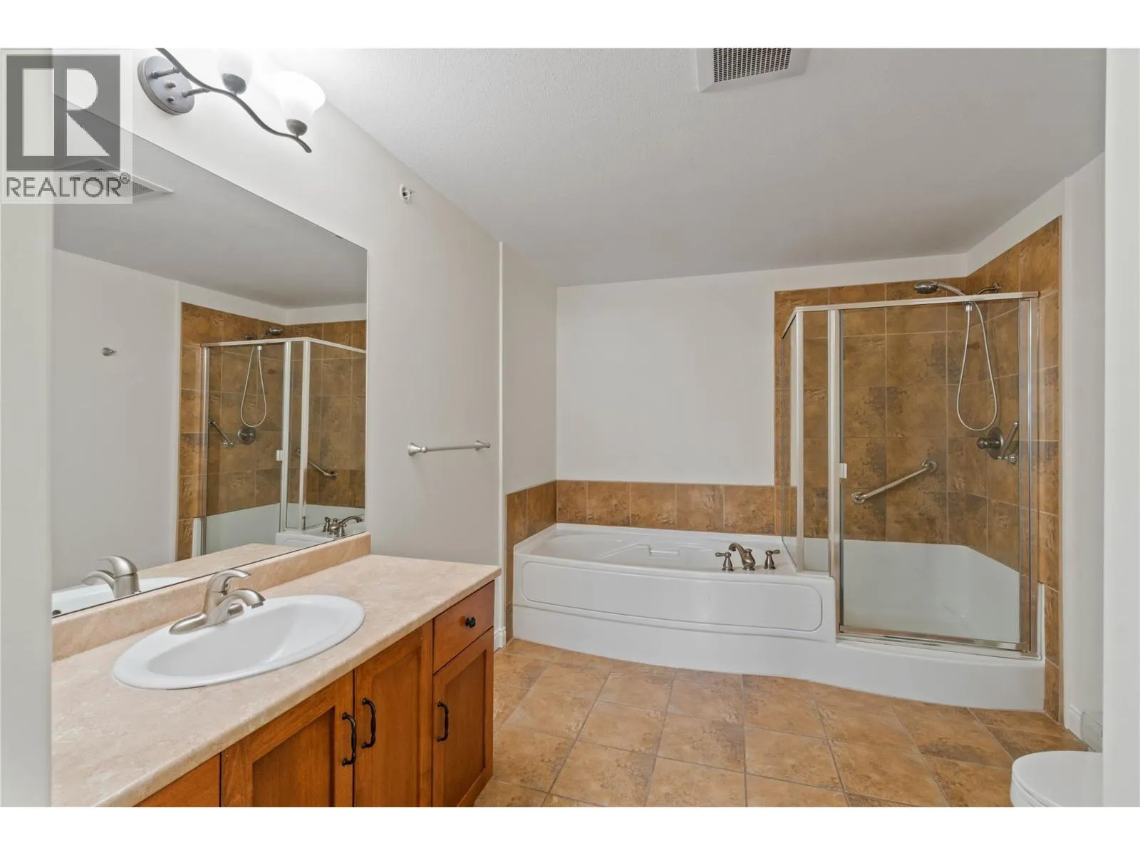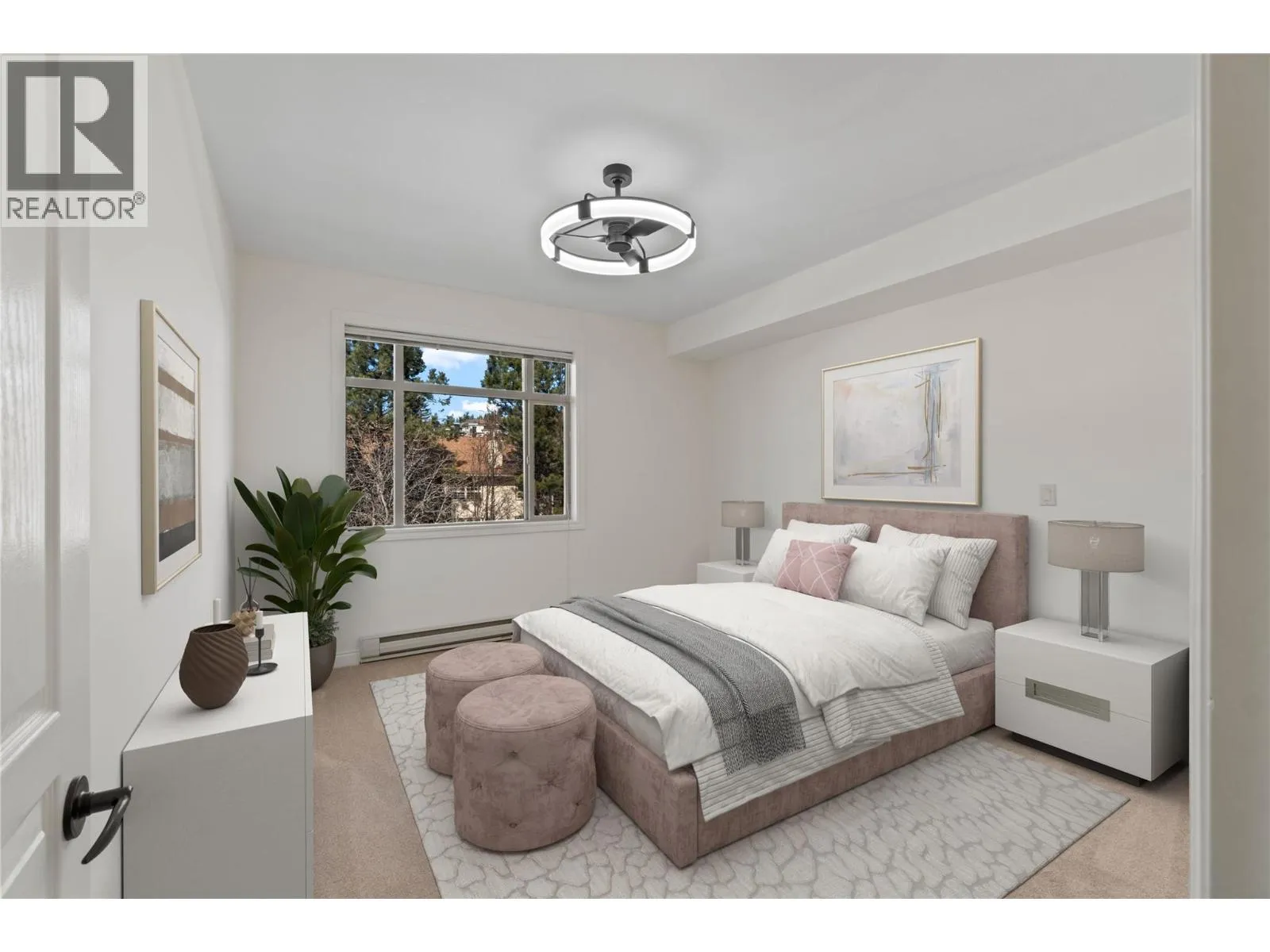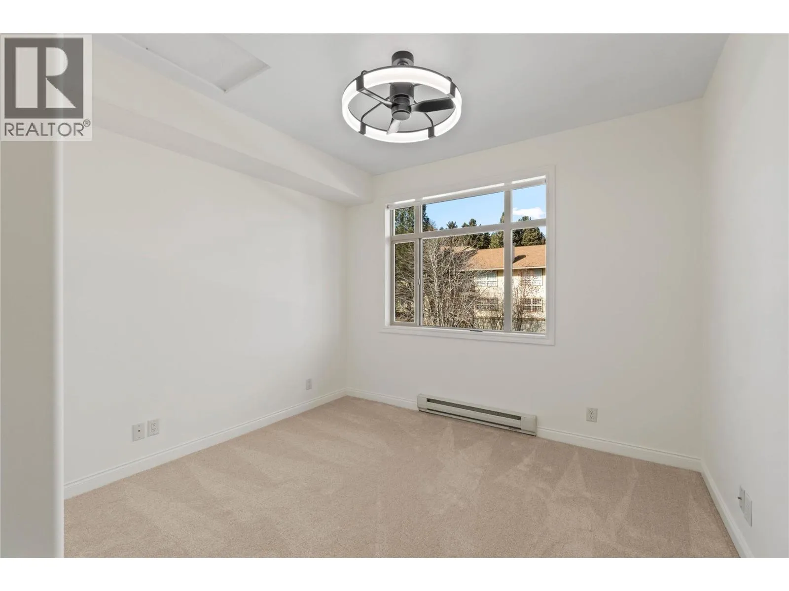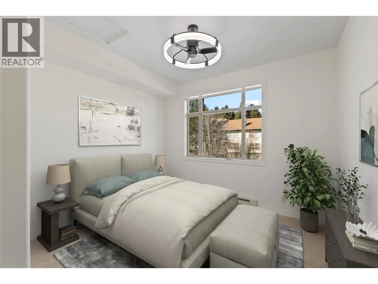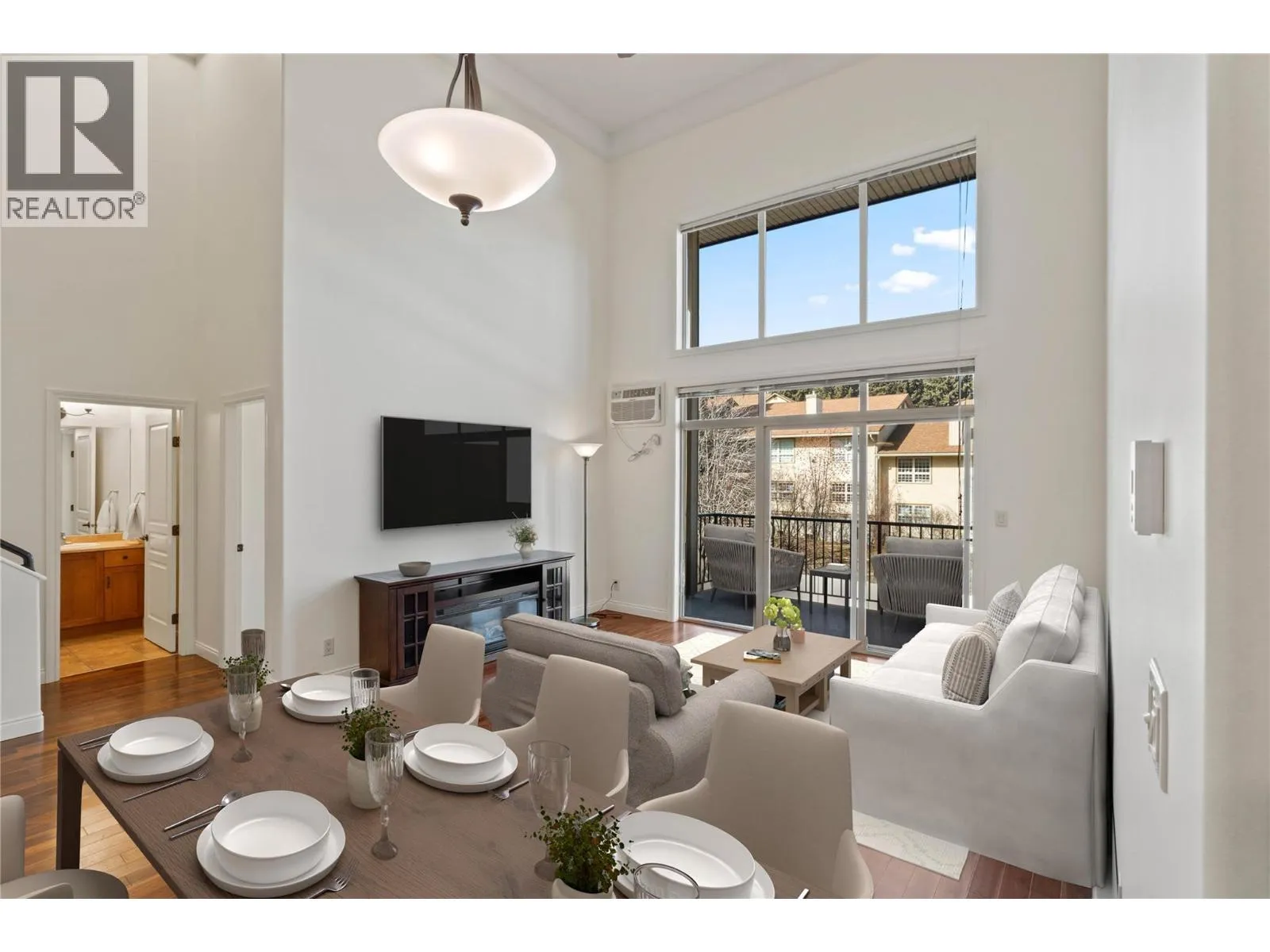 Rare opportunity to own one of the largest loft-style condos in Hillside Lofts, offering over 1,550 sq.ft., 3 bathrooms, soaring 16â ceilings, and a huge 4-piece ensuite in the heart of Dufferin! This unique 2 bedroom + loft home lives more like a townhouse than a traditional condo, featuring a bright open concept layout with large windows and an abundance of natural light. The kitchen is designed for both everyday living and entertaining with stainless steel appliances, granite countertops, a large island, and plenty of cabinetry. The spacious primary bedroom includes a huge 4-piece ensuite, creating a comfortable and private retreat rarely found in condo living. Recently freshly painted with new carpets and updated light fixtures, this home is completely turn-key and move-in ready. The versatile loft space includes its own 4-piece bathroom, making it perfect for a potential third bedroom, guest space, office, or media room. Additional features include engineered hardwood flooring, electric fireplace, in-suite laundry, covered deck, secure underground parking, storage locker, and elevator access. The $644.71 monthly strata fee includes management, hot water, water, sewer, garbage, gardening/landscaping, and common building expenses, helping simplify ownership and maintenance. Located just minutes from Costco, Aberdeen Mall, restaurants, and everyday amenities, and close to Kenna Cartwright Park for hiking and biking. Loft units of this size and layout rarely come available in this building. Contact the listing agent to book your private showing. (id:27476)
