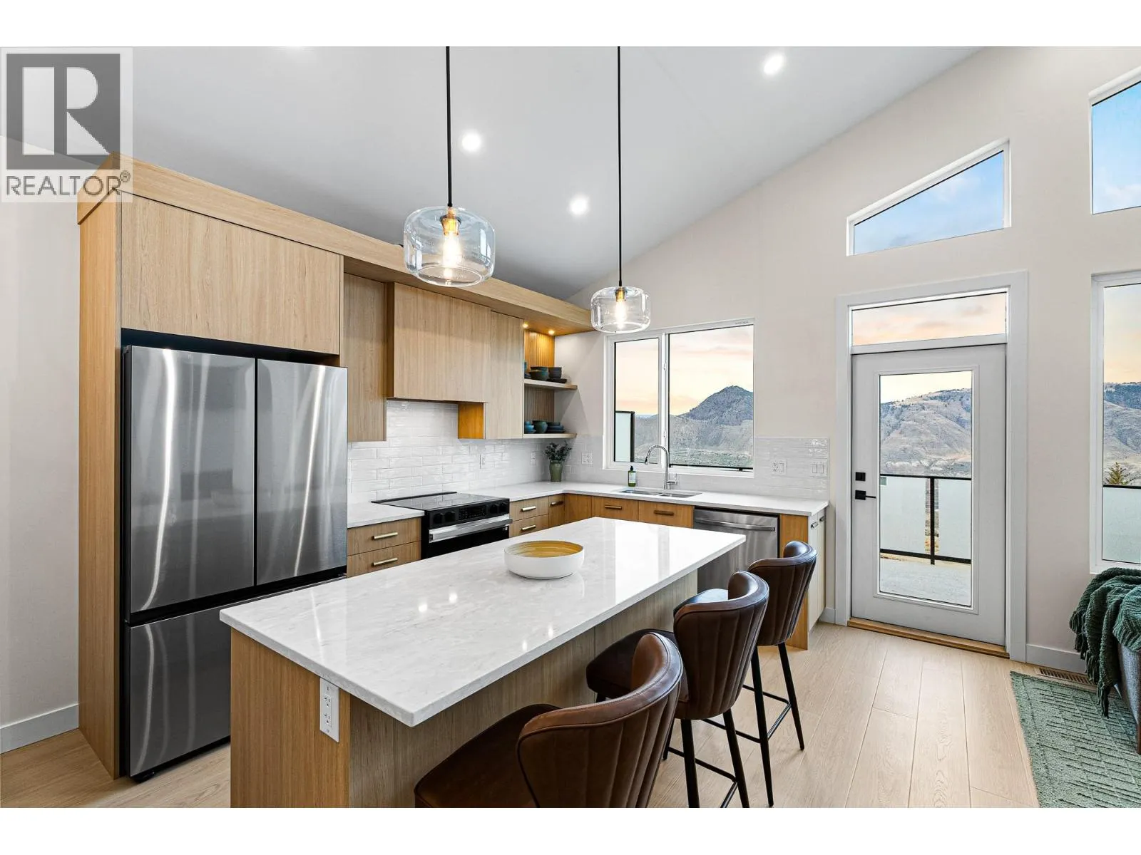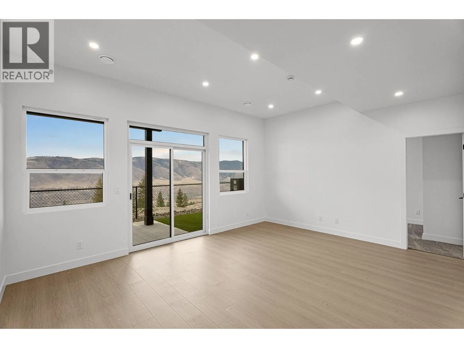 Welcome to The Landing at Juniper West â an exclusive collection of 3-bedroom duplex homes perched atop Juniper Ridge on scenic Coldwater Drive. Showcasing striking modern architecture, each home seamlessly blends style, functionality, and breathtaking natural surroundings into one perfect package. Thoughtfully crafted entry-level layouts feature a bright, open-concept floor plan that flows effortlessly between the living, kitchen, and dining spaces. Vaulted ceilings and expansive windows frame unobstructed river and city views, inviting the beauty of the outdoors into your everyday living. With the primary suite and laundry conveniently located on the main floor, you have everything you need within easy reach. The rancher-style design includes a walkout basement offering two additional bedrooms and a full bathroomâdelivering flexibility and comfort for every stage of life. This duplex also contains a Bonus space with the suspended slab under the basement, providing additional square footage to your home! Outside, enjoy professionally landscaped, low-maintenance yards and the added ease of a low Bareland Strata fee. Every home comes turn-key ready, complete with a full appliance package, stylish window coverings, and contemporary finishesâso you can settle in and start enjoying immediately. This is elevated living in one of Kamloopsâ most sought-after neighbourhoods. *Please note, listing photos are of previously staged Unit 139 (id:27476)