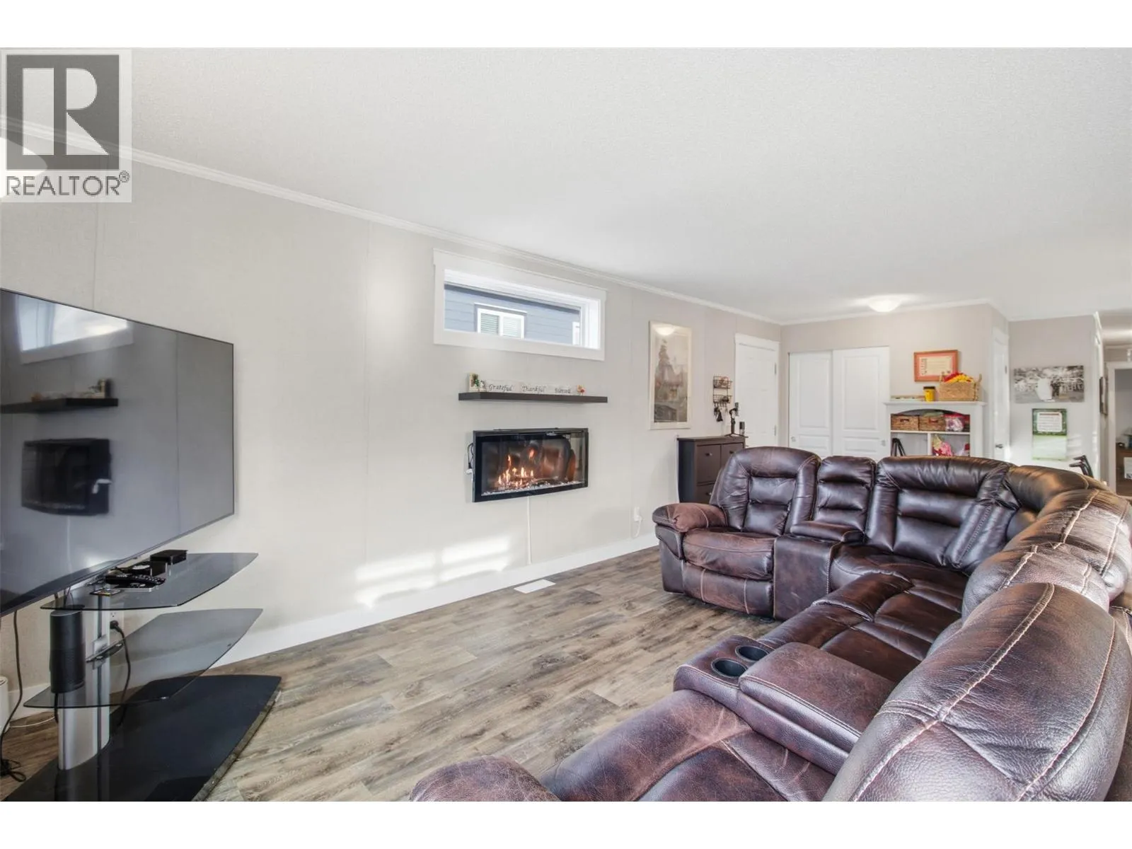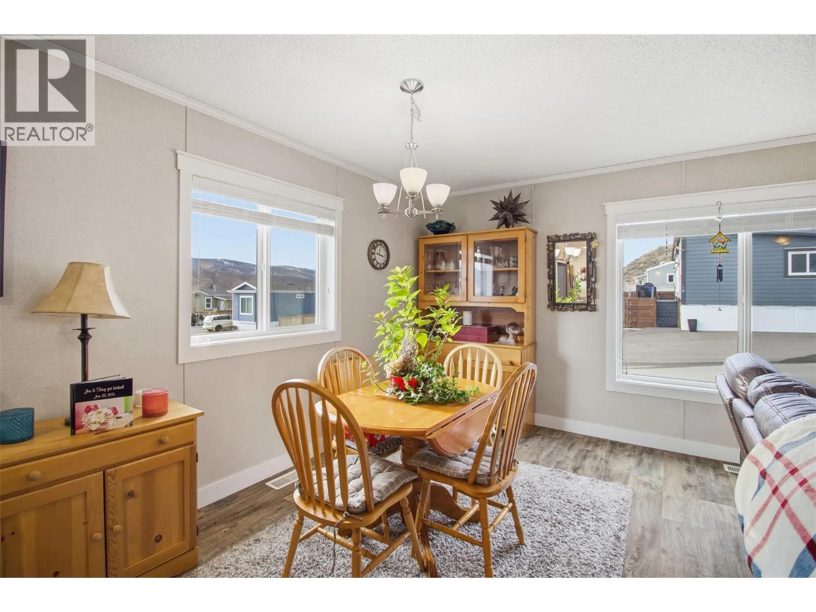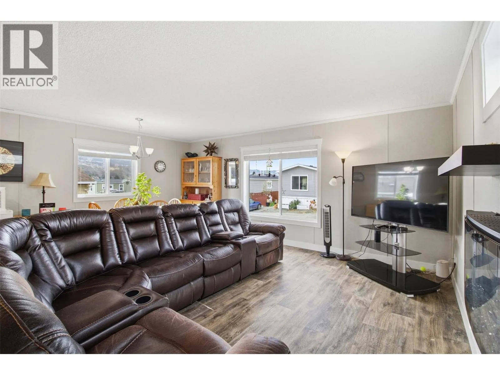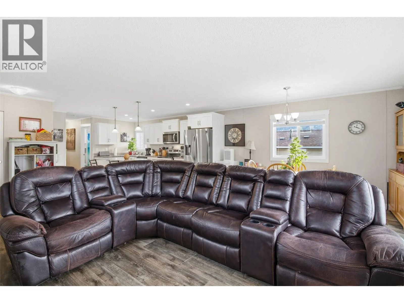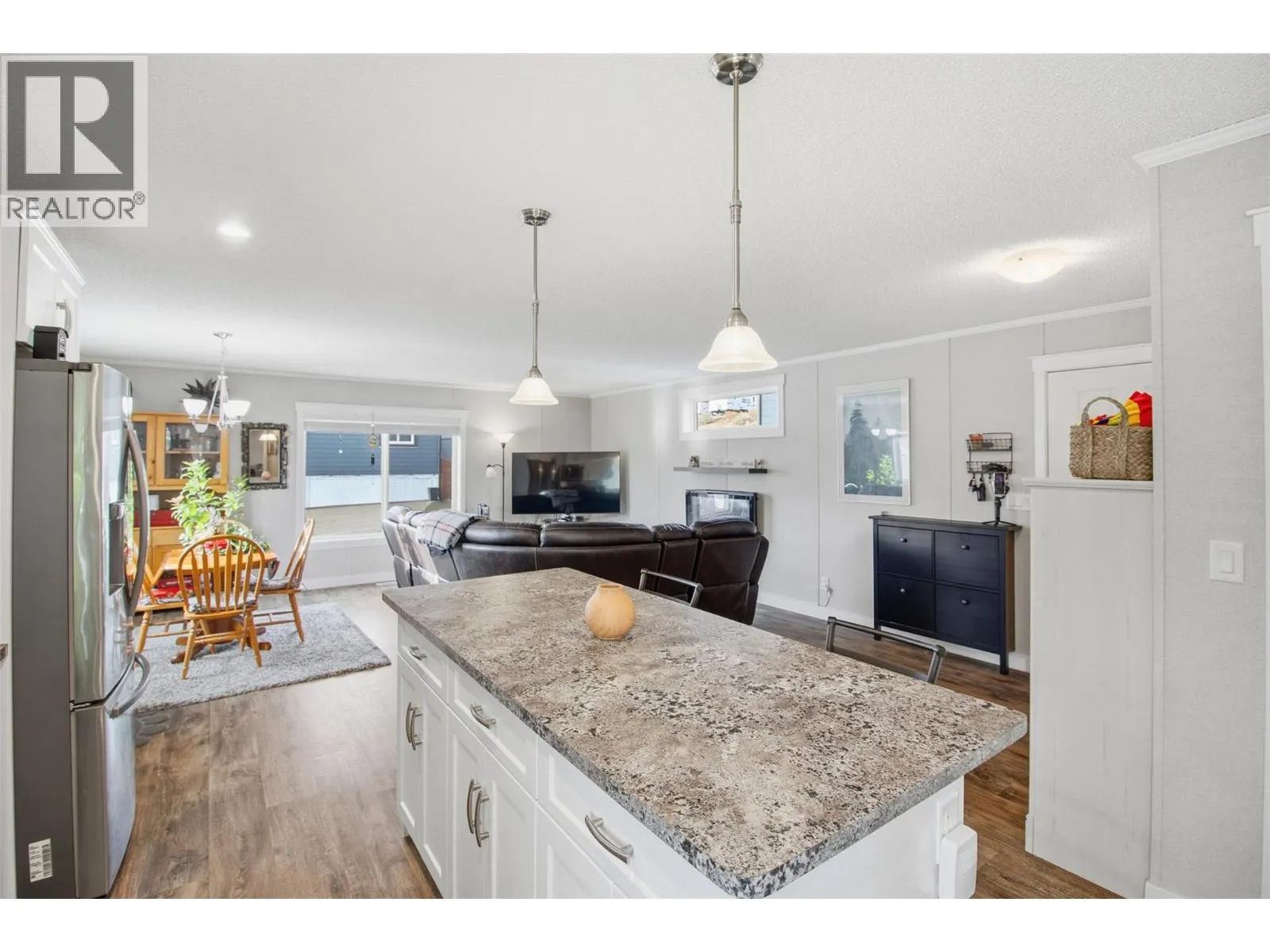 Located in South Bend Estates, just 8 minutes from Downtown Kamloops, this beautifully designed and modern home boasts 1,160 sq ft of living space, 2 bedrooms & 2 full bathrooms, and is completely move-in-ready! Practically brand new - manufactured in 2021, the home was designed with low maintenance in mind. The exterior is xeriscape landscaped and offers a large sundeck overlooking the green space and valley. As you step into the entry of this bright & spacious floorplan you'll feel at home in this open concept living/kitchen/dining space with large windows! The kitchen is perfect for entertaining and features an island as well as a pantry and stainless steel appliances. The large primary bedroom has a two closets and 4 pc ensuite. Lots of parking including RV parking available in the complex. Low pad rent $450 per month, includes water, septic and garbage. Dogs and cats are allowed - see bylaws! (id:27476)