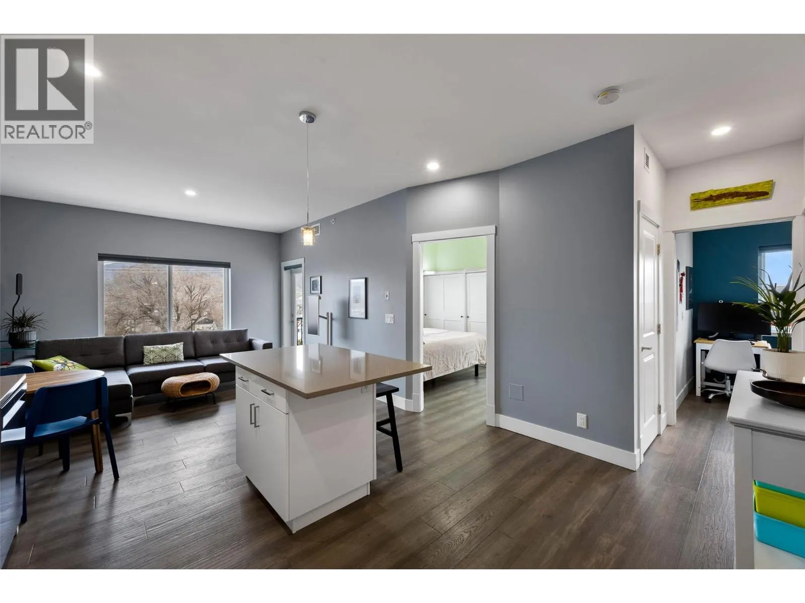 Stunning top floor corner unit in amazing walkable downtown location - opportunities like this donât come up often!This immaculate 1 bedroom plus den condo in The Vistas (built in 2016) offers modern comfort and unbeatable walkability. The bright open layout showcases 9' ceilings, a spacious kitchen with oversized island, and large windows that fill the home with natural light. Enjoy central heating and air conditioning, plus a generous semi wrap-around deck with North and East facing views across downtown Kamloops. Residents also have access to two rooftop patios and a large common area designed for entertaining. Located in a quiet, fully developed downtown neighbourhood surrounded by mature trees, yet only minutes to the Riverâs Trail, farmers market and the vibrant downtown core. (id:27476)