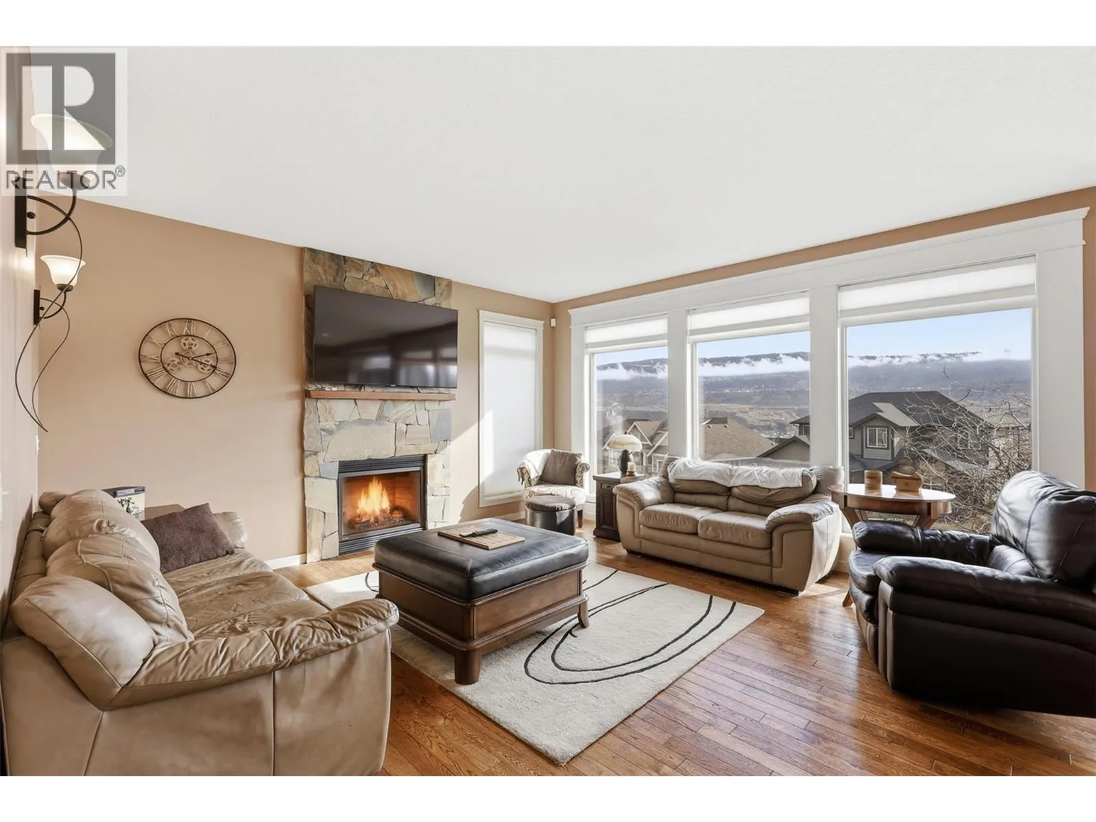 Gorgeous 2-storey home with views in the sought-after Sun Rivers Golf Resort Community! This beautifully designed home features a kitchen you'll want to entertain in with travertine backsplash, quartz countertops, large walk-in pantry, gas stove and spacious island. The open kitchen and living area includes a natural slate gas fireplace and double doors leading to a 25x14 partially covered deck with hot tub hookup, natural gas BBQ and incredible views. Main floor offers a formal dining room and versatile den or office. Upstairs features a spacious primary bedroom with walk-in closet and luxurious 5-piece ensuite with soaker tub and separate shower, plus two additional bedrooms and a large den/media room. Oversized double garage and an upscale 2-bedroom legal suite provide excellent mortgage helper or room for extended family with its own parking area and patio space. Basement also has 3rd bdrm. Located in one of Kamloopsâ most desirable communities just minutes from downtown, golf and trails. Check out floor plan attached! (id:27476)