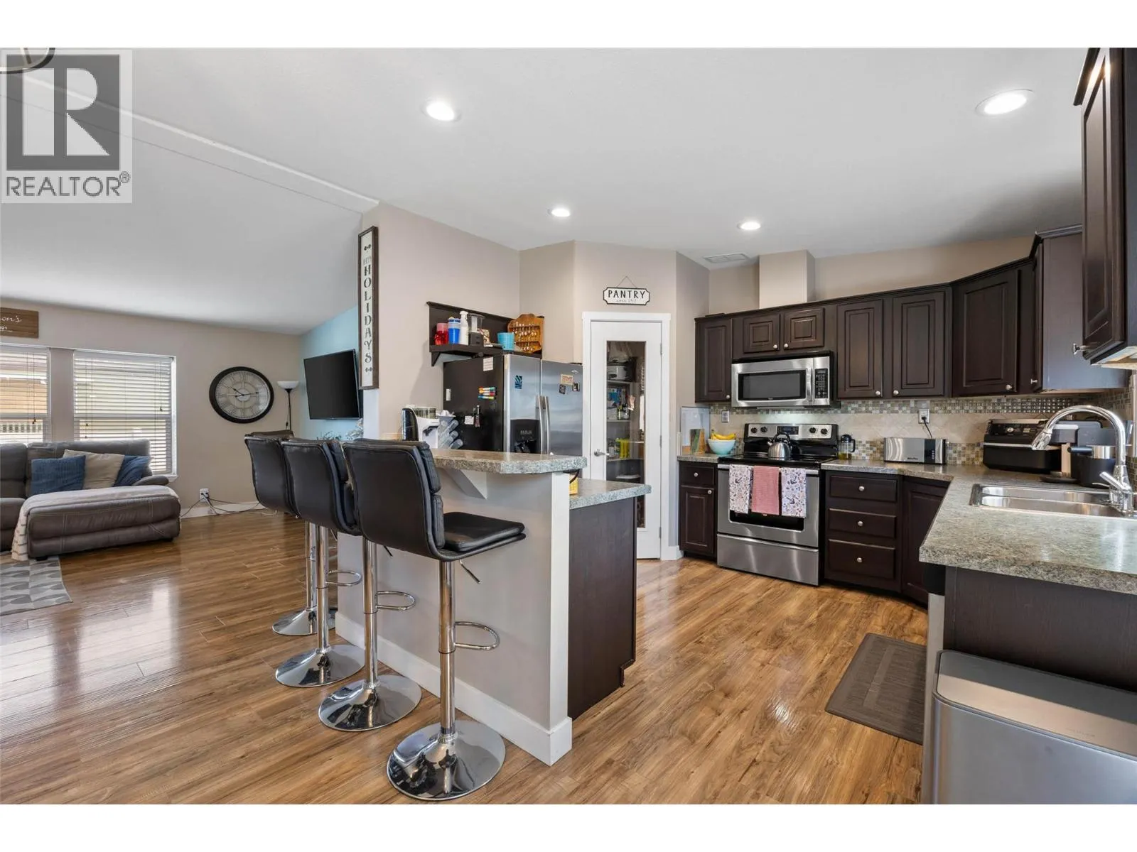 Welcome to Mountain View Estates- a well kept community offering easy, single level living just minutes away to everyday amenities. This bright and comfortable three bedroom, two bedroom double wide manufactured home has vaulted ceiling features, an open concept main living area with spacious living room, dining room and a beautiful functional kitchen with a huge island and walk in panty. The king sized primary bedroom includes a huge closet and four piece ensuite. The two other bedrooms arae perfect for kids, an office or guests. Step outside and enjoy the large private, fully fenced backyard. Perfect for entertaining or just sit and relax. Lots of parking in the front of the home. Pets allowed with restrictions. Give me a call to view (id:27476)