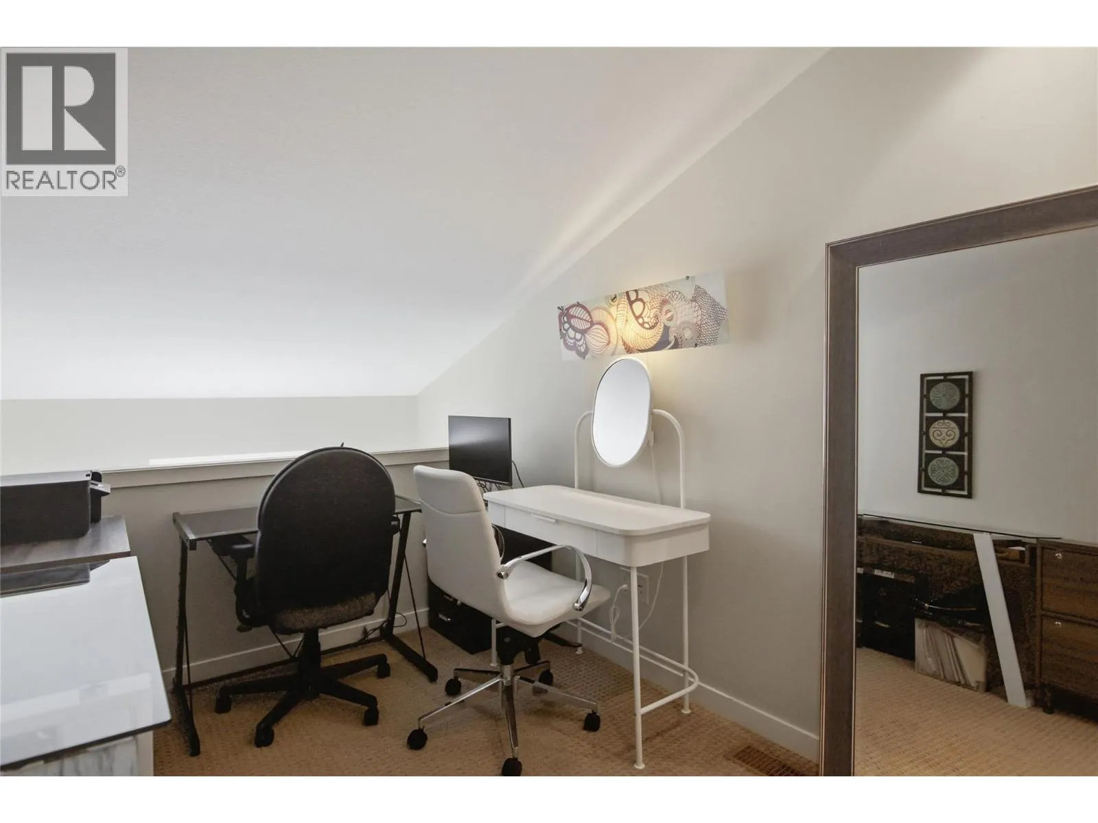 Sophisticated Tuscan inspired townhome living awaits at 504 Belmonte in desirable Belmonte Gardens at Sun Rivers. Ideal for young professionals and downsizers, this three level home combines stylish design with low maintenance comfort. The main level offers a bright open concept layout with high ceilings, large windows, and a generous island kitchen with stainless appliances, flowing into the living area and a sunny south facing balcony for relaxing or entertaining. Upstairs are two bedrooms, two full baths, a flexible den or office, and convenient laundry, creating a private retreat from the main living space. The lower level provides a versatile rec or family room for media, guests, or fitness, plus excellent storage. Additional highlights include two separate garages with space for hobbies or a workshop, efficient geothermal heating and cooling, and use of a charming community garden within this resort style Sun Rivers golf community. (id:27476)